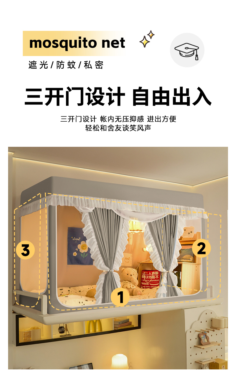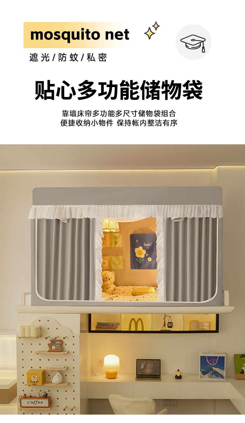 当前位置: 91家纺网 > 商品网购 > 床上用品 > 蚊帐 > 学生蚊帐 > 飞轮海蚊帐 2025新款学生宿舍上下铺加厚遮光蚊帐XZ-93 银灰