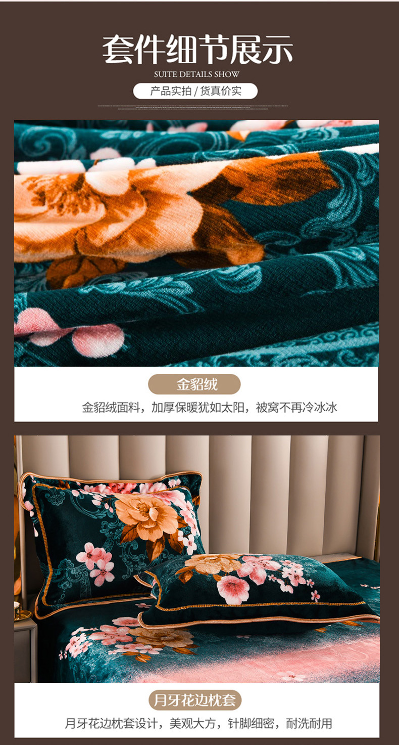 商品名称:首选家纺 2025新款加厚保暖牛奶绒金貂绒法莱绒床裙款四件套 麦穗
