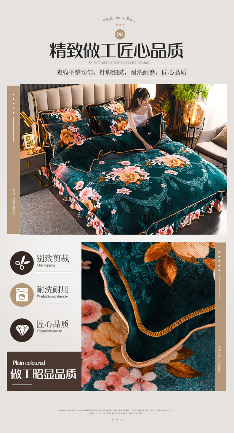(总)首选家纺 2024新款A类立体雕花绒牛奶绒婴儿绒四件套,蝶影,花语悠然,玫瑰粉,玫瑰桔,玫瑰绿,千叶-粉,千叶-咖,水墨花-绿,水墨画-粉,水墨江南,素色主义,繁花似锦,花间风铃,欧式情怀,纤羽