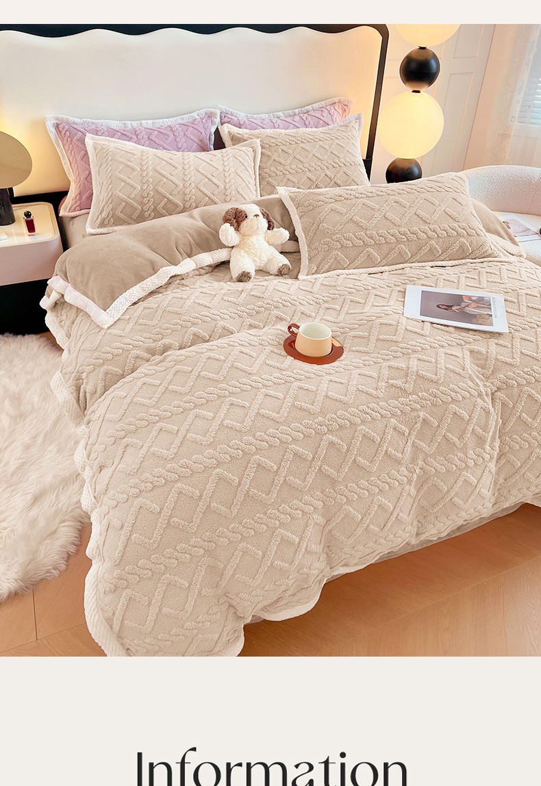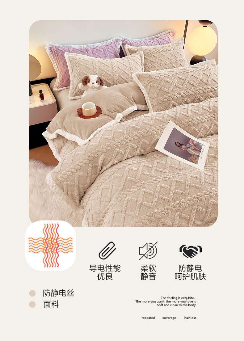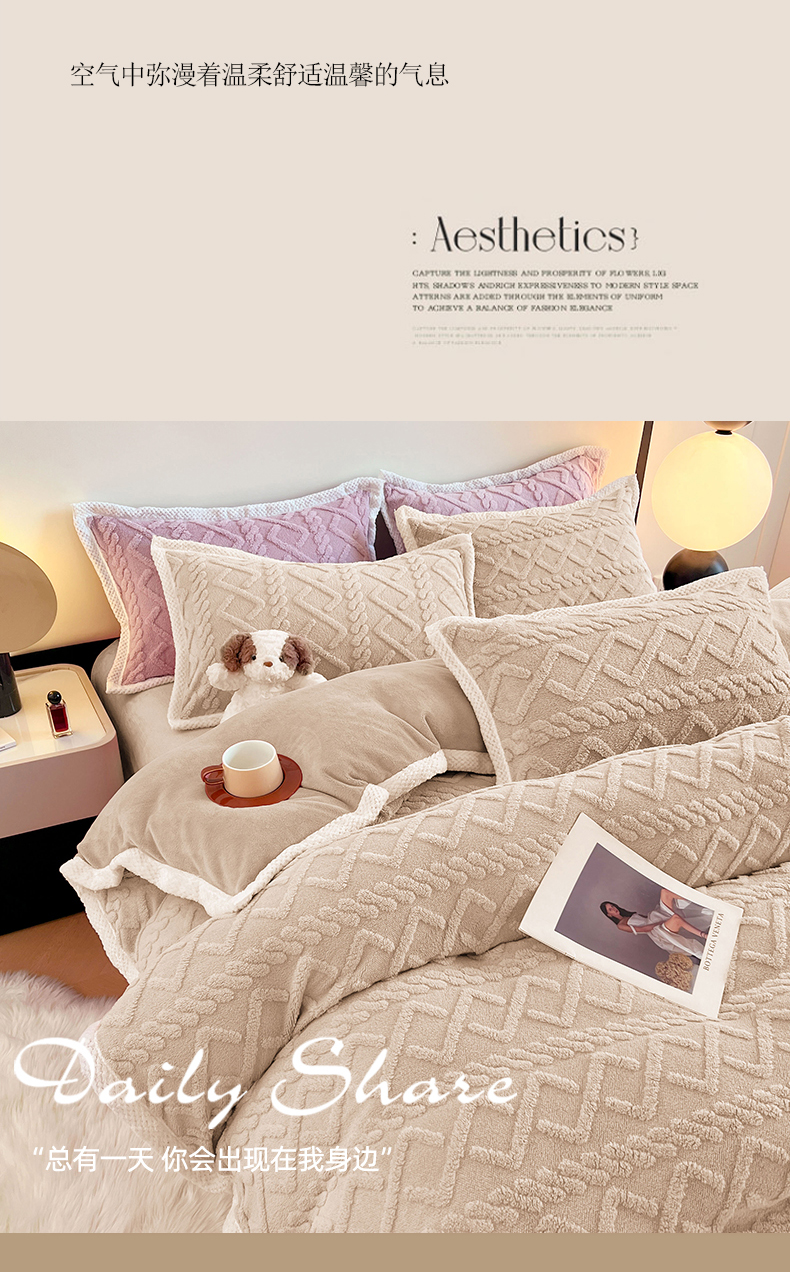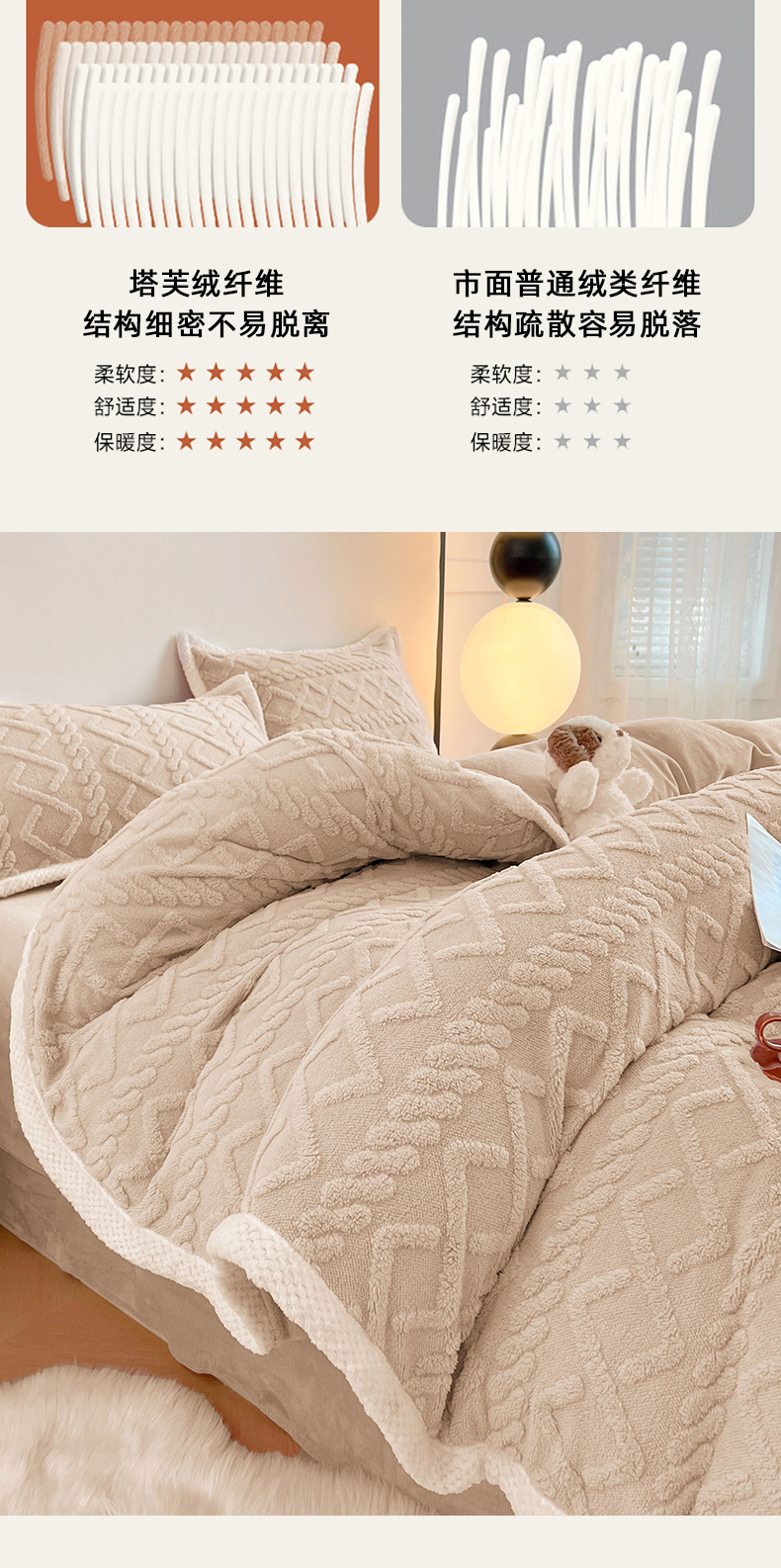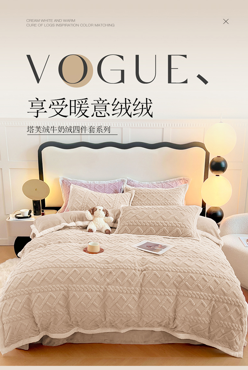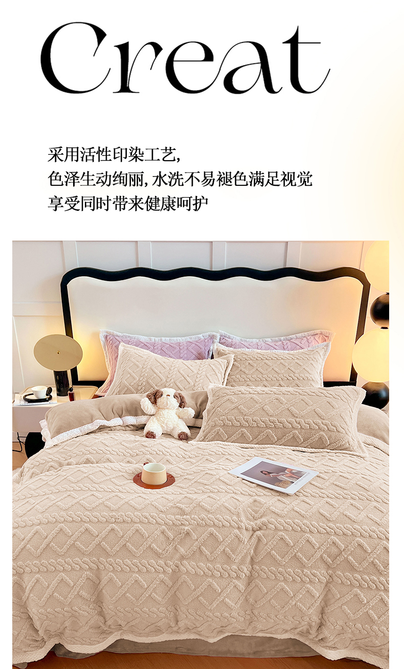 商品名称:悦织湾家纺 轻奢塔芙绒菱形格纯色牛奶绒四件套2025新款床上用品加厚保暖4件套 奶丝米