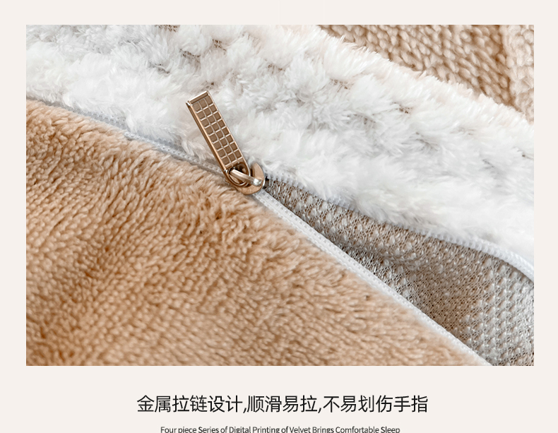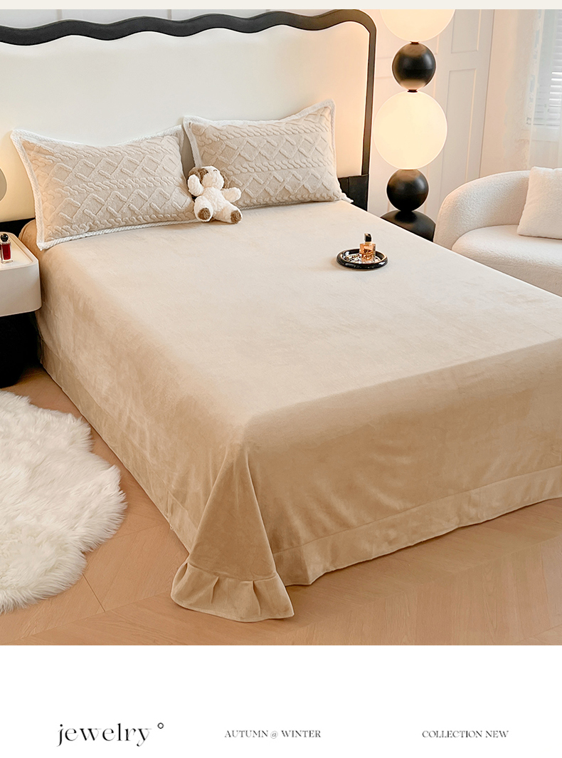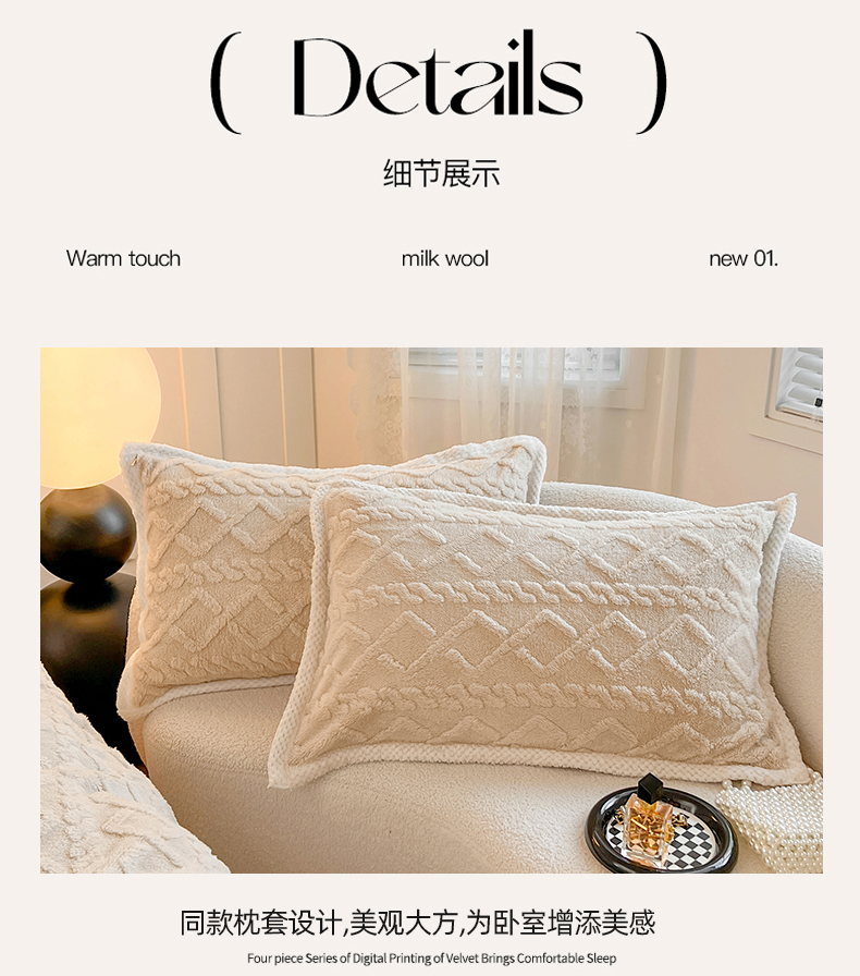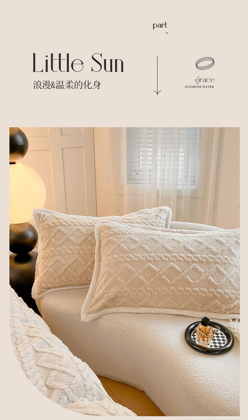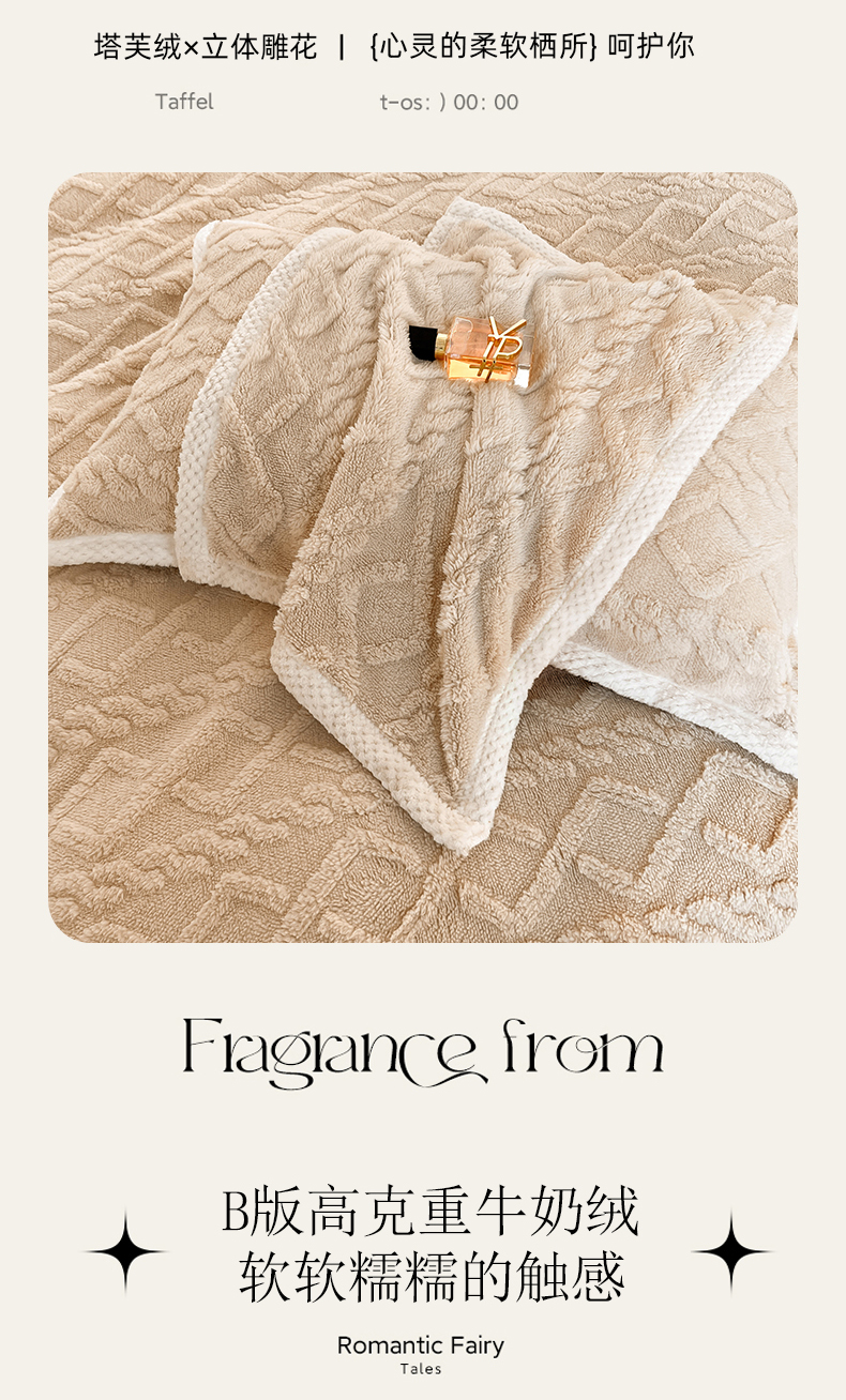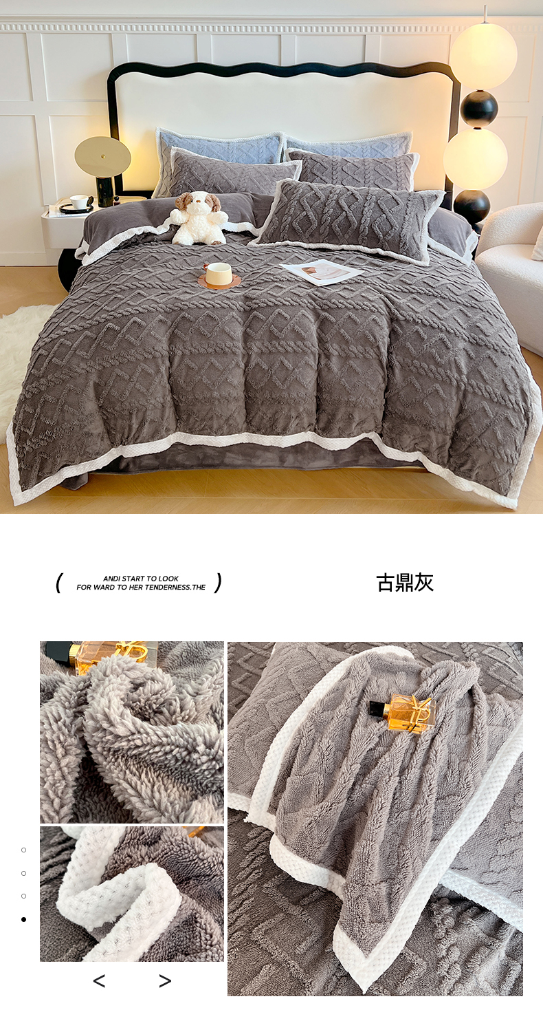 商品名称:悦织湾家纺 轻奢塔芙绒菱形格纯色牛奶绒四件套2025新款床上用品加厚保暖4件套 奶丝米