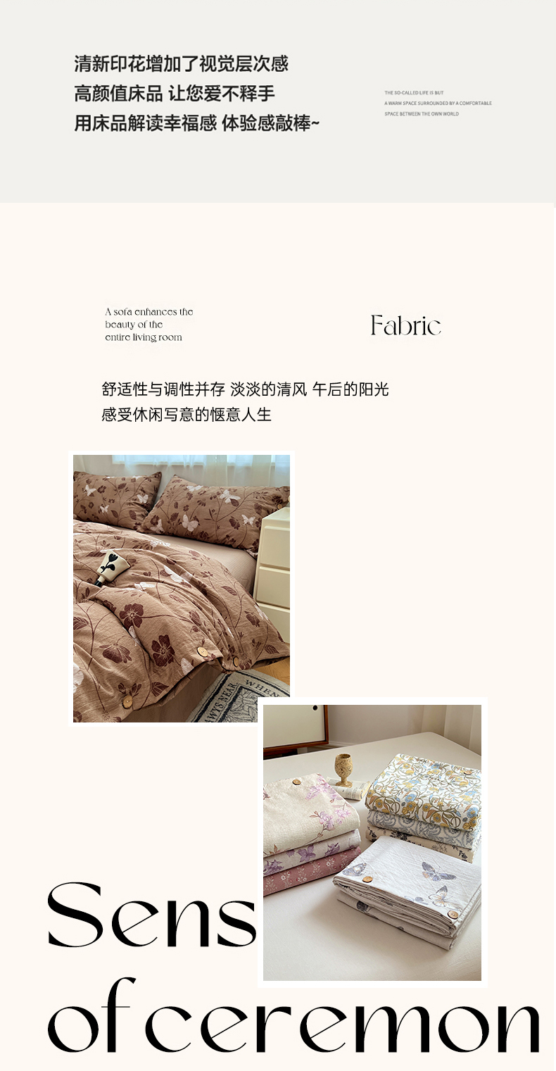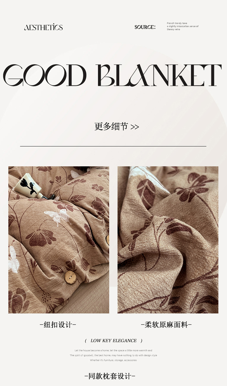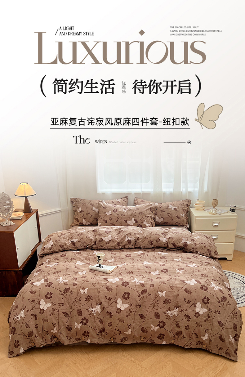 当前位置: 91家纺网 > 商品网购 > 床品套件 > 四件套 > 其它四件套 > 优尚佳生活馆 2025秋冬新款高克重亚麻复古侘季风复麻系列四件套 蝶影繁华