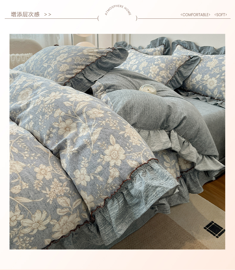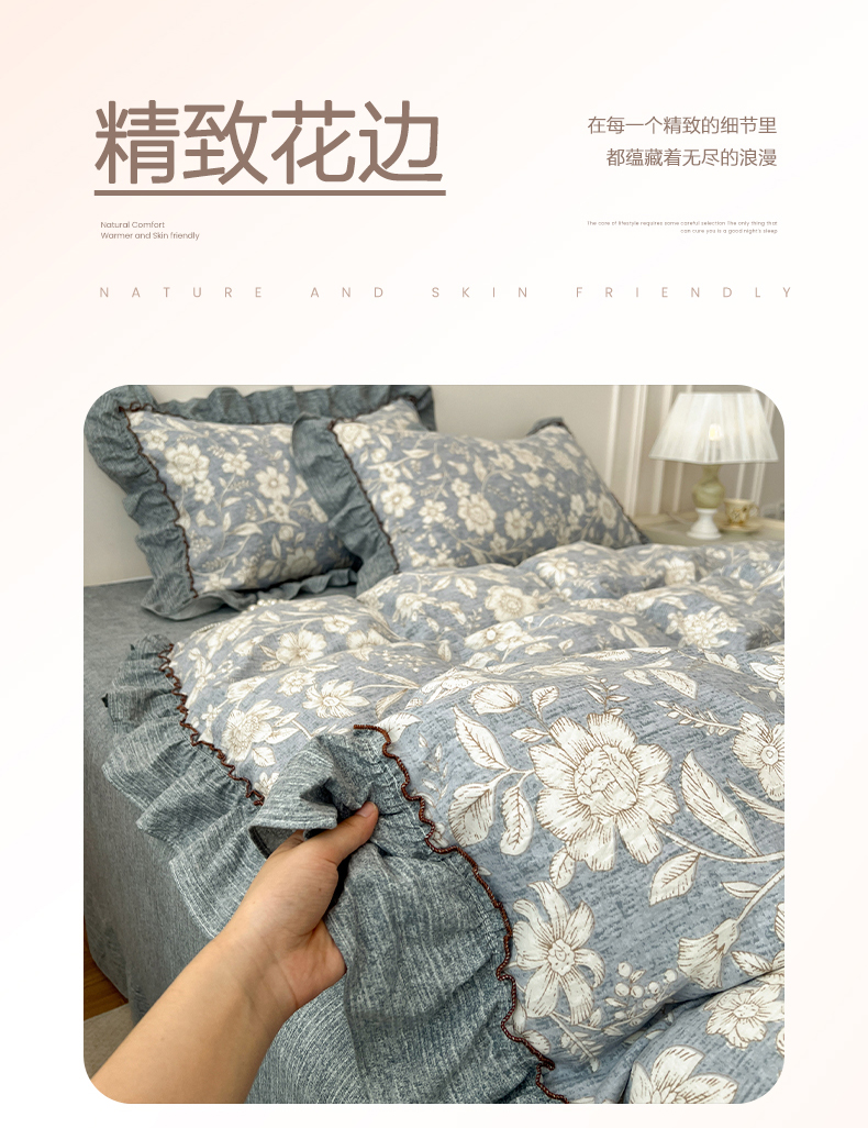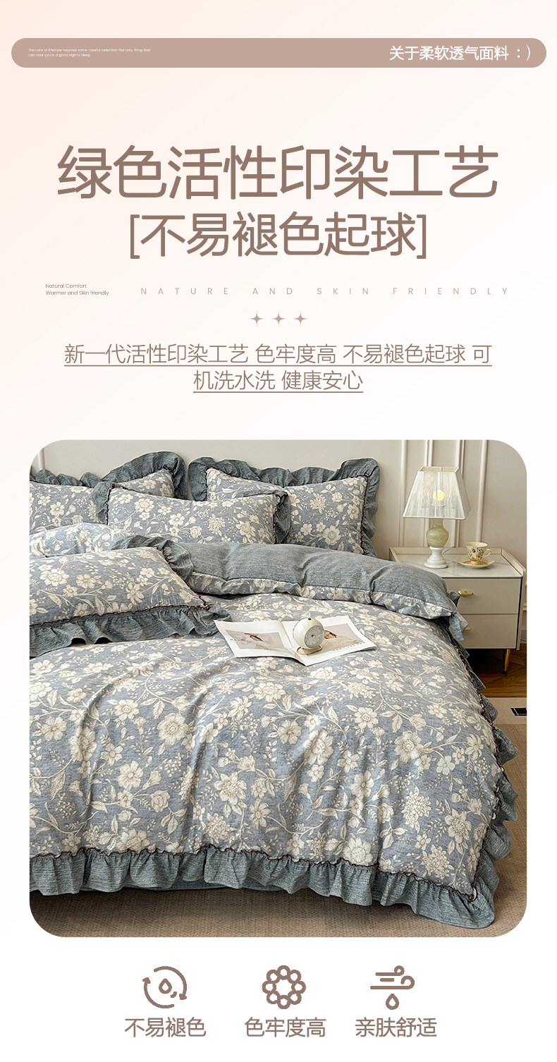 (总)鑫利来家纺 2026古法水洗棉法式花边四件套甄选纯棉花边拼接款四件套印花被套床单单品四件套,花间谍,花千朵,兰黛,兰溪,漫野,七分甜,兔子园,午后时光,小玫瑰,屿花,雨沫