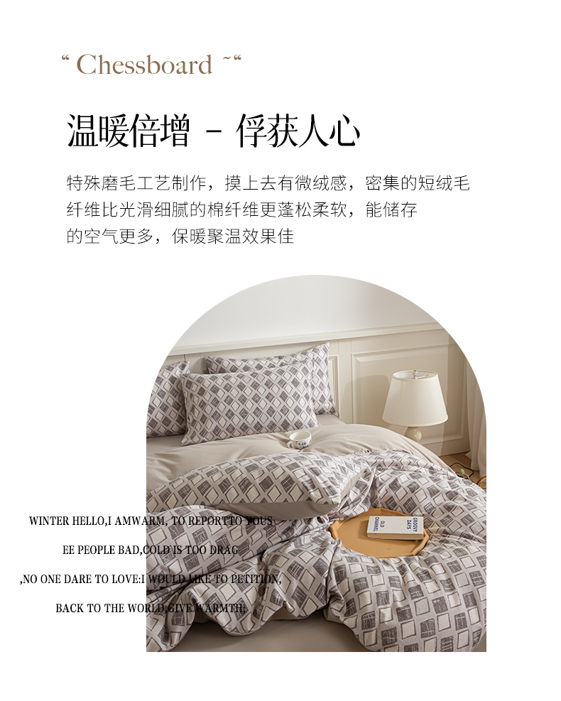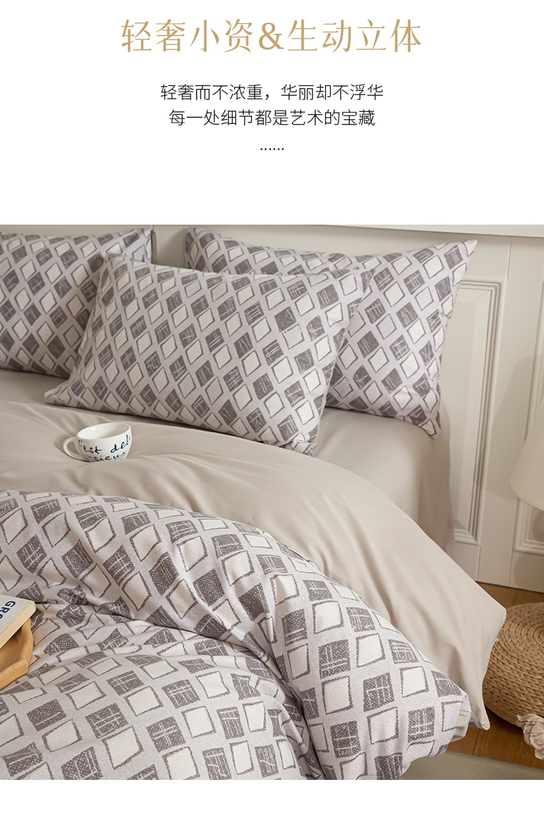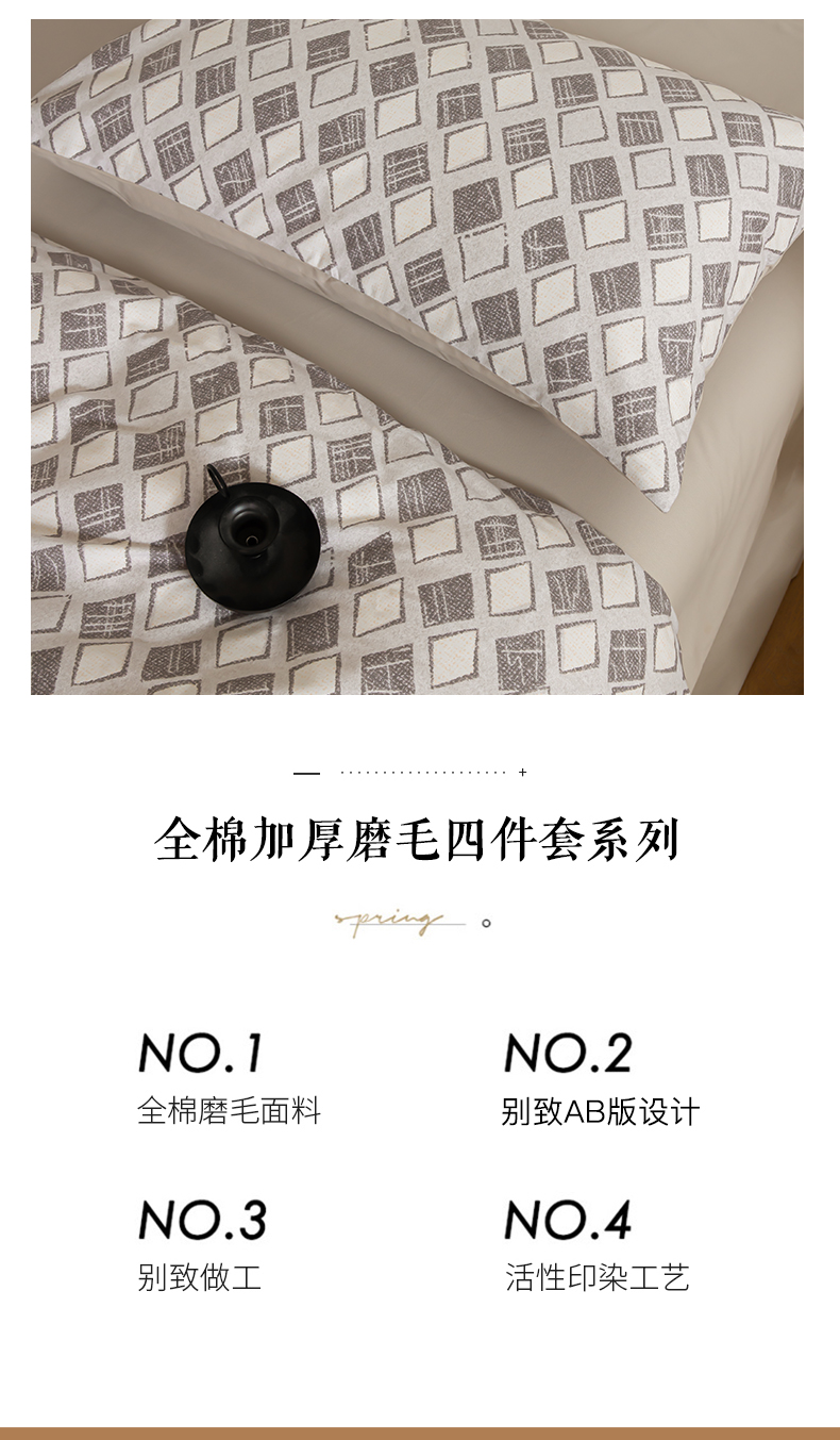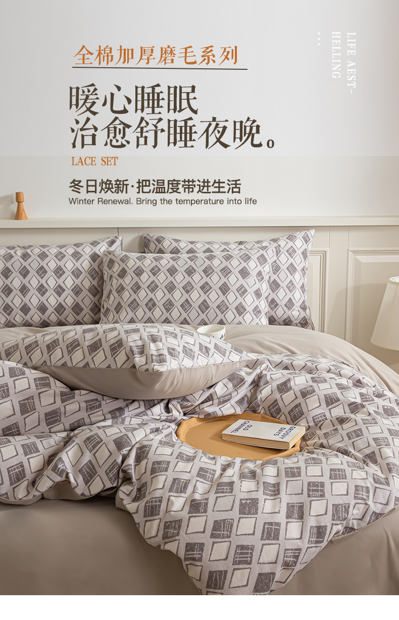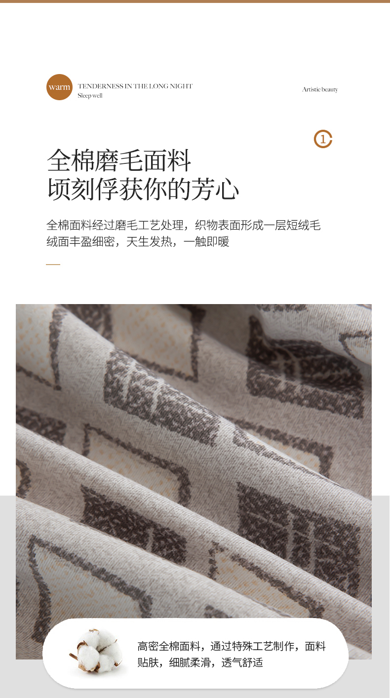 商品名称:绫韵家纺 2025秋冬新款印花全棉磨毛冬季加厚纯棉磨毛三件套四件套系列 摩卡