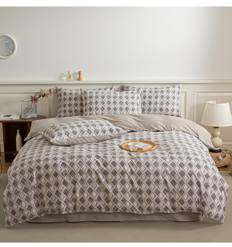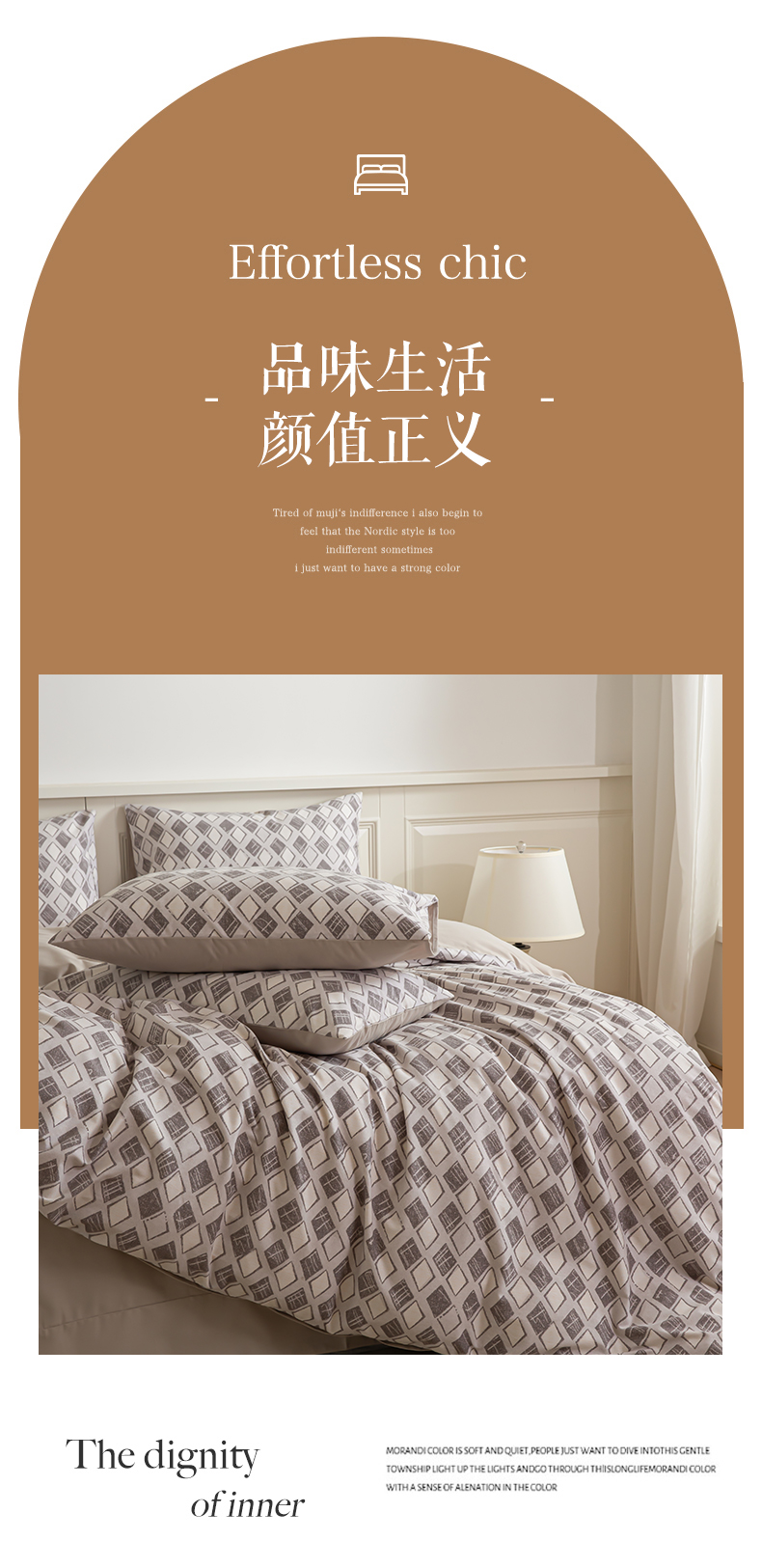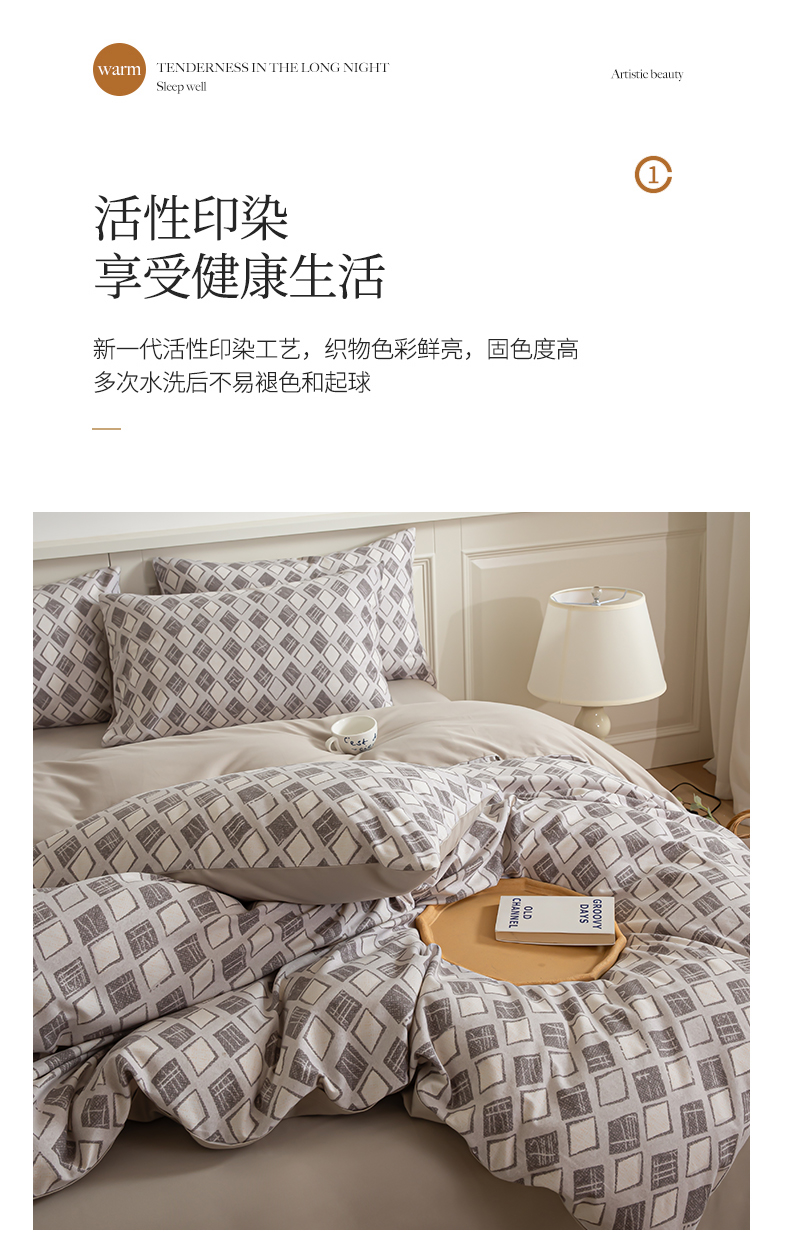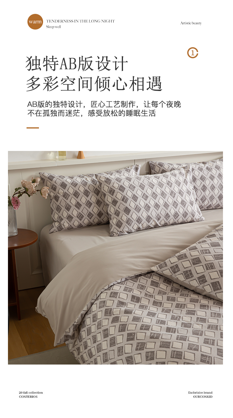 绫韵家纺 2025秋冬新款印花全棉磨毛冬季加厚纯棉磨毛三件套四件套系列 摩卡