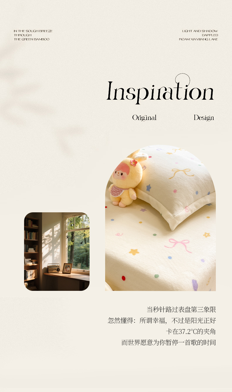• 91家纺网 家纺一手货源 找家纺 丝羽坊 2025新款印花小清新牛奶绒印花床笠三件套 曼妙时光