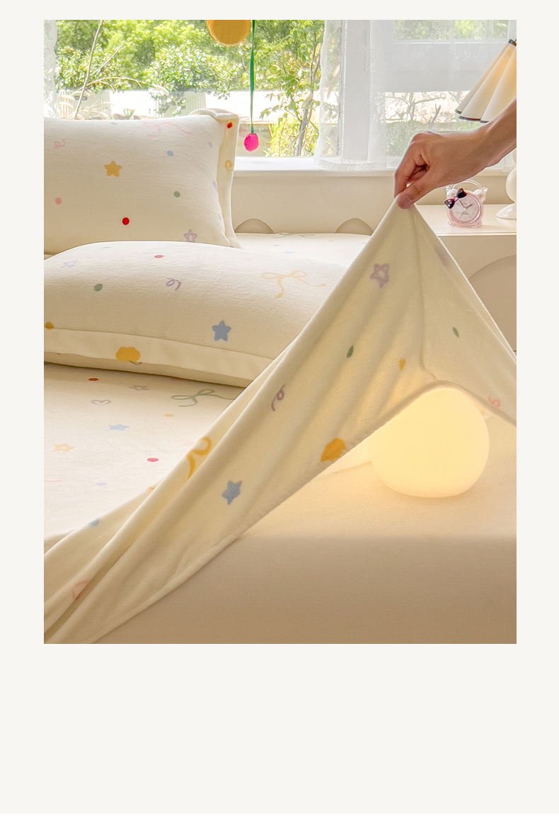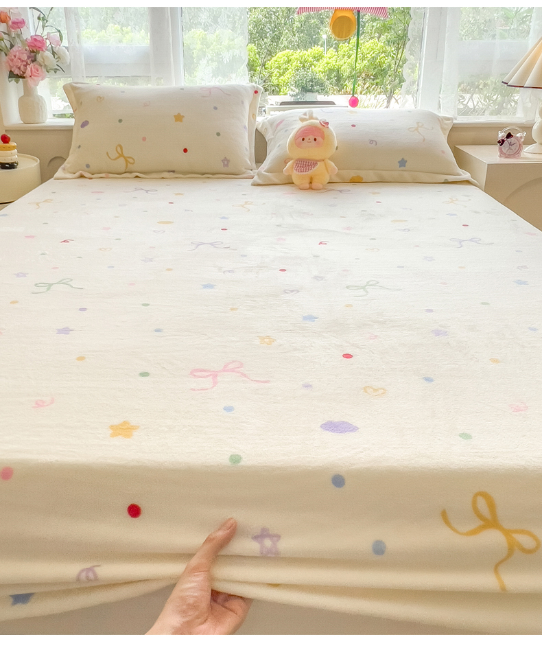 丝羽坊 2025新款印花小清新牛奶绒印花床笠三件套 曼妙时光