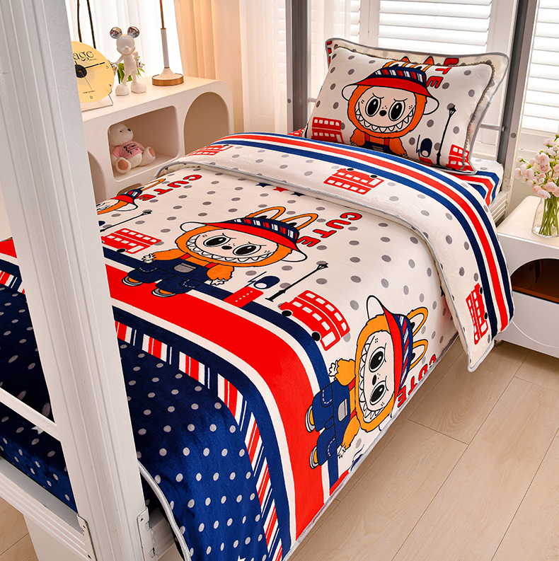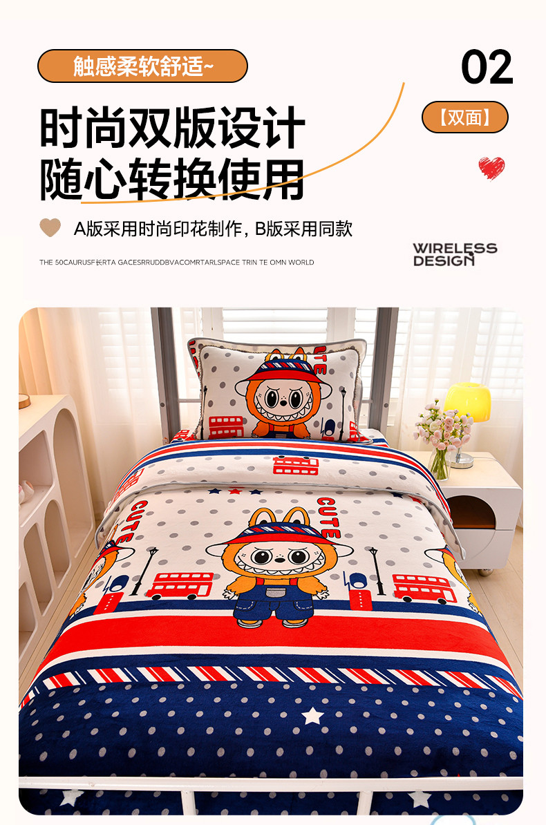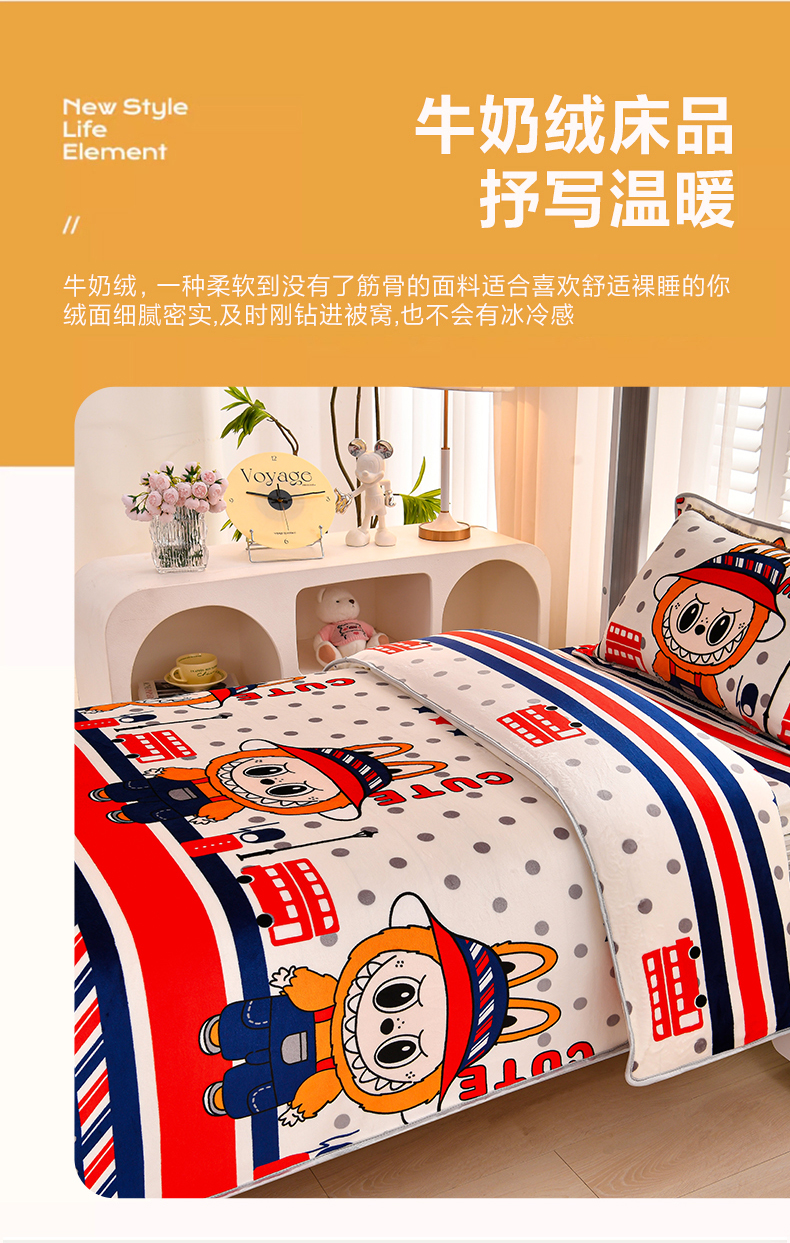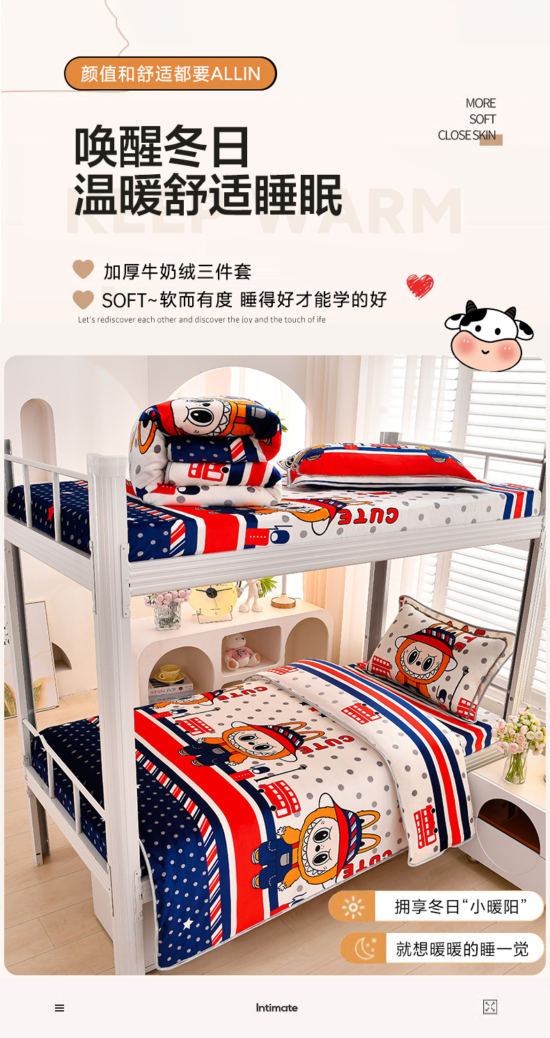 商品名称:绒品荟家纺 2025新款加厚牛奶绒三件套金貂绒法莱绒冬季床单款床笠款学生宿舍单人三件套英伦拉布布