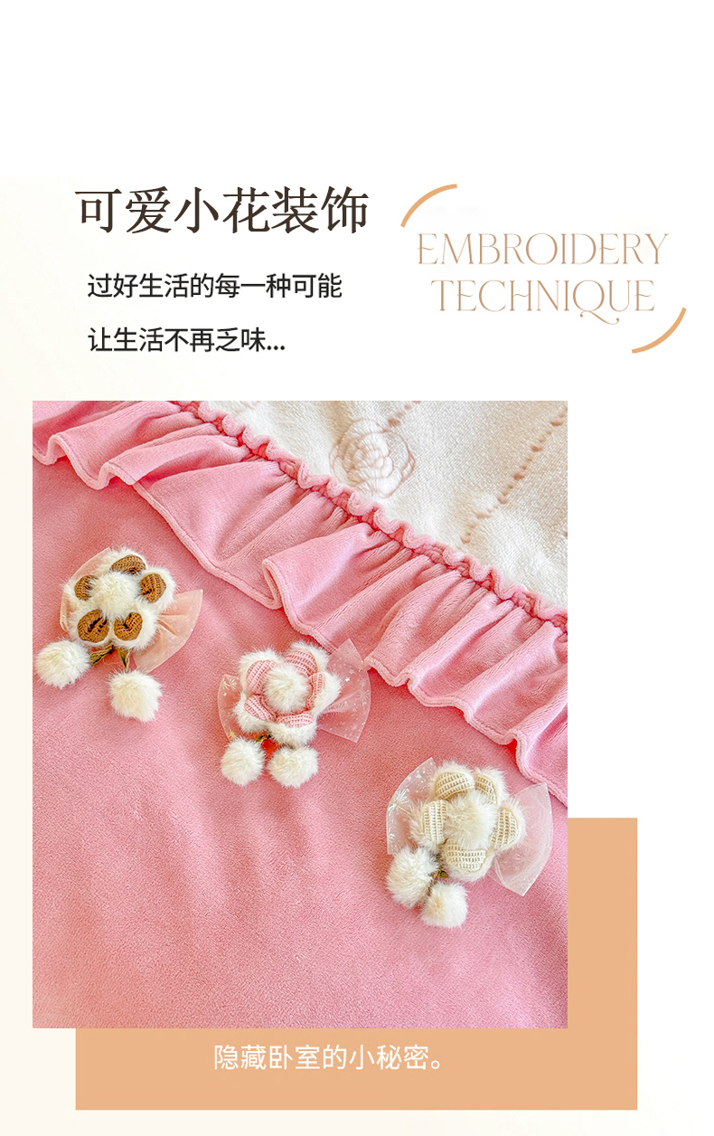 (总)【苏东来】2025高端韩版花边纯色甜美公主赫本风立体盘花牛奶绒刺绣花四件套清新少女婴儿法莱兔绒四件套,花开浪漫粉色,花开浪漫天蓝,花开浪漫水绿,花开浪漫米黄,花开浪漫豆沙