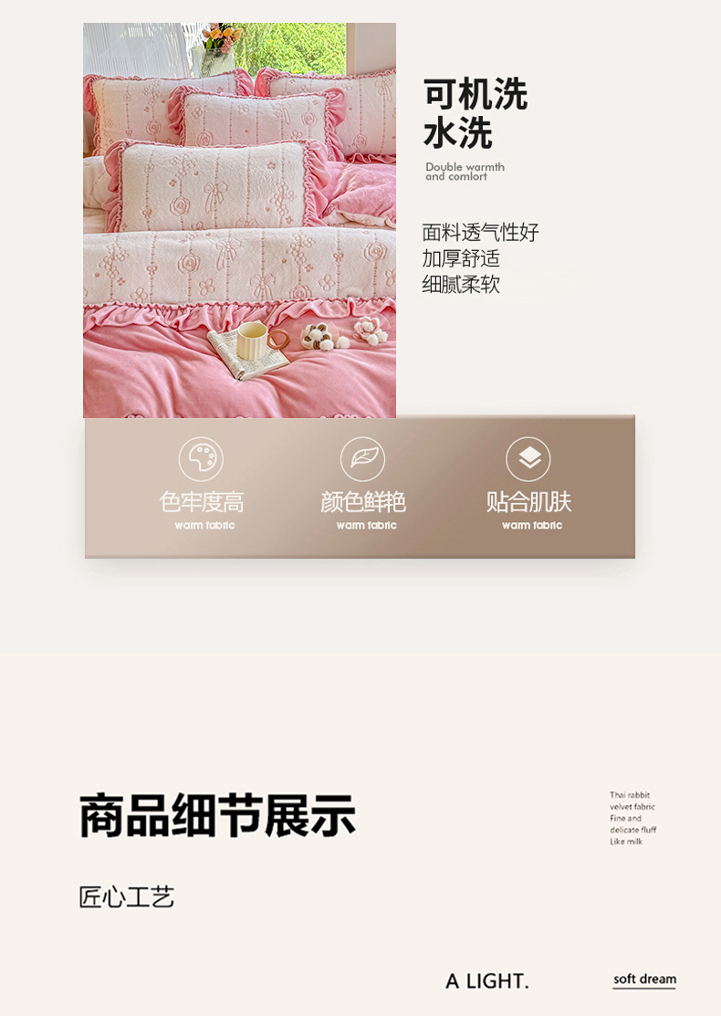 (总)【苏东来】2025高端加厚保暖外贸轻奢款纯色牛奶绒刺绣花四件套床单被套单品简约绒兔毛绒法莱绒婴儿绒套件,时光米黄,时光粉,时光卡其,时光天蓝,时光豆沙