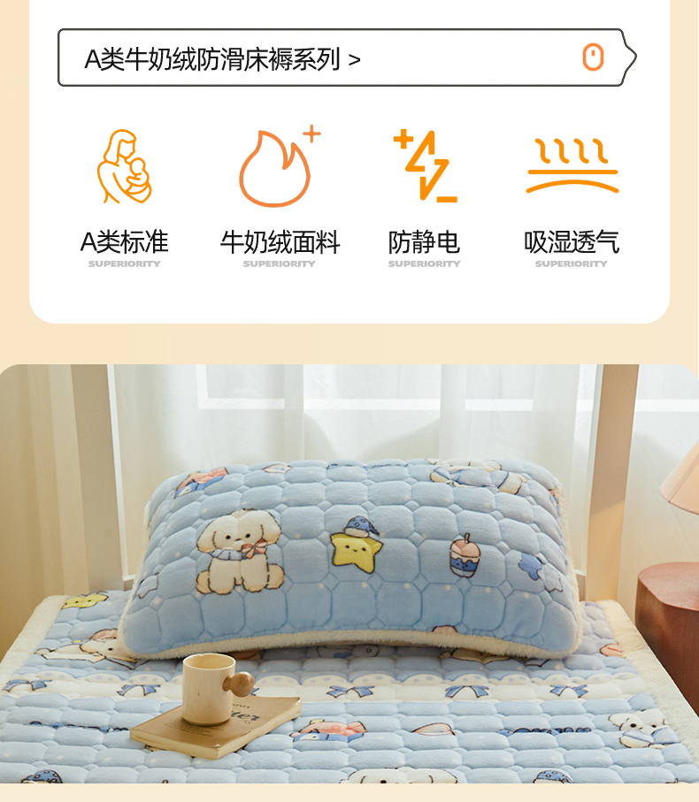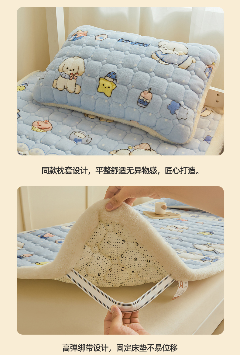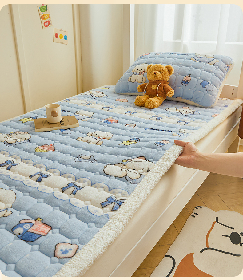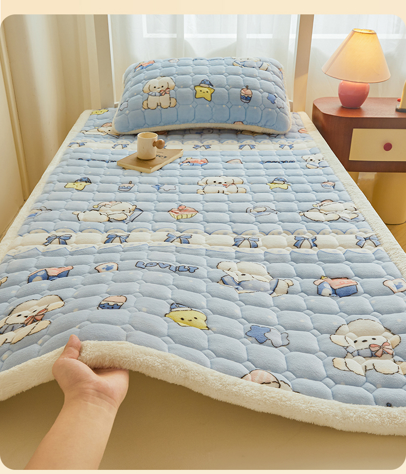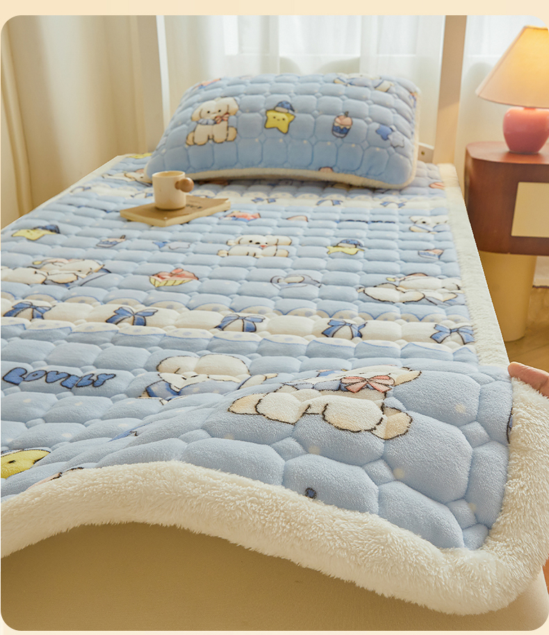 • 91家纺网 家纺一手货源 找家纺 雯豆家纺 【加厚款】2025新款牛奶绒床褥床垫学生宿舍床护垫子 牛奶绒床褥-奶蓝小狗【加厚款】