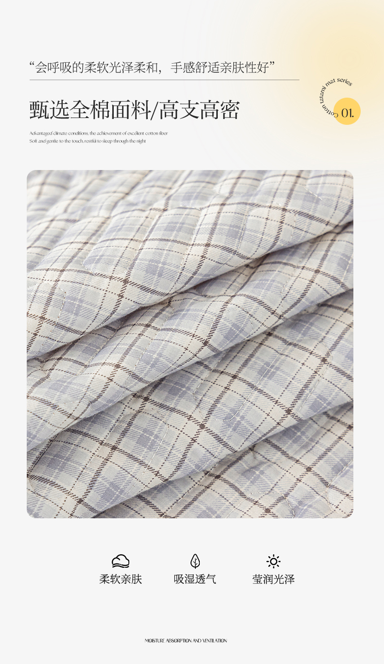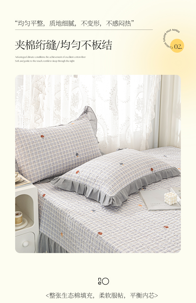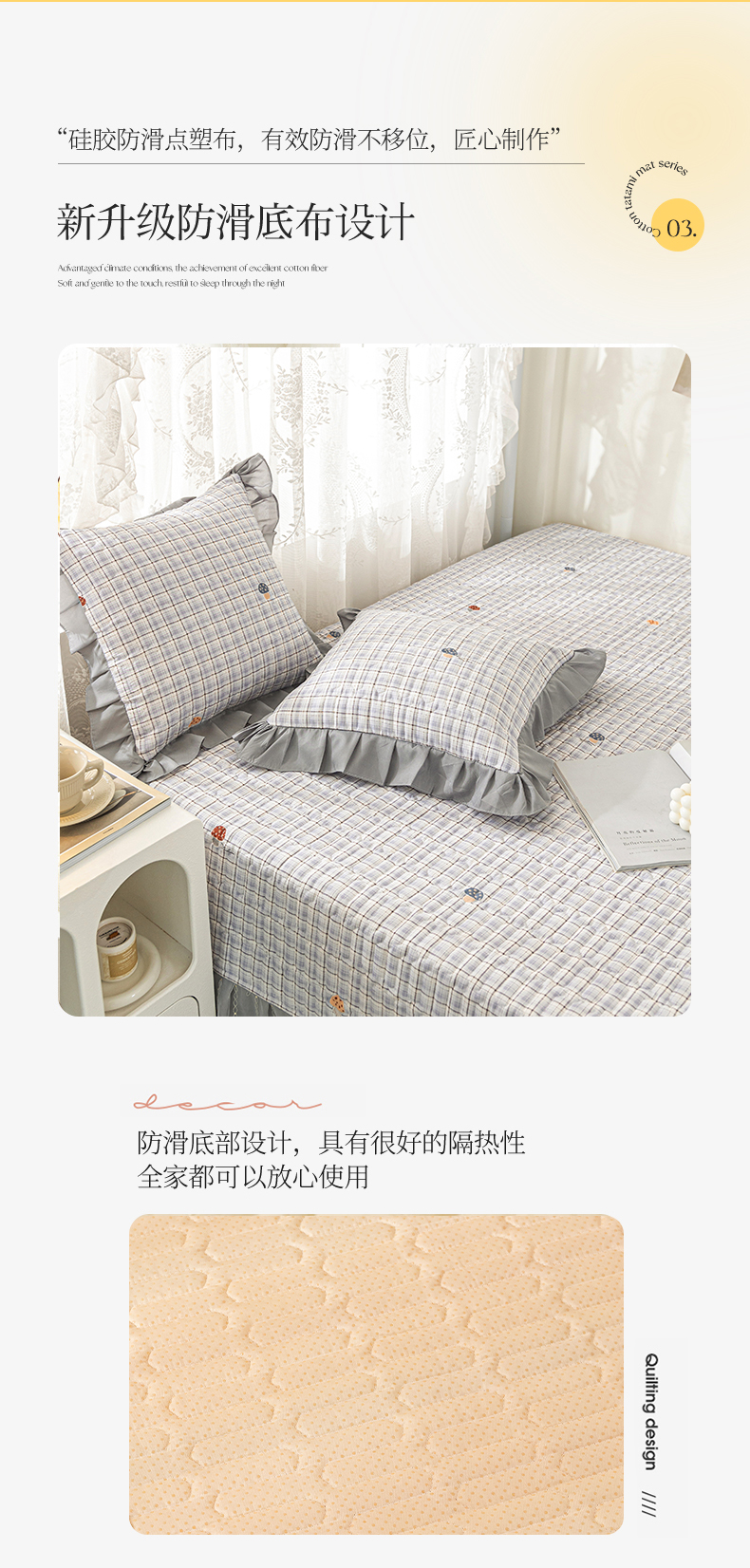 • 91家纺网 家纺一手货源 找家纺 美优兰 2025新款全棉防滑榻榻米炕垫纯棉床盖三件套 蘑菇格