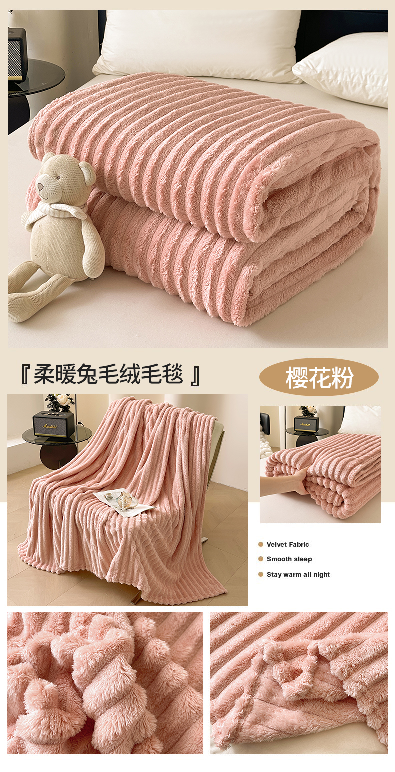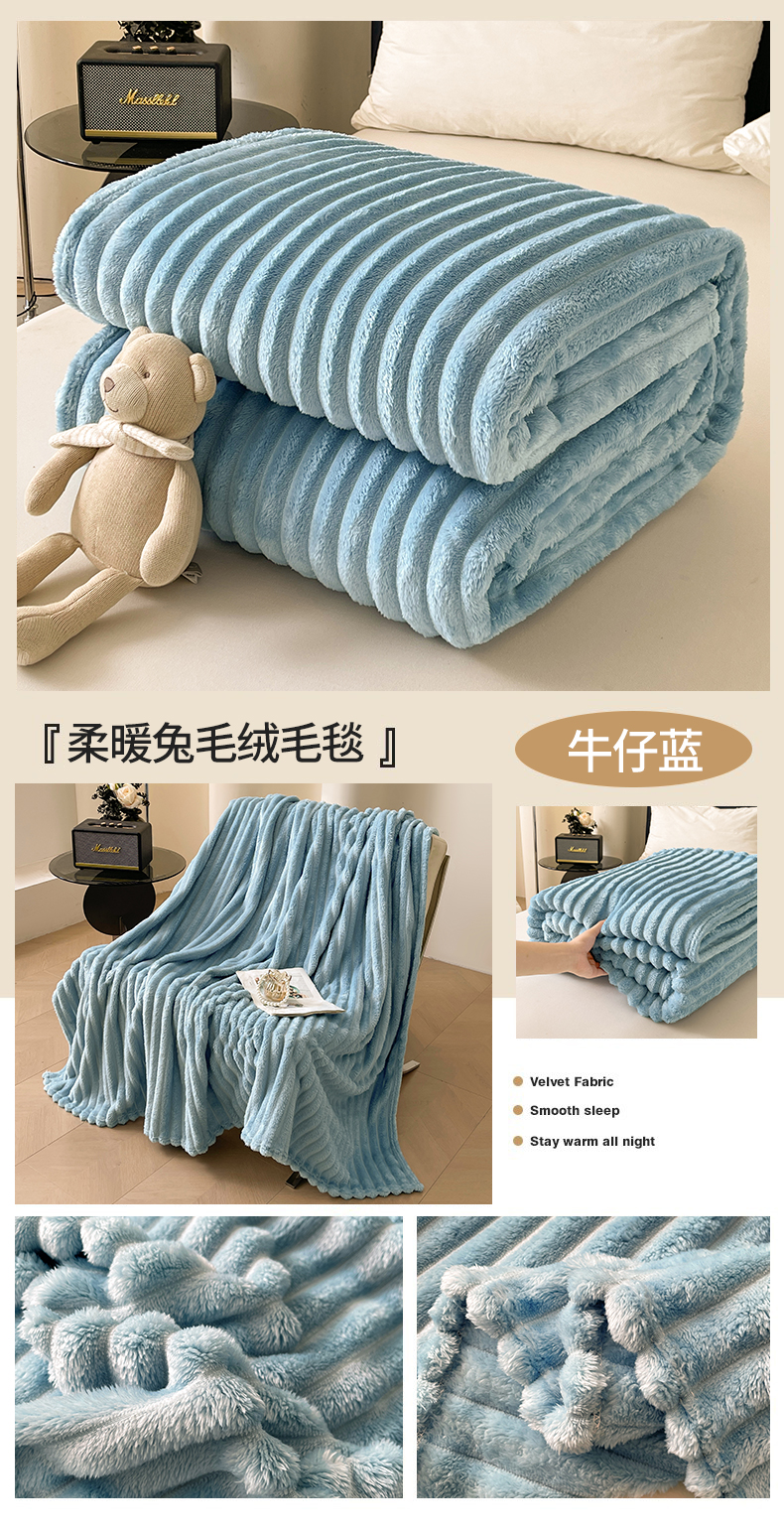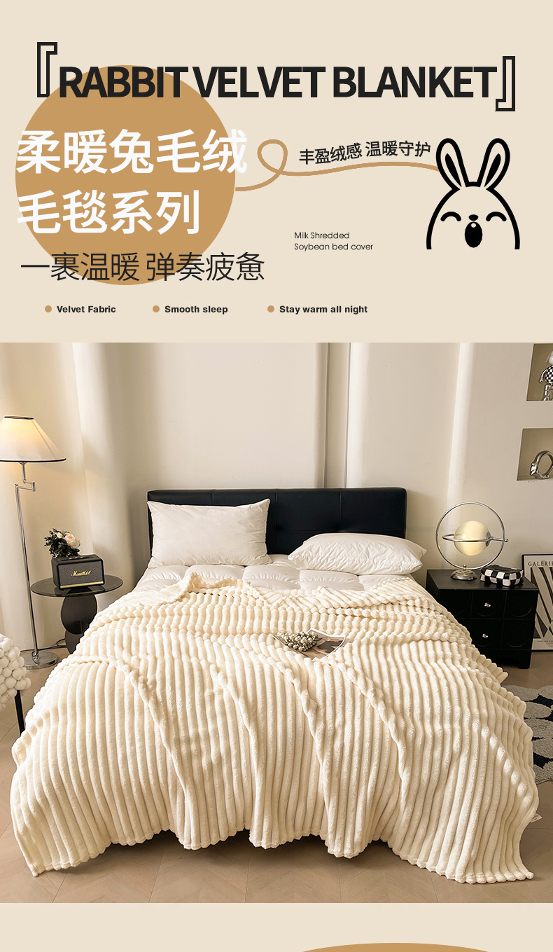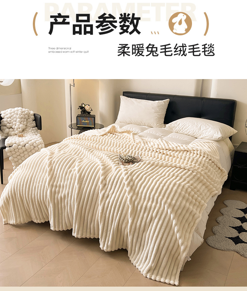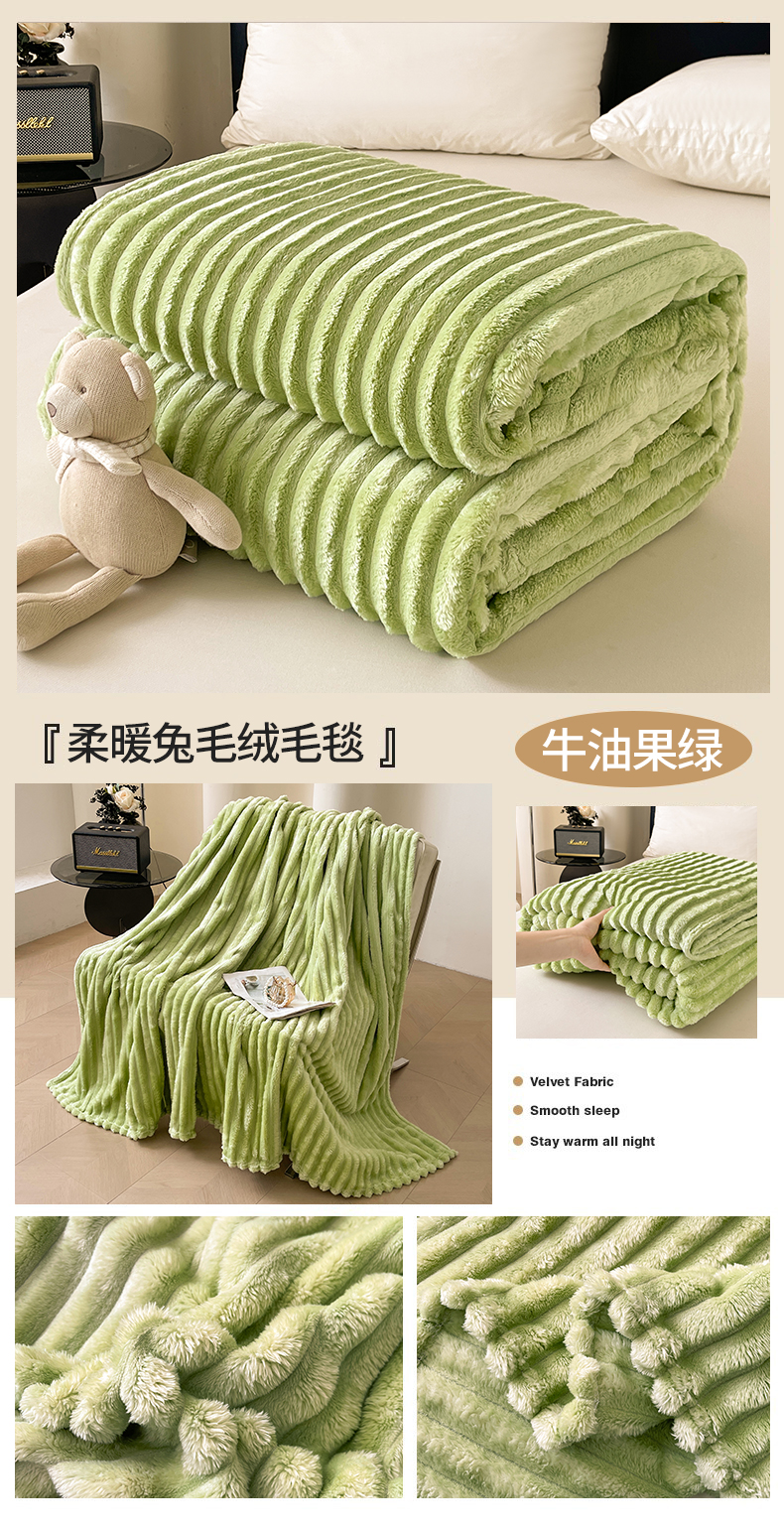 (总)湘之帛 2025新款柔软兔毛绒毛毯盖毯毯子,奶油白,牛油果绿,牛仔蓝,绅士灰,樱花粉