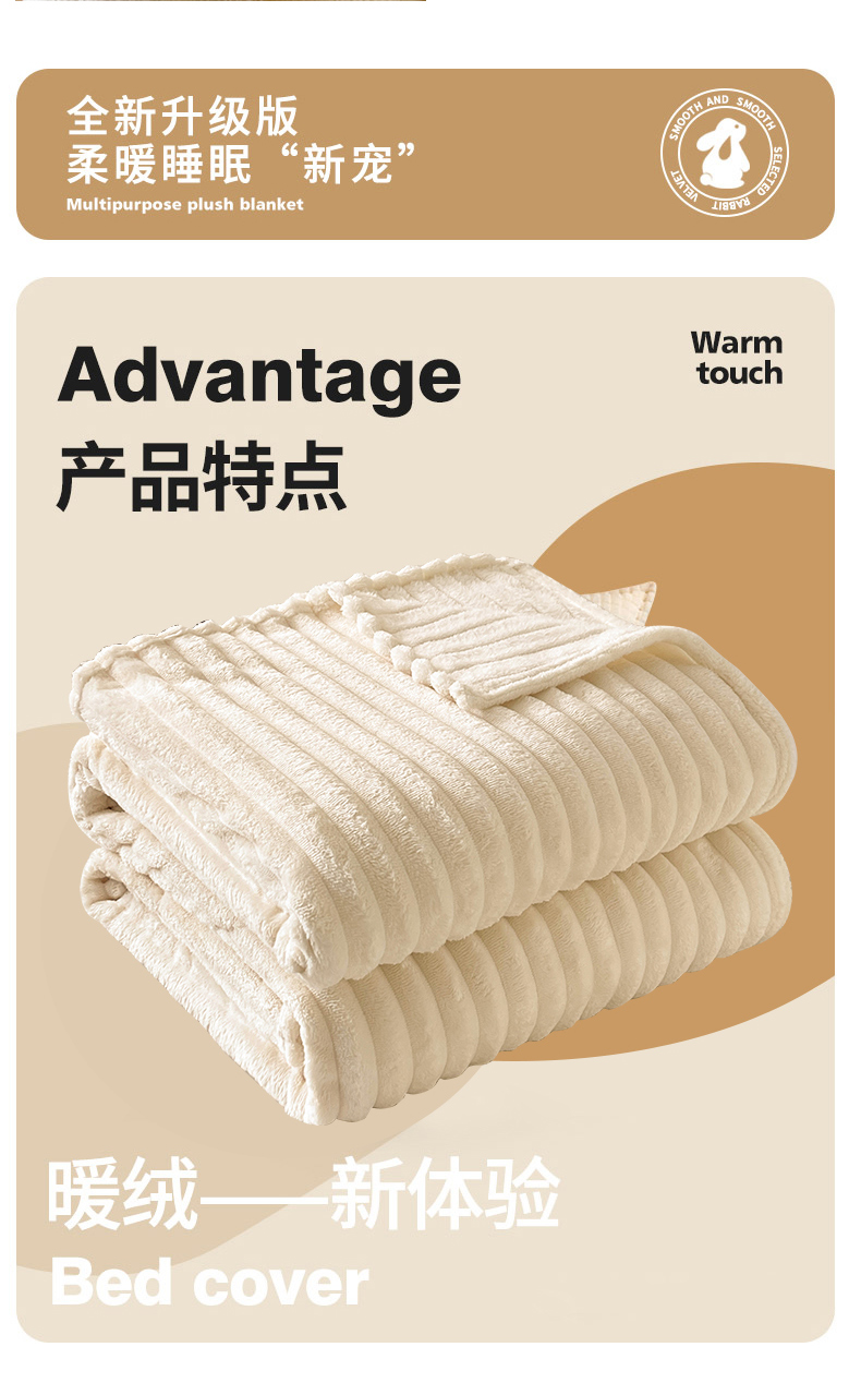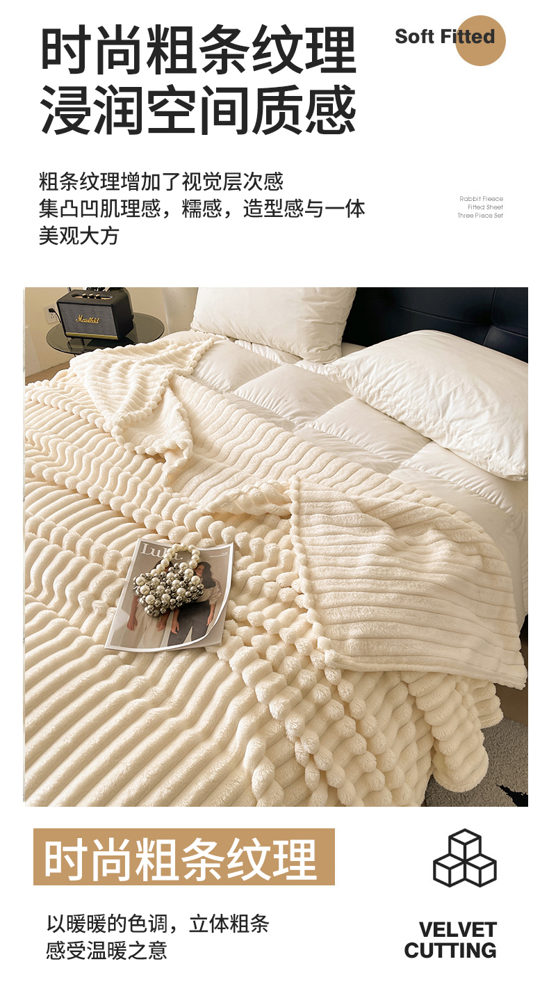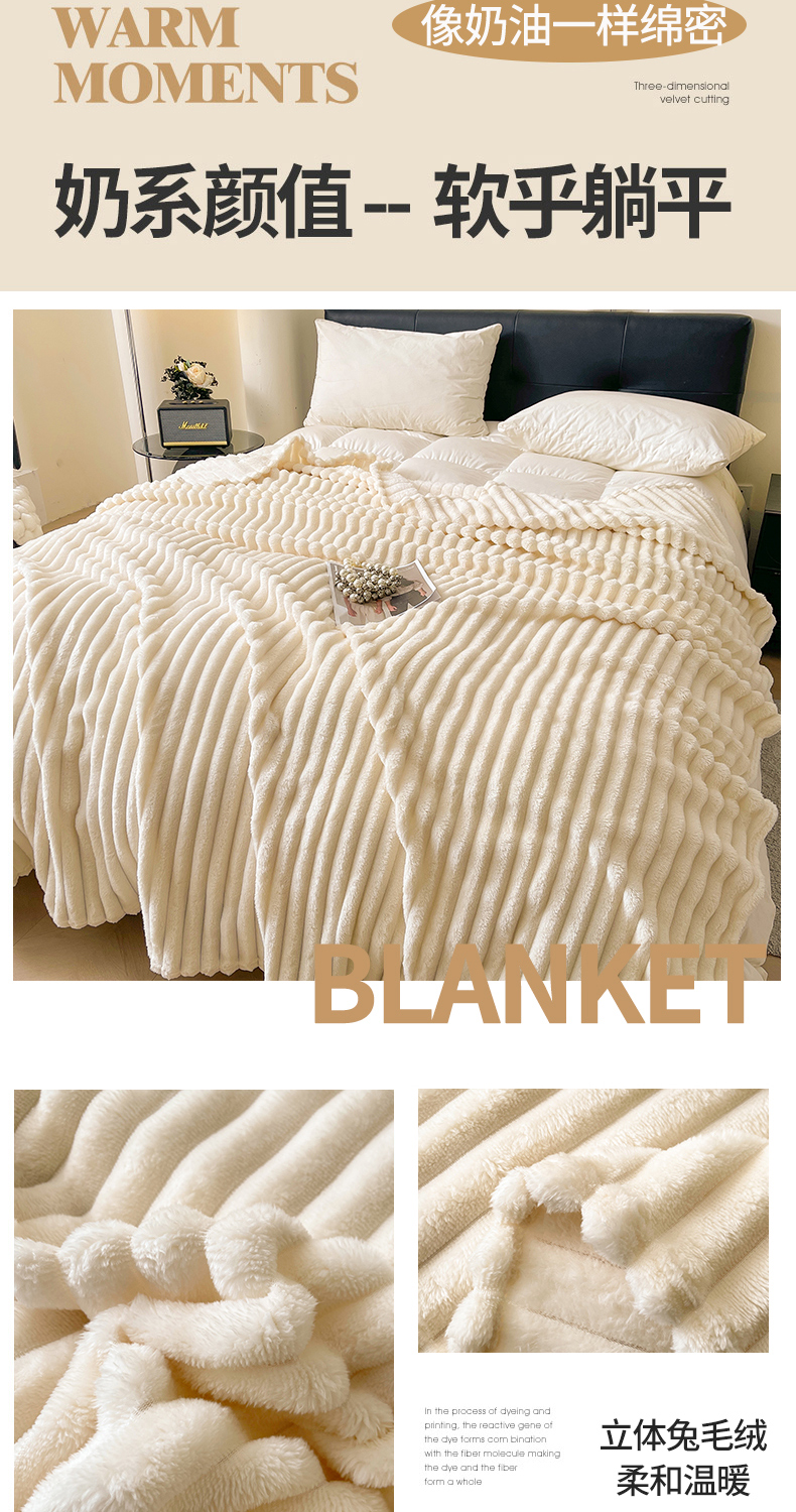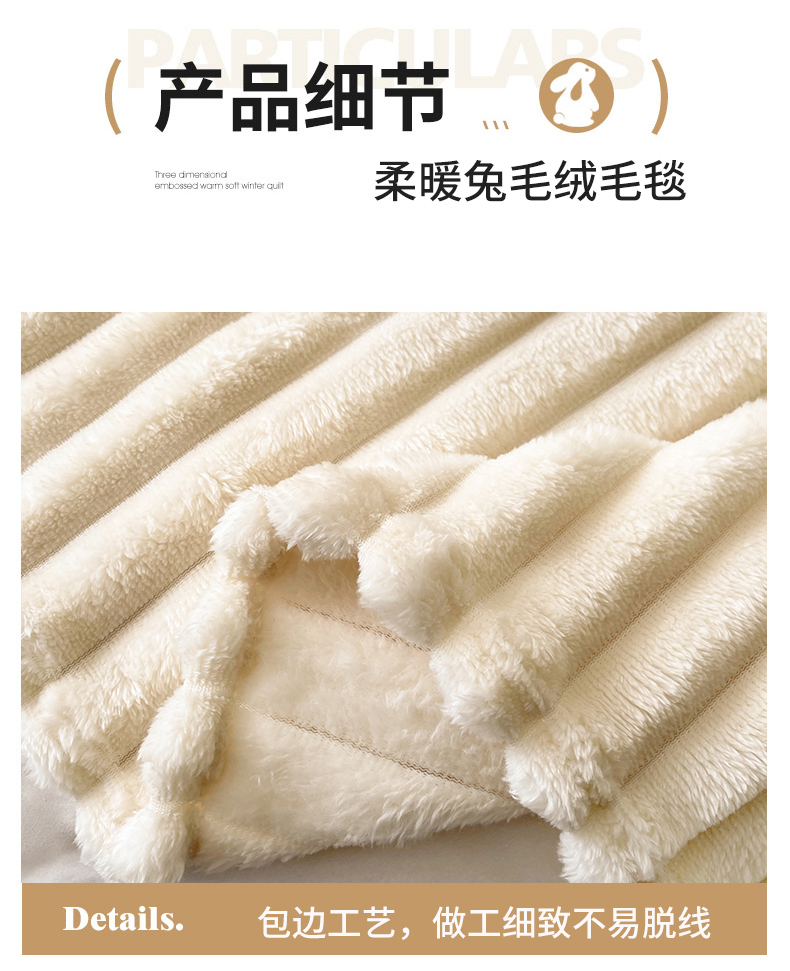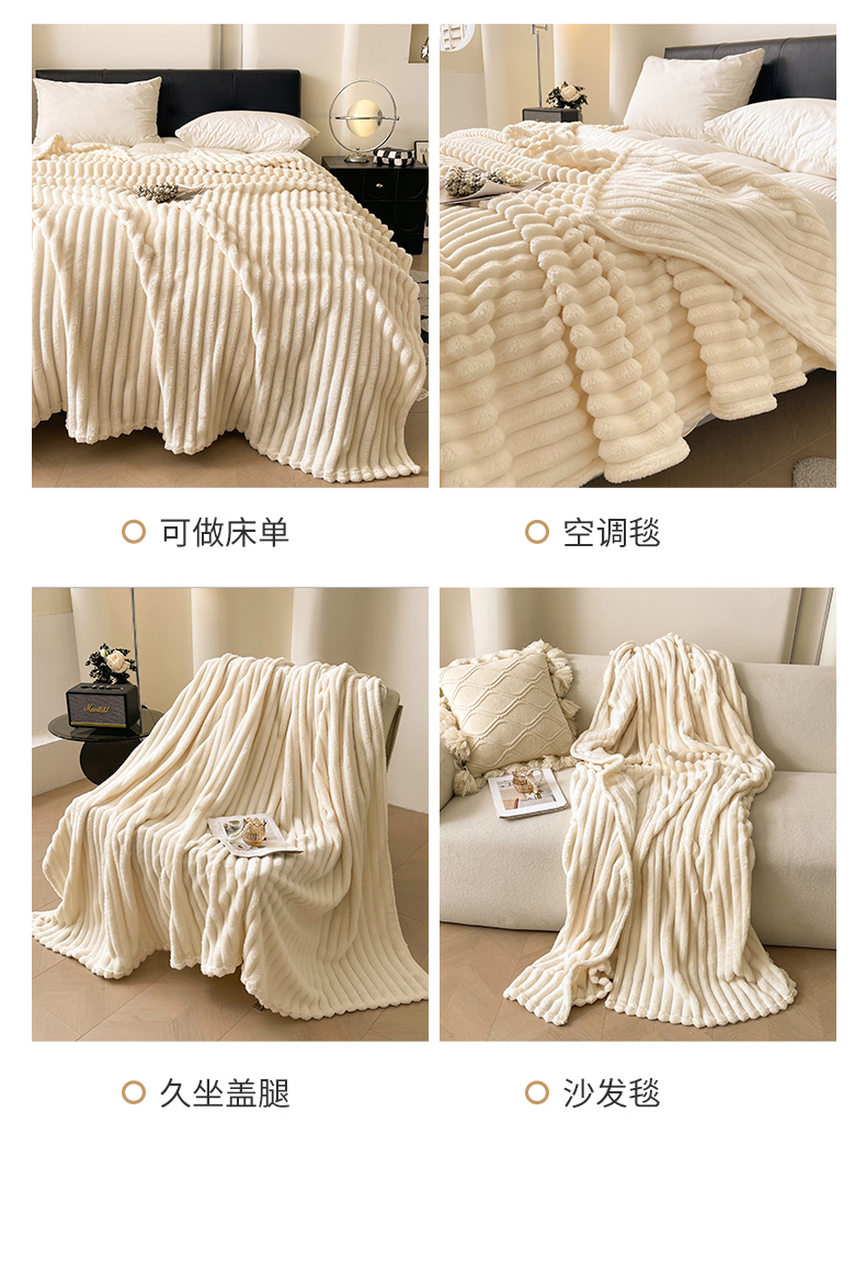 (总)湘之帛 2025新款柔软兔毛绒毛毯盖毯毯子,奶油白,牛油果绿,牛仔蓝,绅士灰,樱花粉