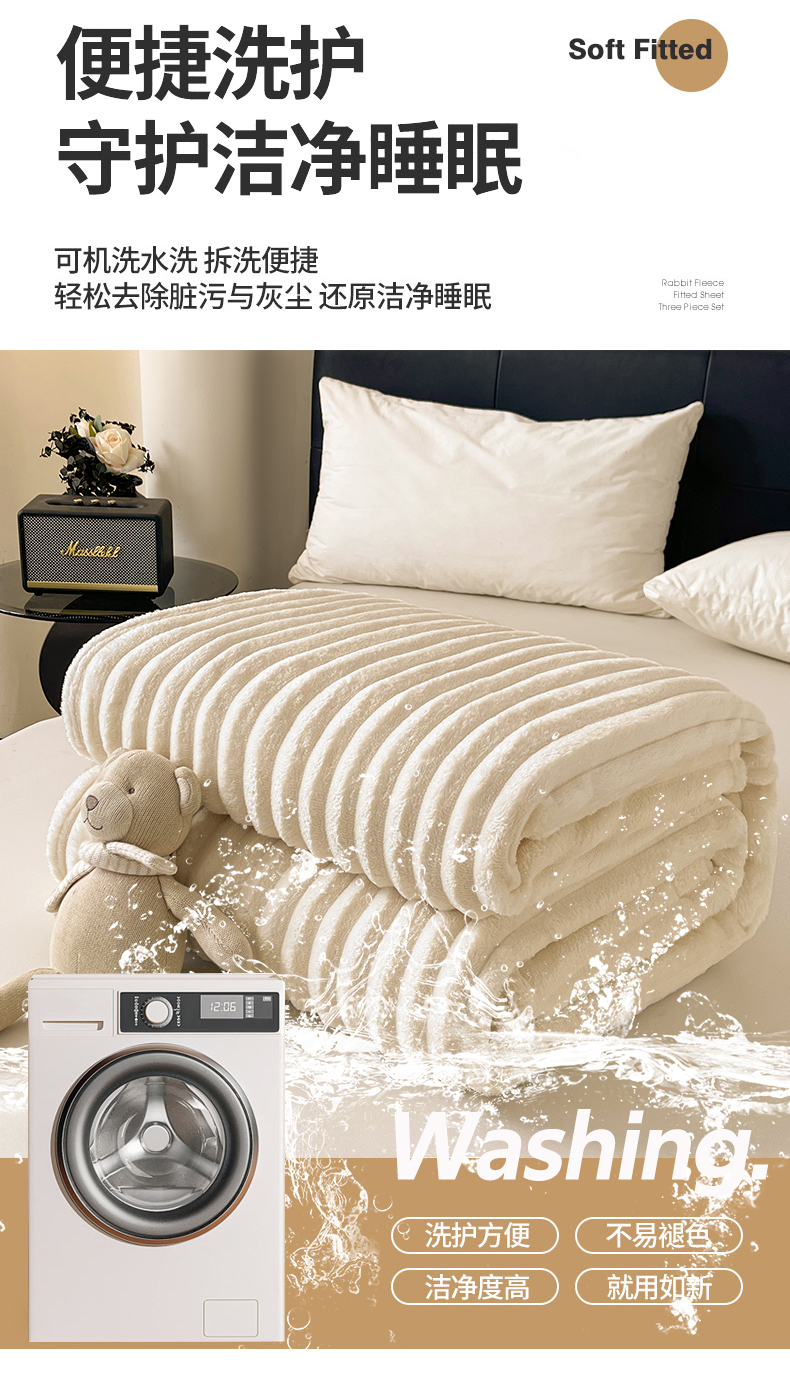 (总)湘之帛 2024新款高克重舒适牛奶绒三件套床笠,繁花似锦,格子小熊,可爱小熊,快乐萌狗,恋爱物语,甜心兔兔