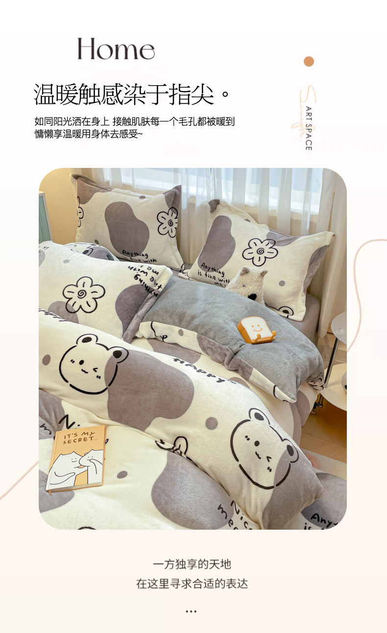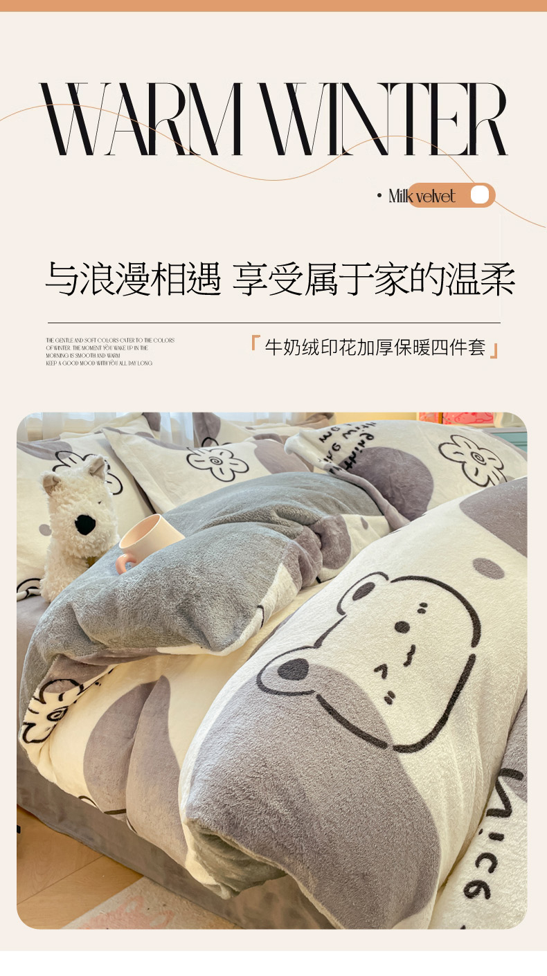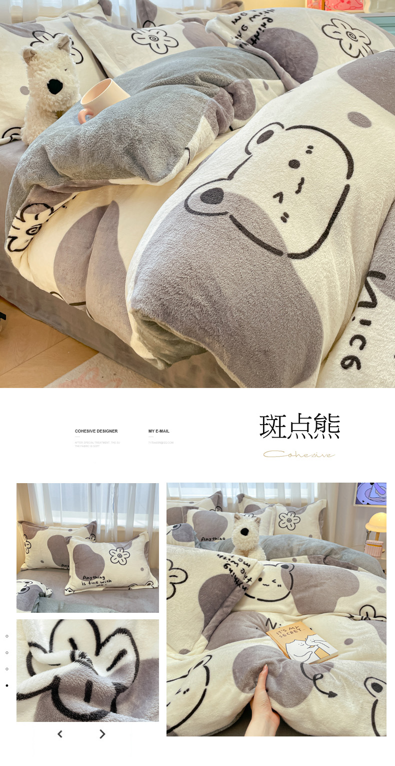 当前位置: 91家纺网 > 商品网购 > 床品套件 > 四件套 > 牛奶绒四件套 > 柒月家居 2025新款高克重牛奶绒印花加厚保暖四件套 斑点熊