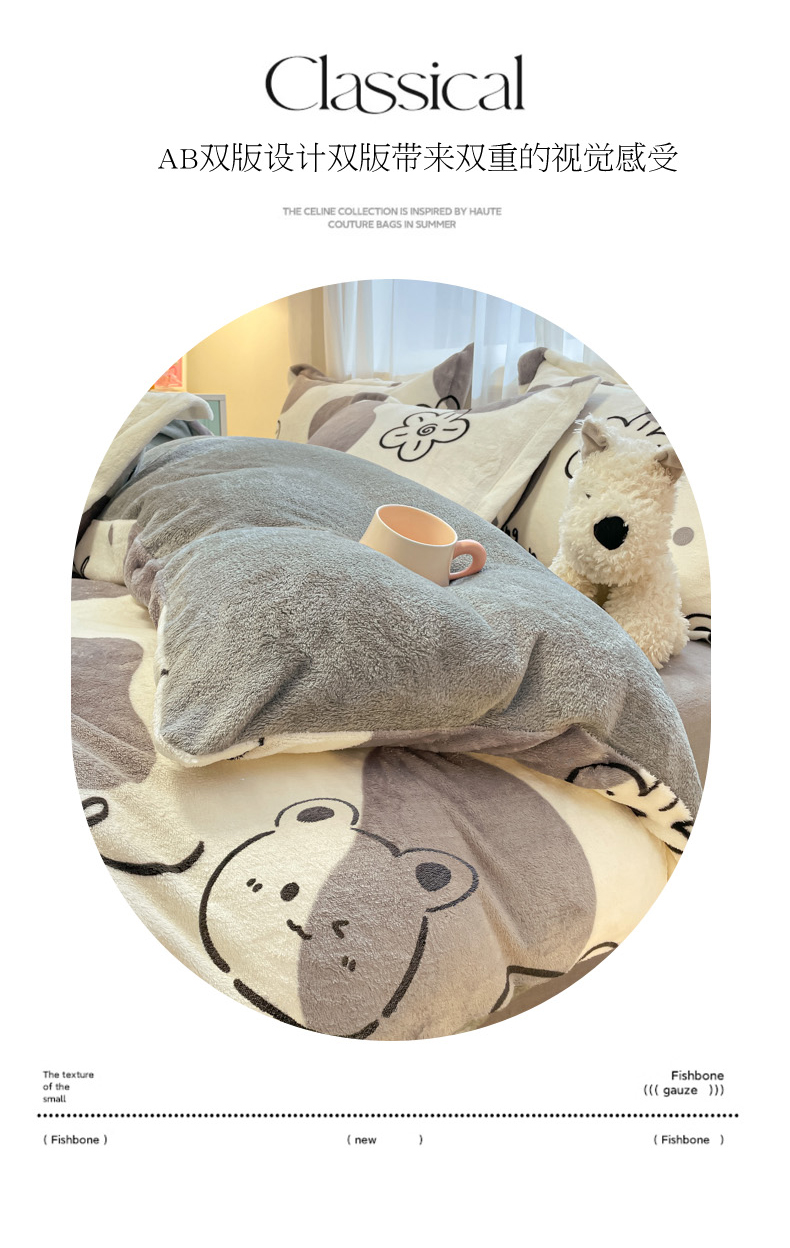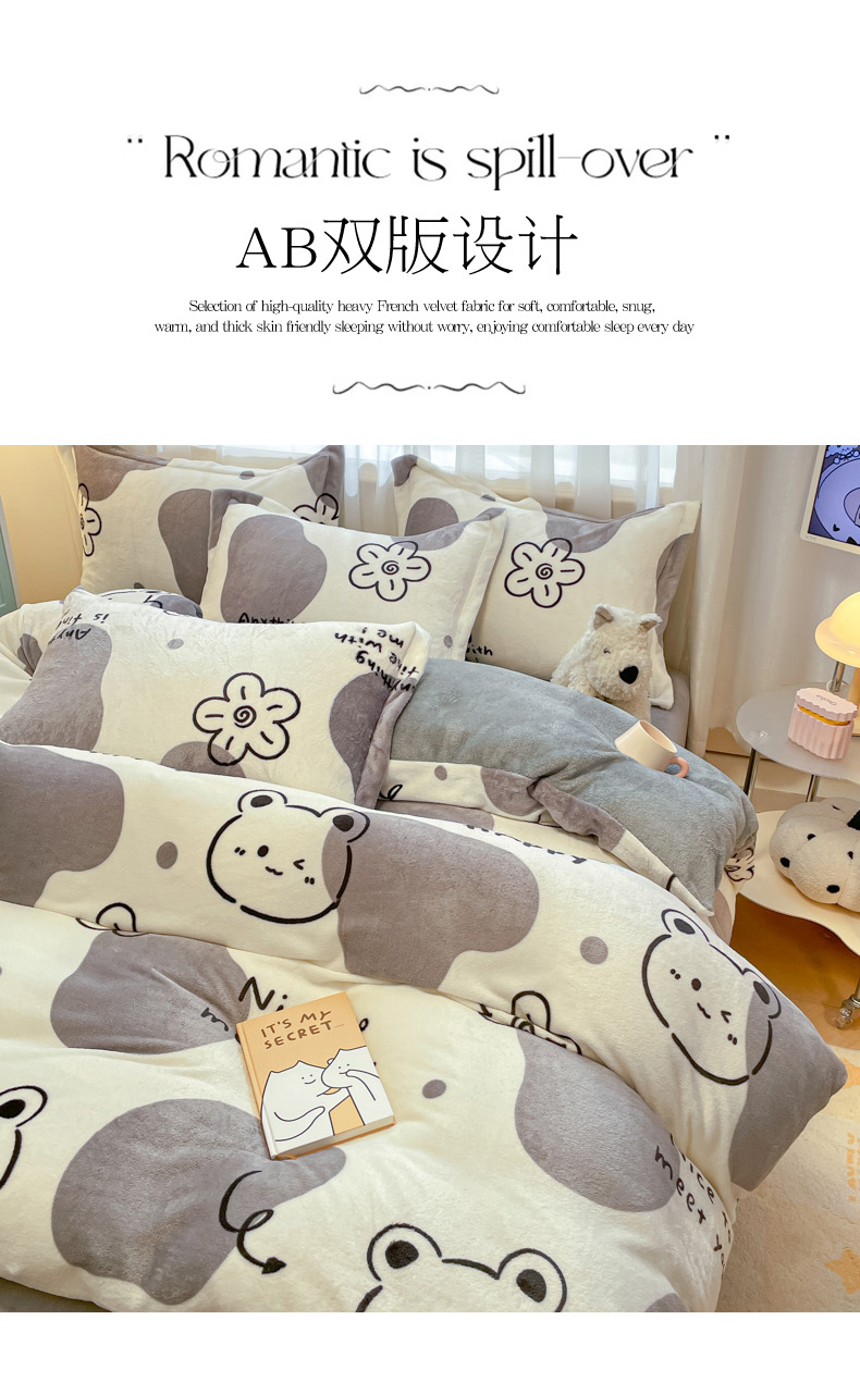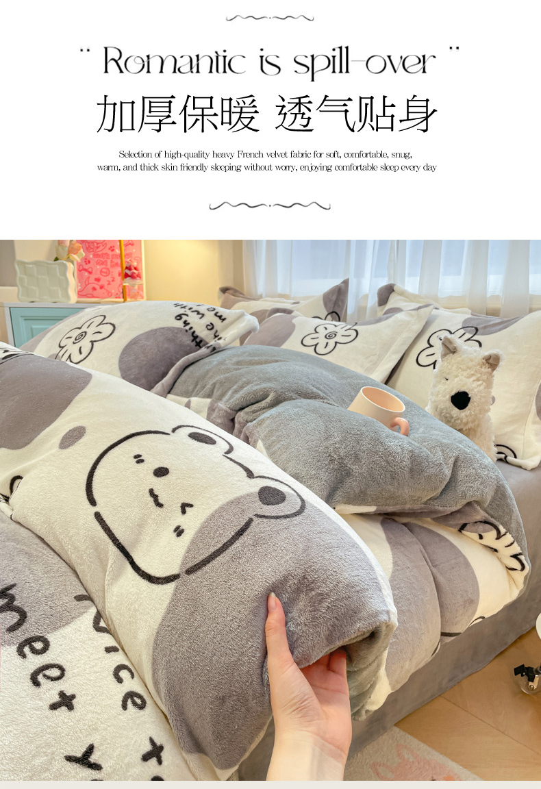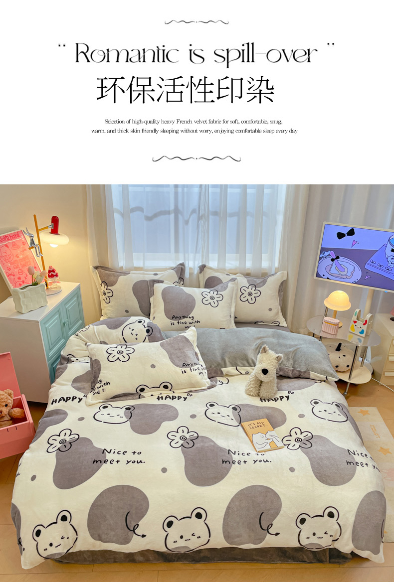 当前位置: 91家纺网 > 商品网购 > 床品套件 > 四件套 > 牛奶绒四件套 > 柒月家居 2025新款高克重牛奶绒印花加厚保暖四件套 斑点熊