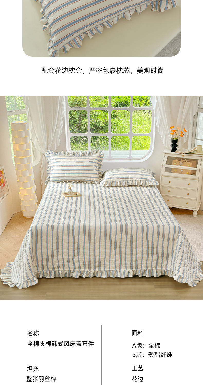 (总)益利多 2025新款130*70全棉斜纹夹棉绗缝小花边床盖纯棉加厚床盖三件套,薄荷微风,初野,动物乐园,繁花似锦,欢乐派,简逸,橘络,萌萌熊,青枝绿叶,清风佳人,趣味森林