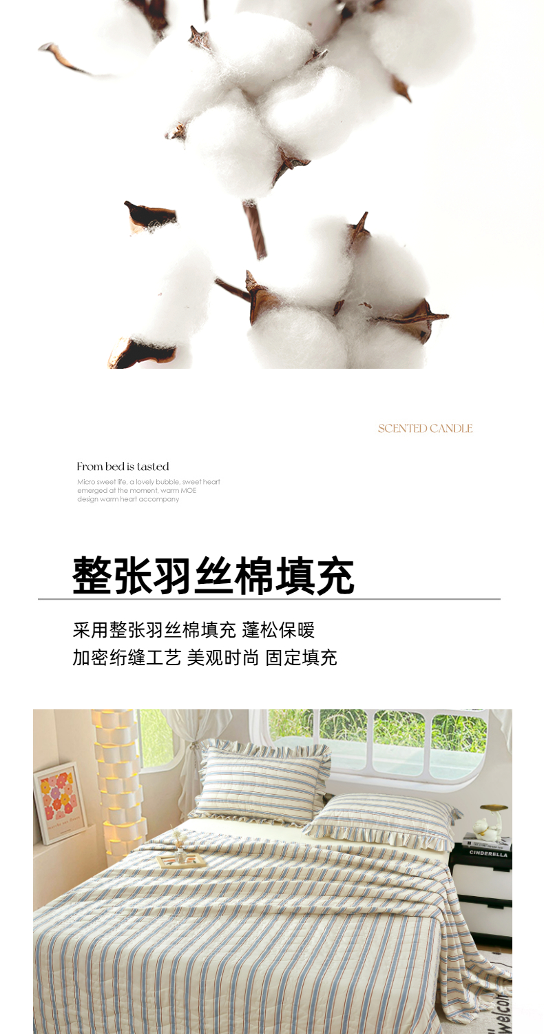益利多 2025新款130*70全棉斜纹夹棉绗缝小花边床盖纯棉加厚床盖三件套 简逸