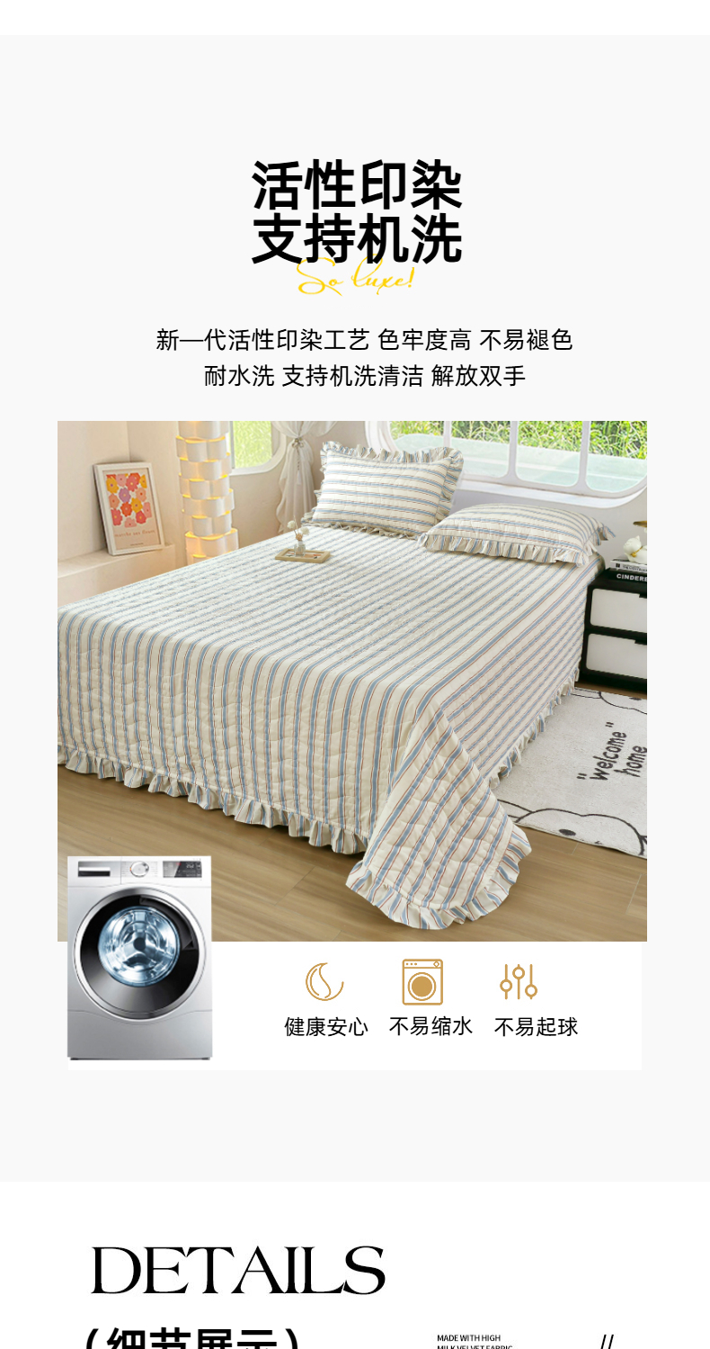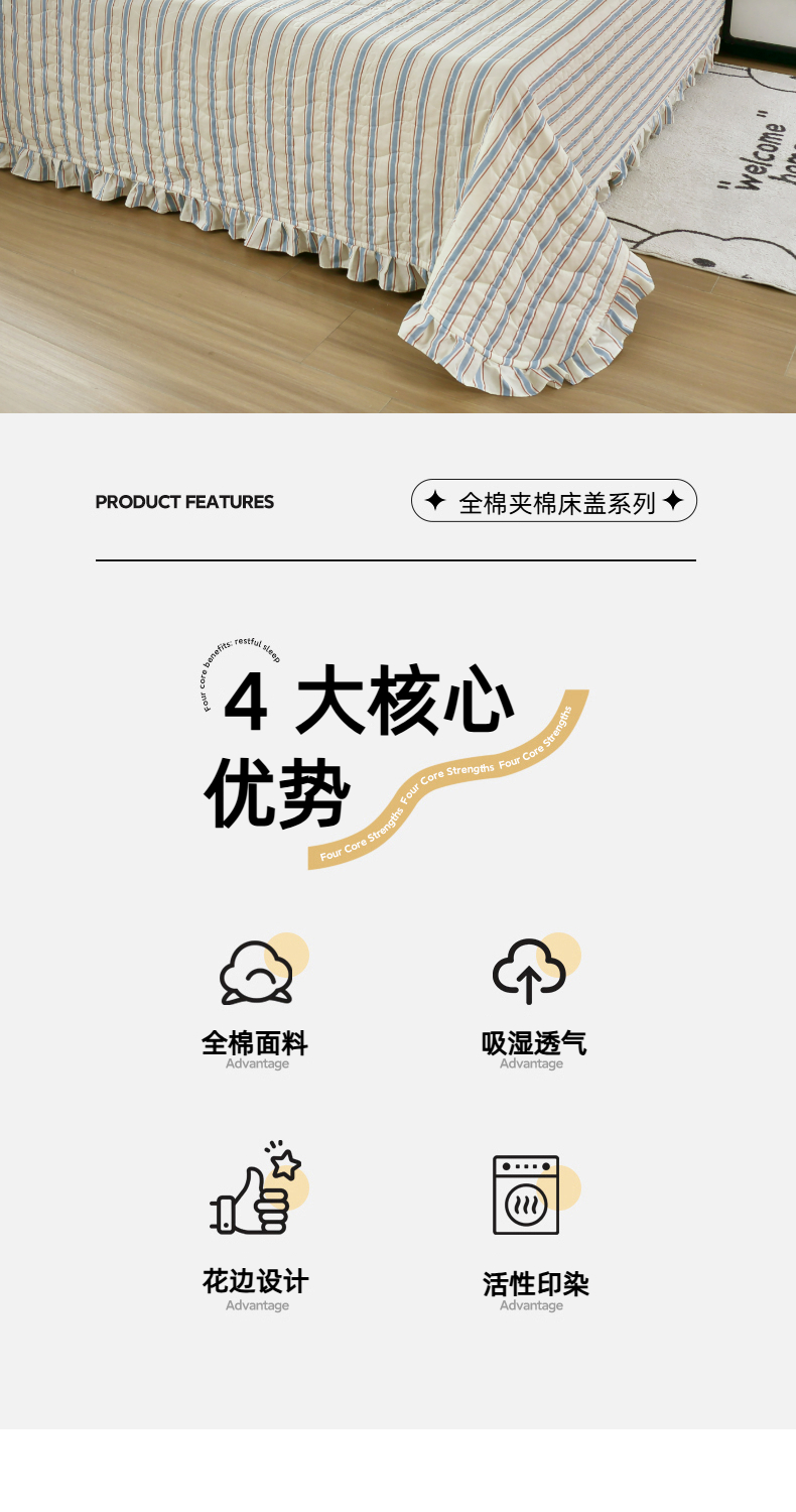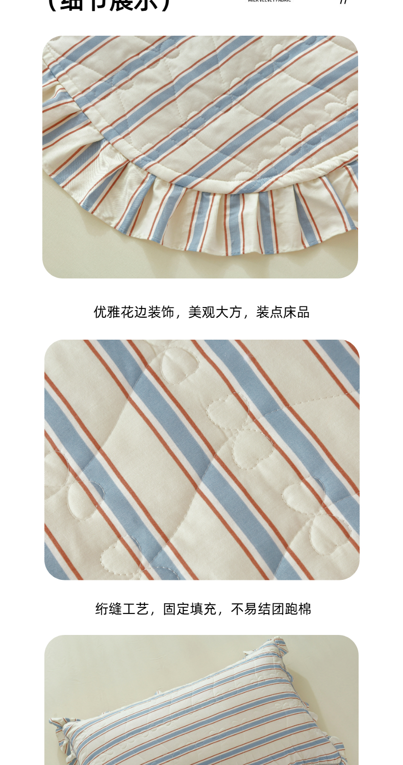 • 91家纺网 家纺一手货源 找家纺 益利多 2025新款130*70全棉斜纹夹棉绗缝小花边床盖纯棉加厚床盖三件套 简逸
