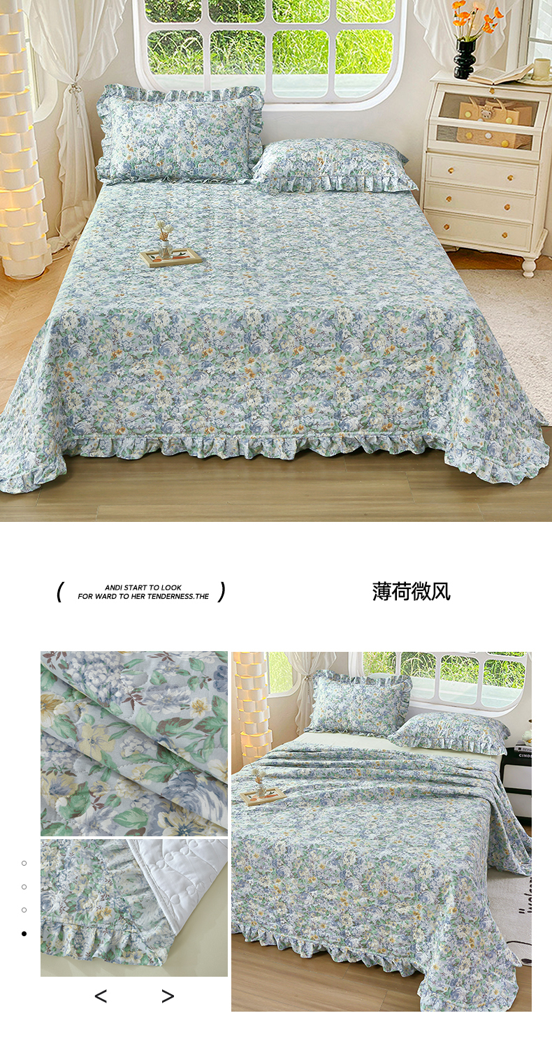 • 91家纺网 家纺一手货源 找家纺 (总)益利多 2025新款全棉碎花纯棉卡通夹棉床裙单床裙三件套,薄荷微风,初野,欢乐派,简逸,橘络,清风佳人,繁花似锦
