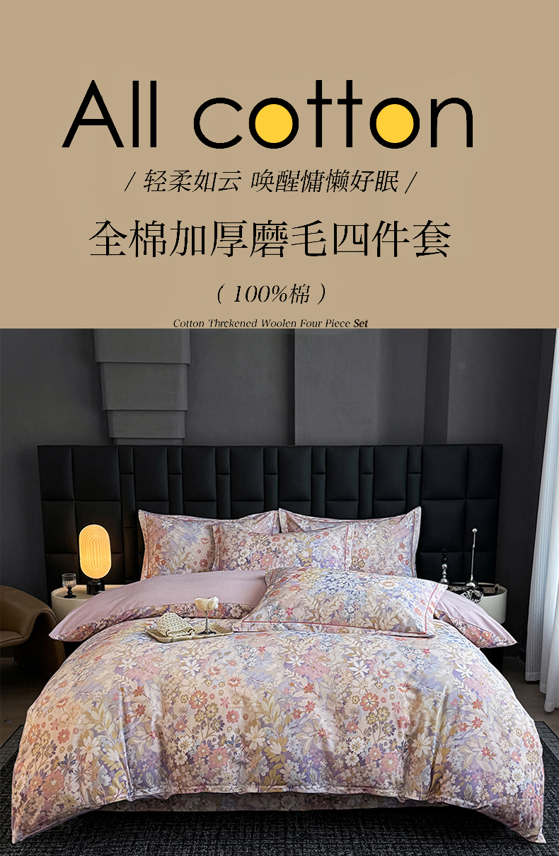 当前位置: 91家纺网 > 商品网购 > 床品套件 > 四件套 > 全棉普通四件套 > 金盛纺 2025新款全棉纯棉加厚磨毛印花四件套 樱雪柰