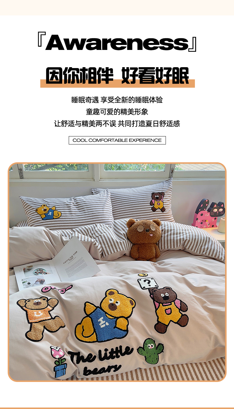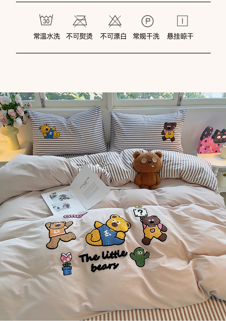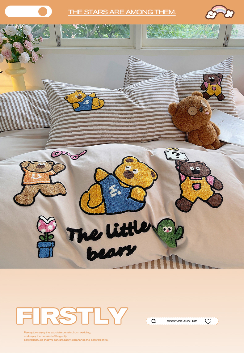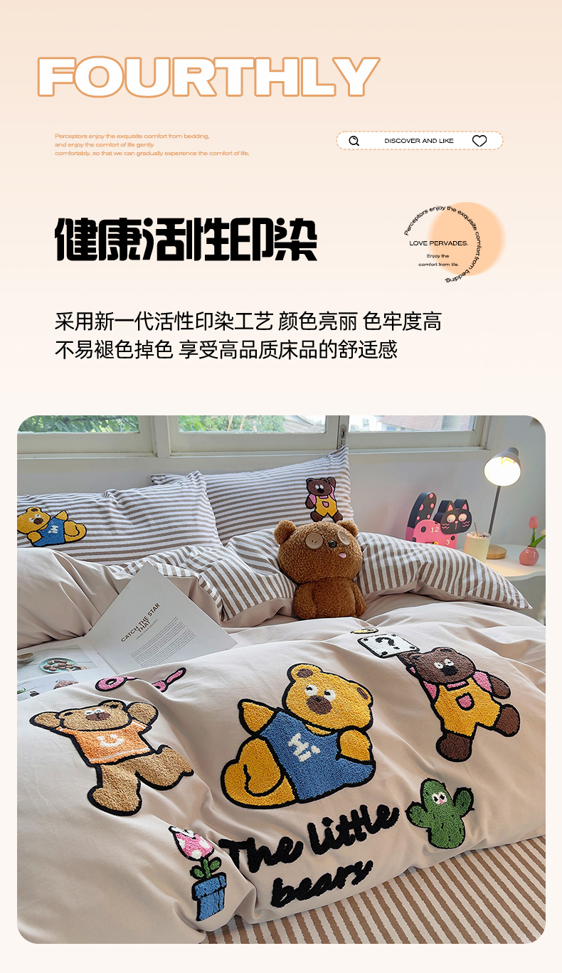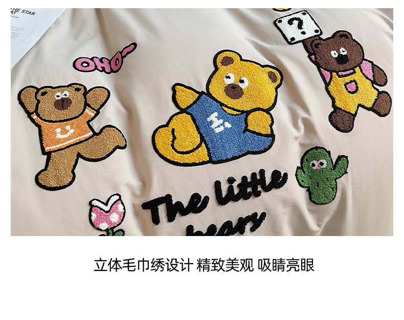 商品名称:炫拼家纺 2025新款全棉磨毛卡通毛巾绣加厚纯棉四件套-可梦系列 可梦-熊乐园