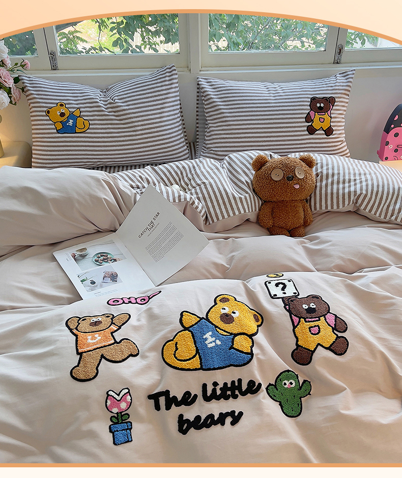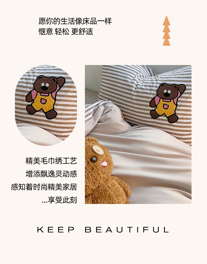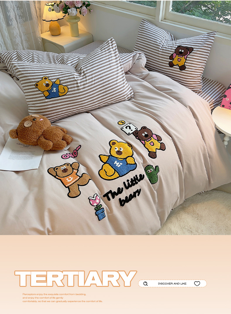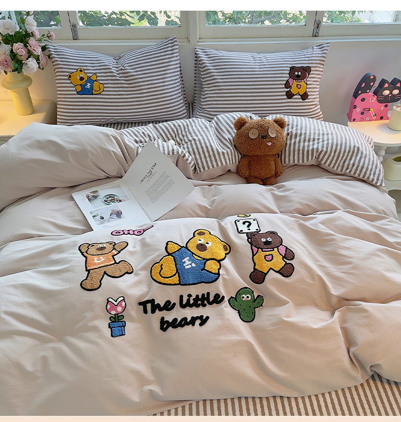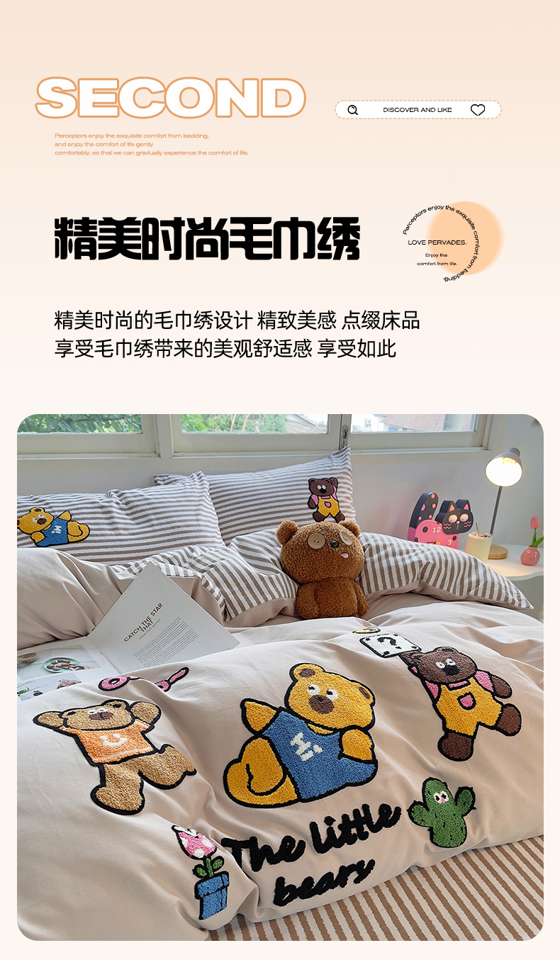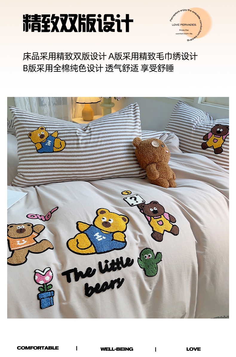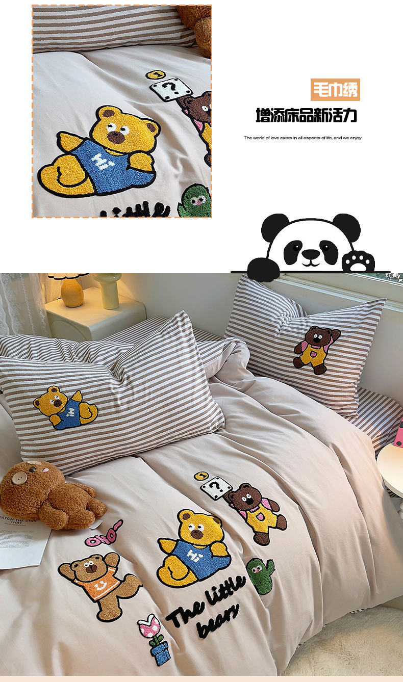 炫拼家纺 2025新款全棉磨毛卡通毛巾绣加厚纯棉四件套-可梦系列 可梦-熊乐园