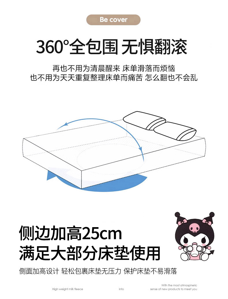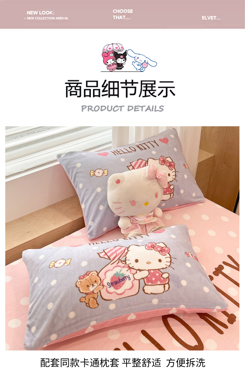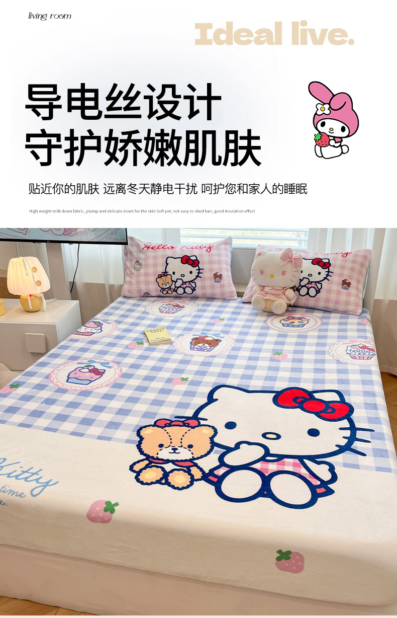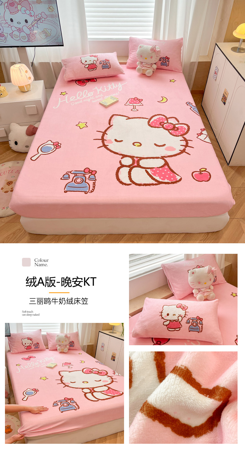 商品名称:暮思家居 2025新款正版授权三丽鸥大版牛奶绒数码印花单品床笠单件床笠(带标价格) 绒A版-格子KT