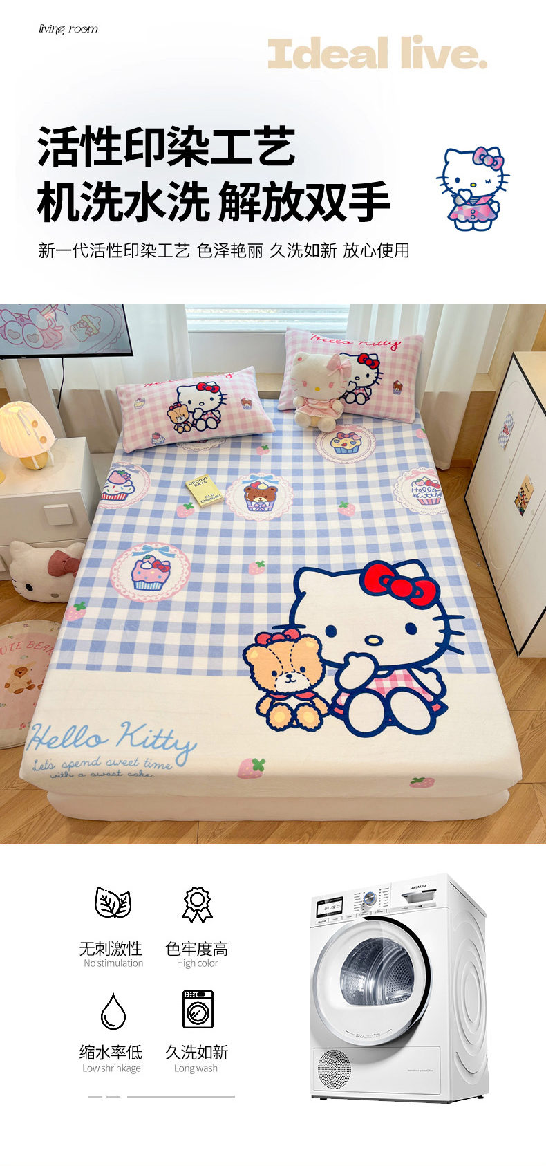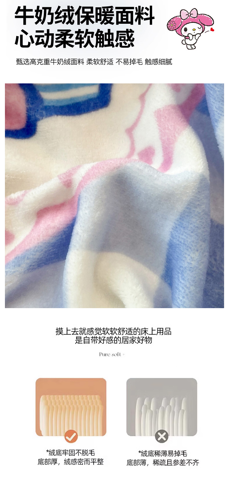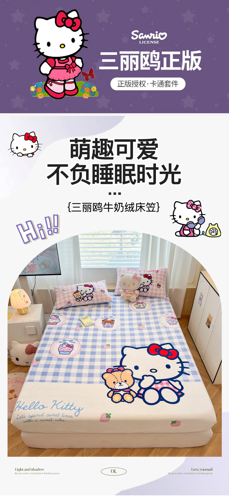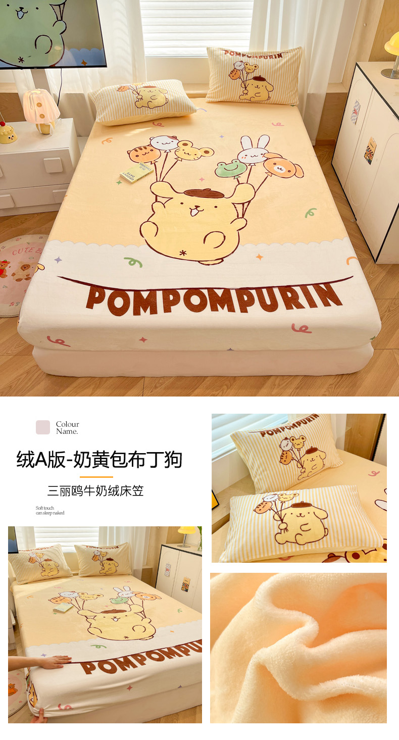 商品名称:暮思家居 2025新款正版授权三丽鸥大版牛奶绒数码印花单品床笠单件床笠(带标价格) 绒A版-格子KT