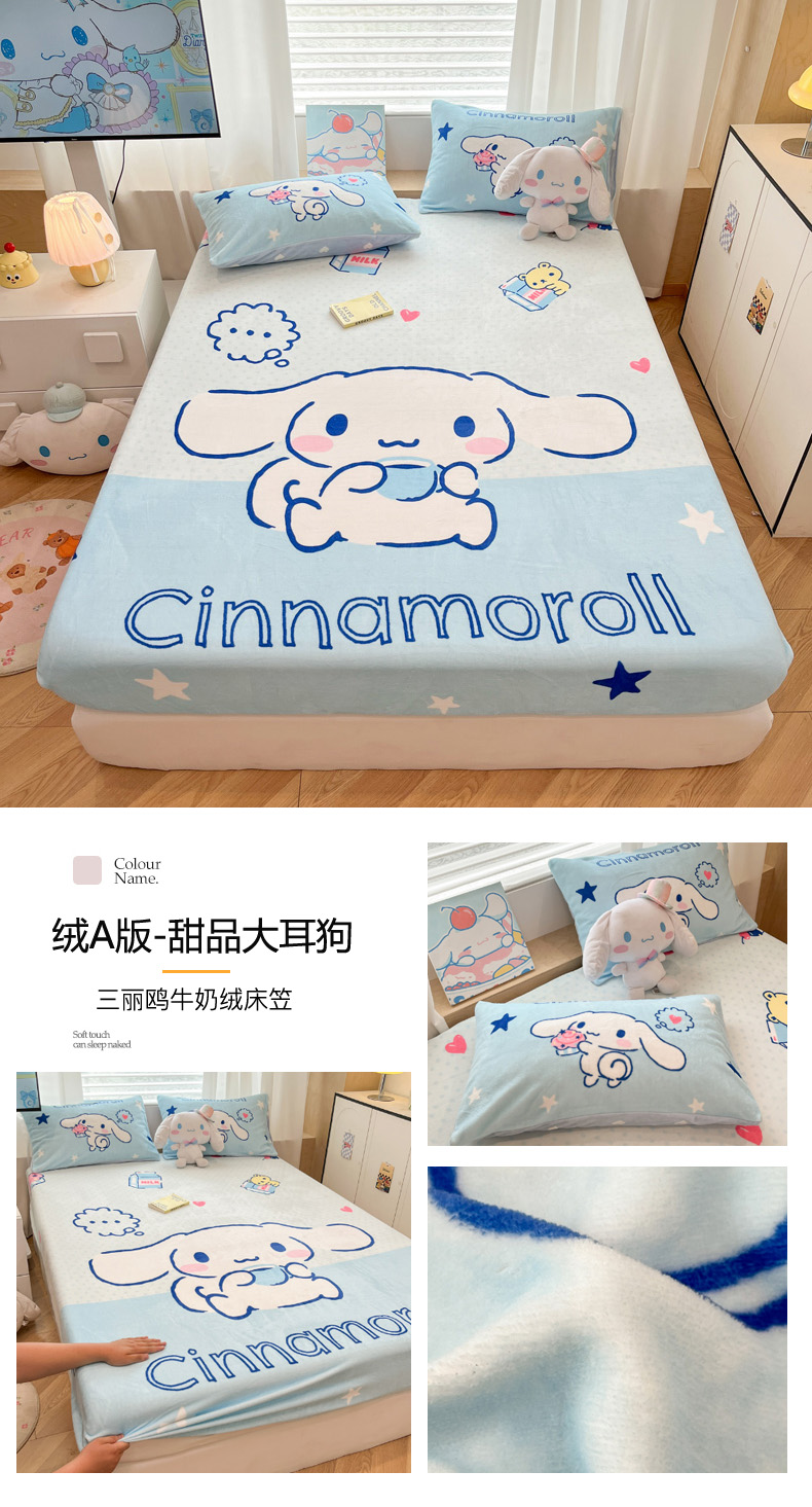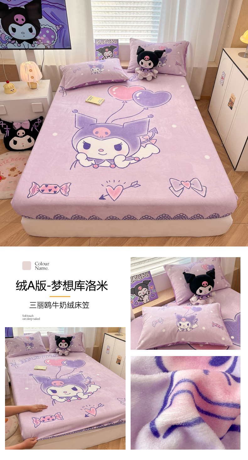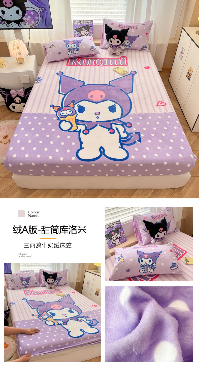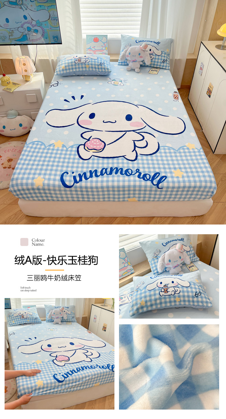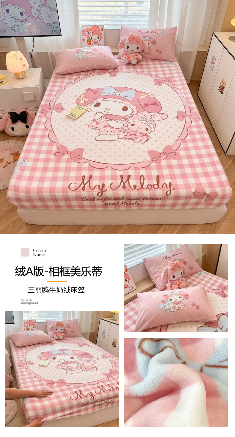 暮思家居 2025新款正版授权三丽鸥大版牛奶绒数码印花单品床笠单件床笠(带标价格) 绒A版-格子KT