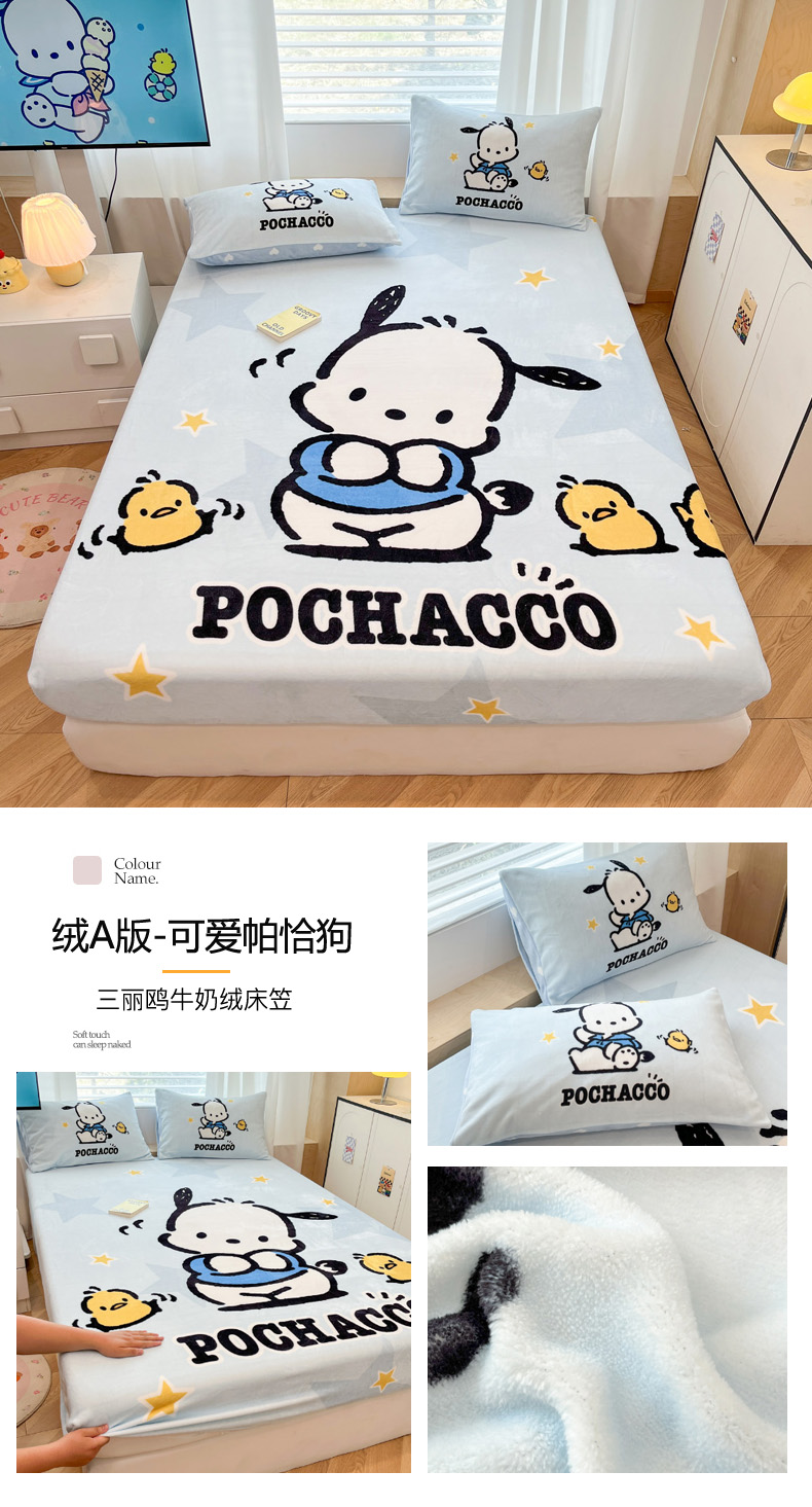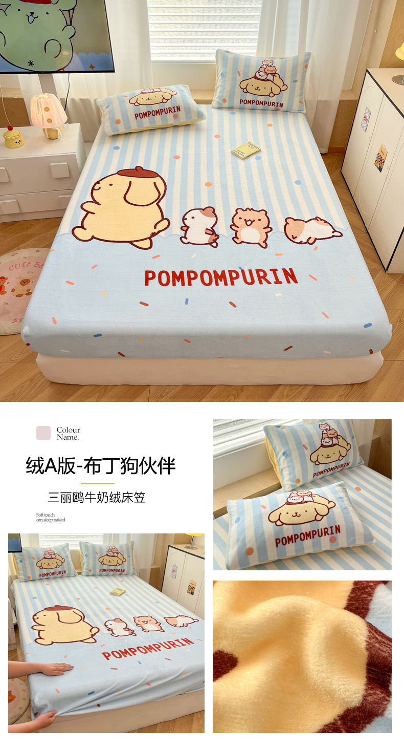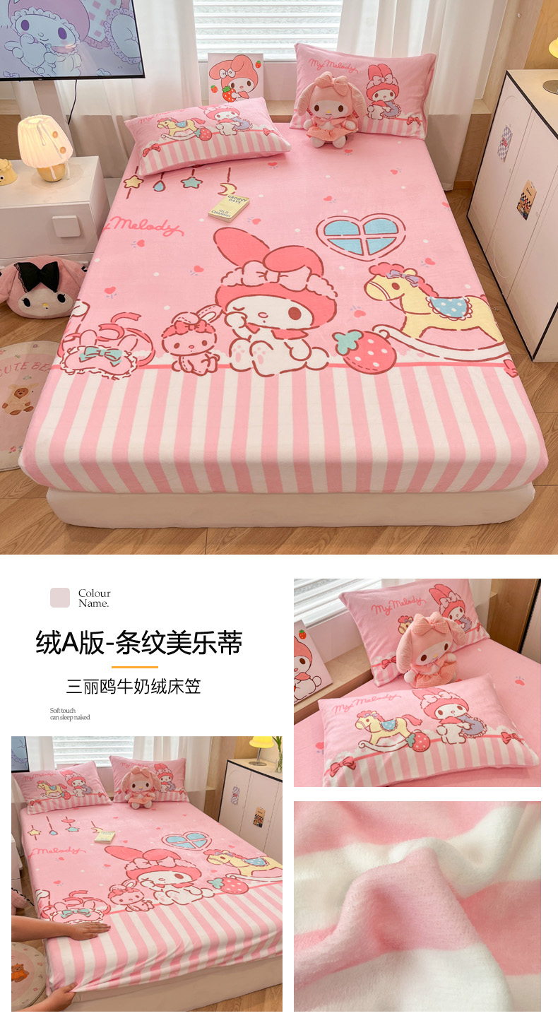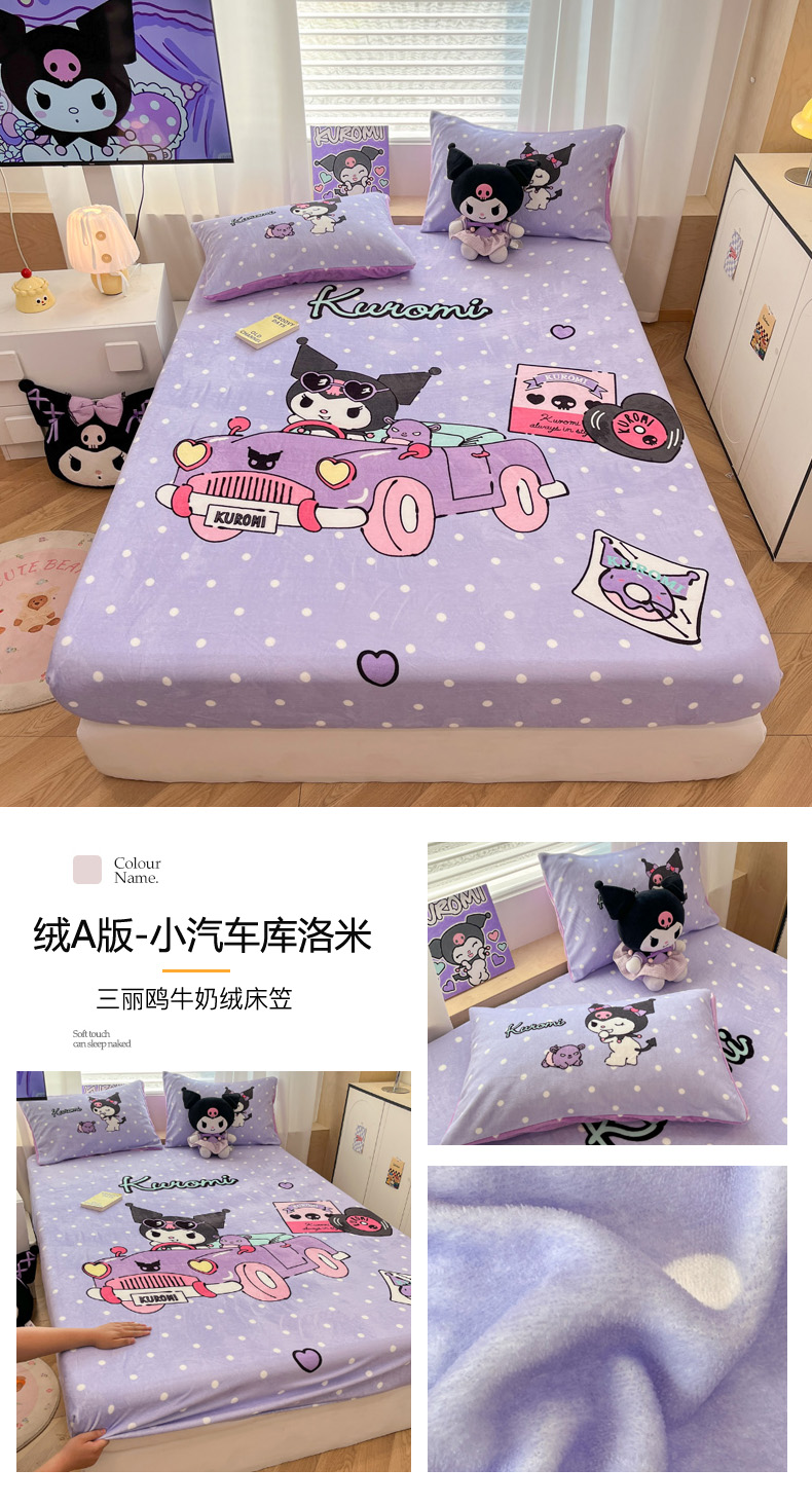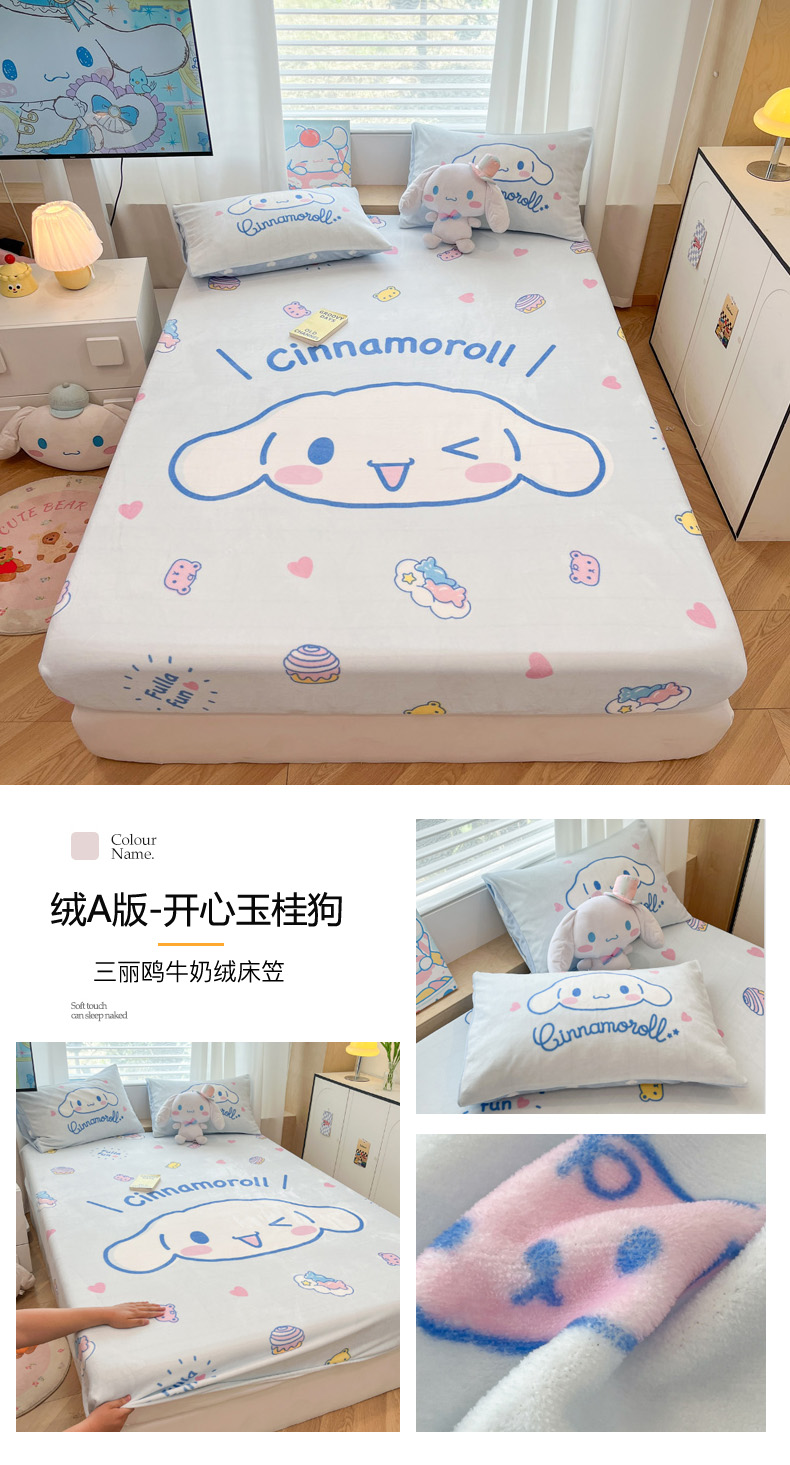 暮思家居 2025新款正版授权三丽鸥大版牛奶绒数码印花单品床笠单件床笠(带标价格) 绒A版-格子KT