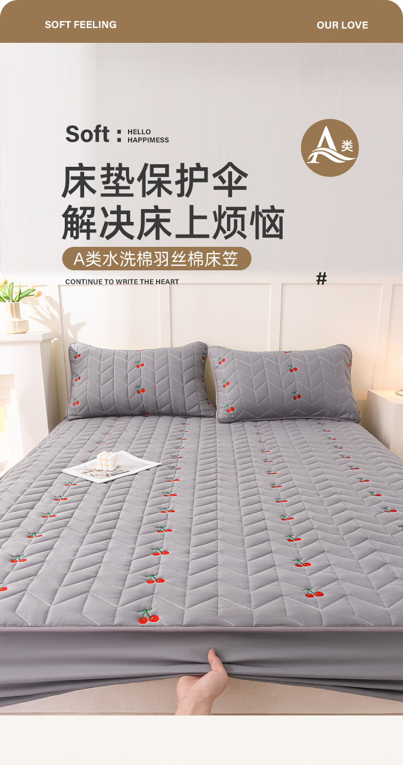 • 91家纺网 家纺一手货源 找家纺 推推家纺 2025新款A类水洗棉床笠单品床笠床笠单件 樱桃-深灰