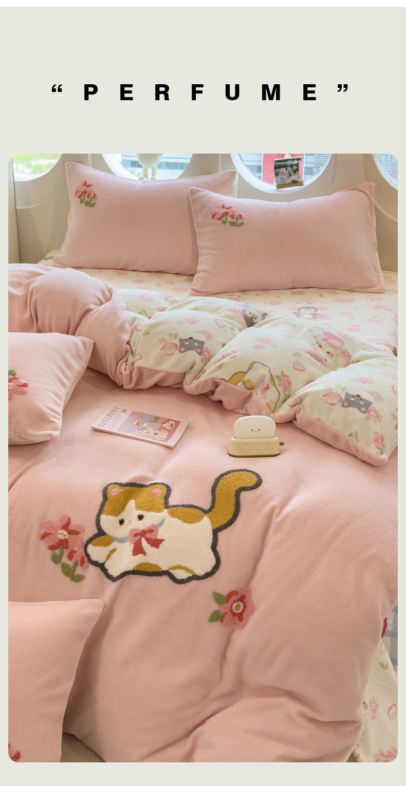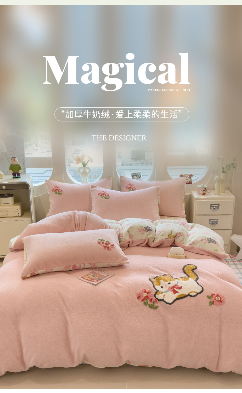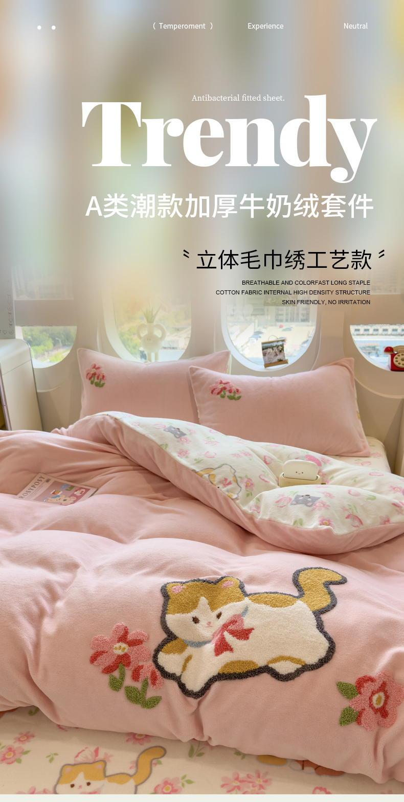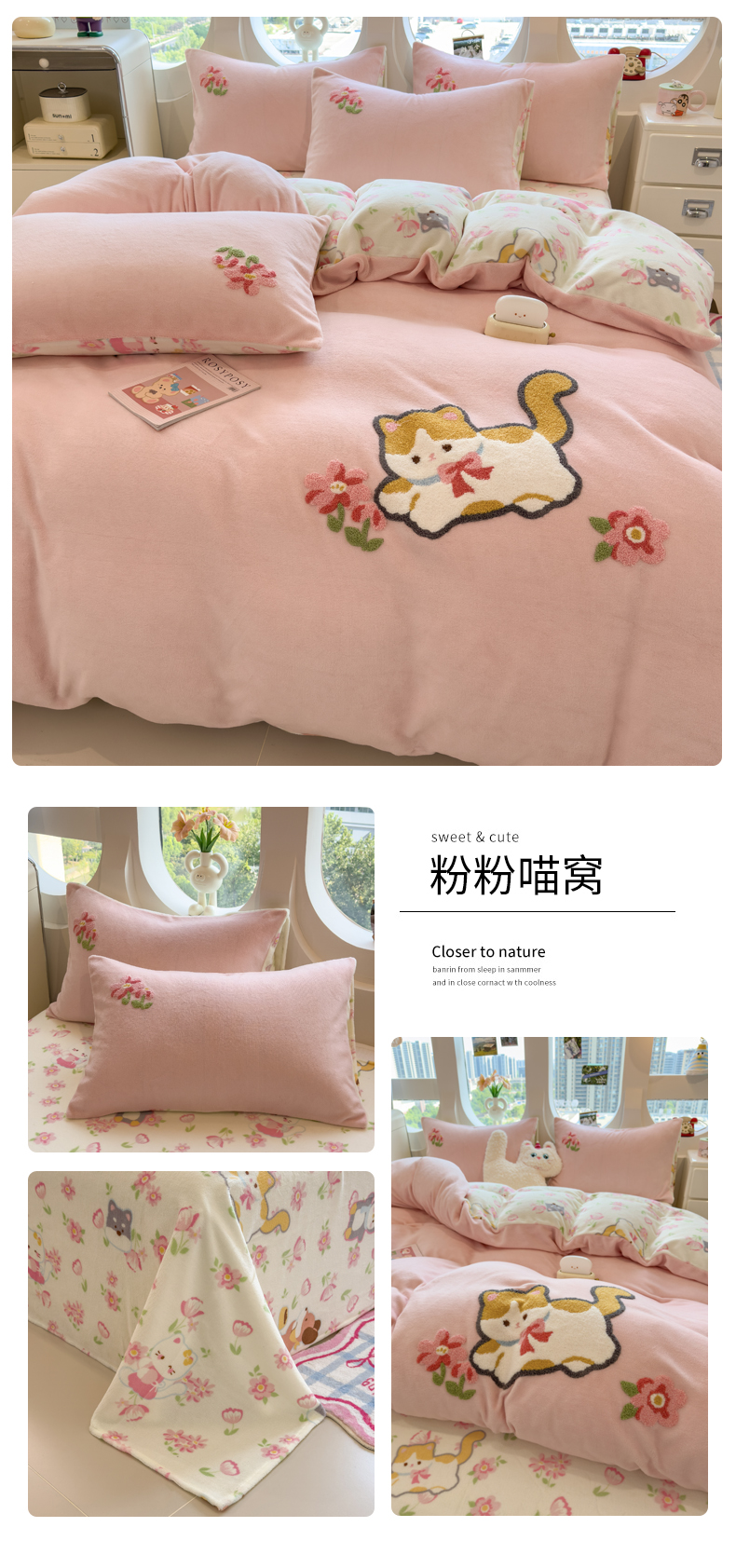 当前位置: 91家纺网 > 商品网购 > 床品套件 > 四件套 > 牛奶绒四件套 > 丝羽坊 2025新款A类潮款加厚牛奶绒四件套 粉粉喵窝