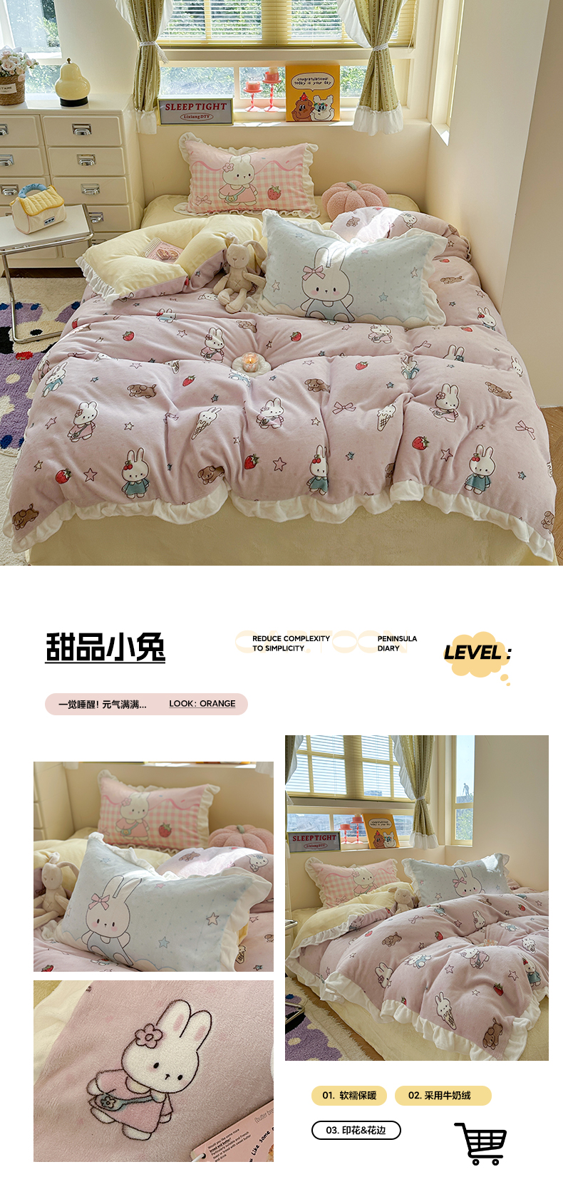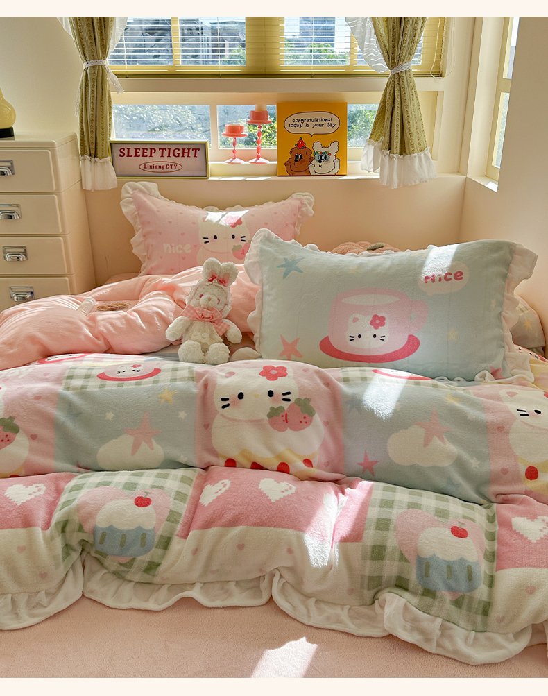 当前位置: 91家纺网 > 商品网购 > 床品套件 > 四件套 > 牛奶绒四件套 > 美乐迪家纺 2025新款加厚牛奶绒花边四件套 猫咪日记