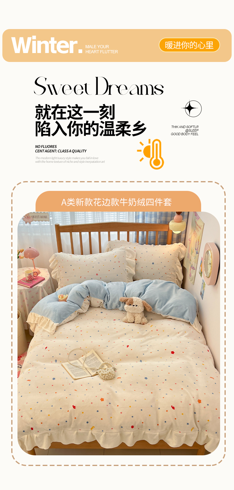 商品名称:(总)川悦生活 2025新款A类韩版花边牛奶绒四件套