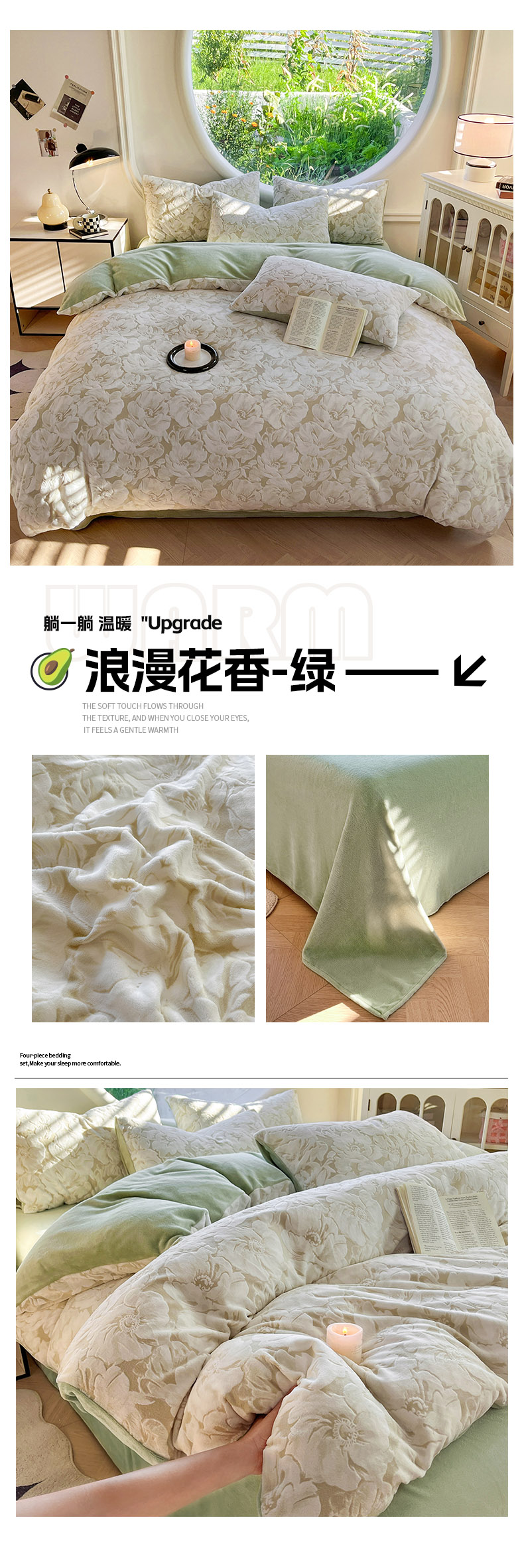 (总)大境 2025秋冬新款A类230克牛奶绒雕花烂花绒宝宝绒床笠款床单款四件套,蝶恋花语,花恋,浪漫花香 粉,浪漫花香 绿,叶之恋,郁金香粉,月光森林