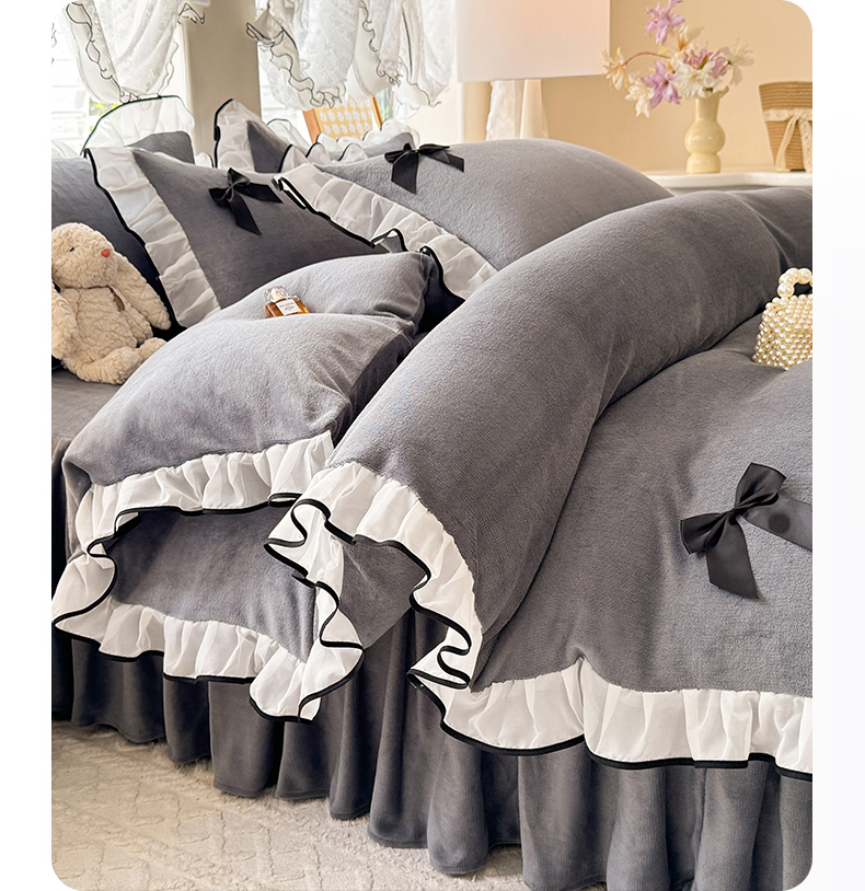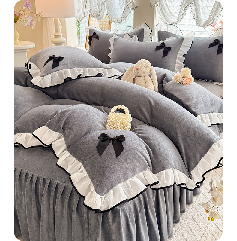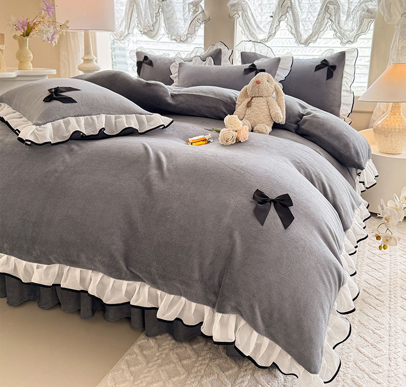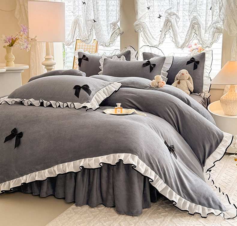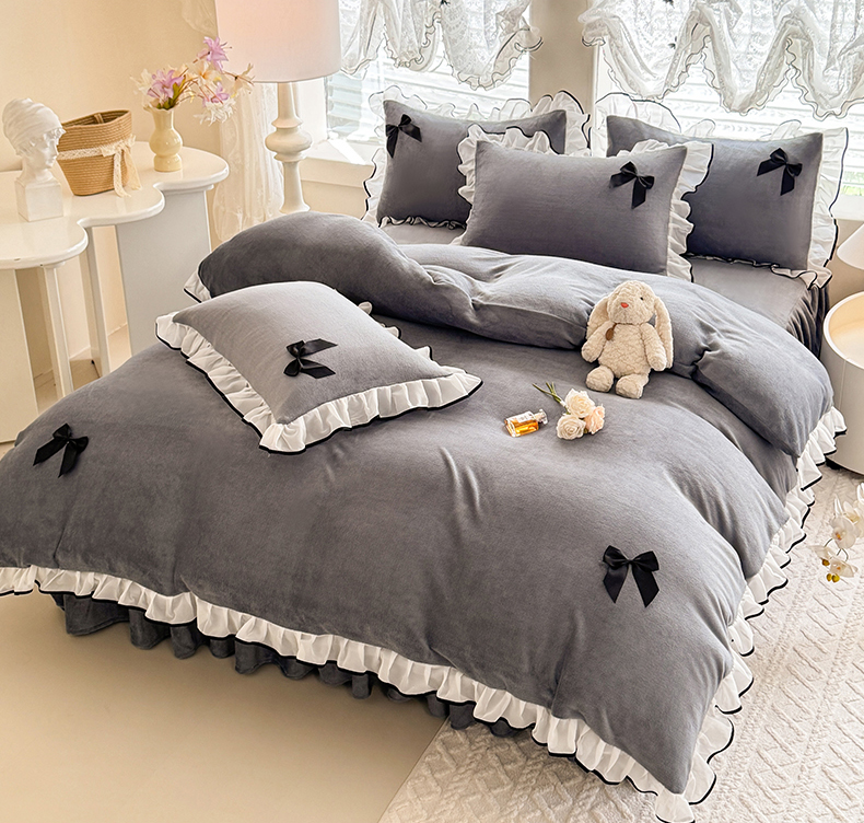 莉莉安家纺 2025新款牛奶绒床裙四件套-潘多拉系列 潘多拉-灰