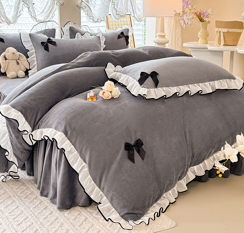商品名称:莉莉安家纺 2025新款牛奶绒床裙四件套-潘多拉系列 潘多拉-灰