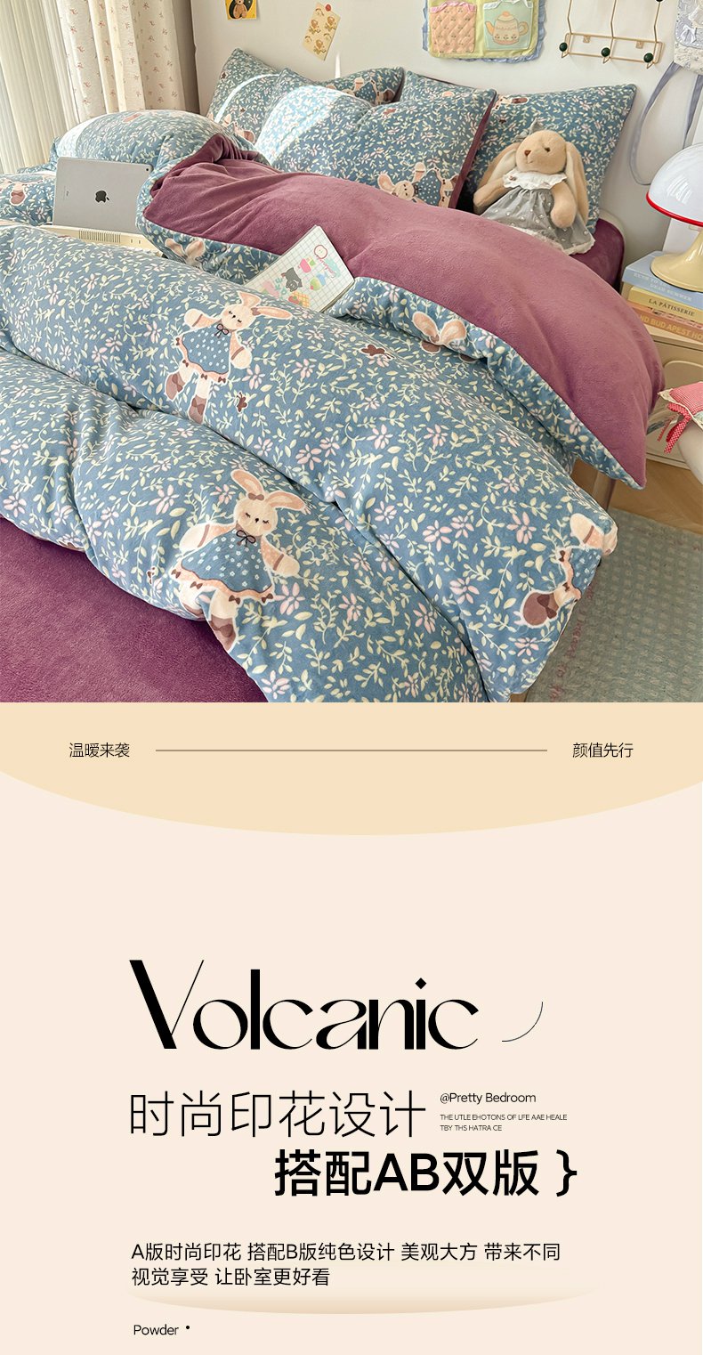 韩巢家纺 2025新款高克重印花牛奶绒床品四件套 爱丽丝,爱丽丝
