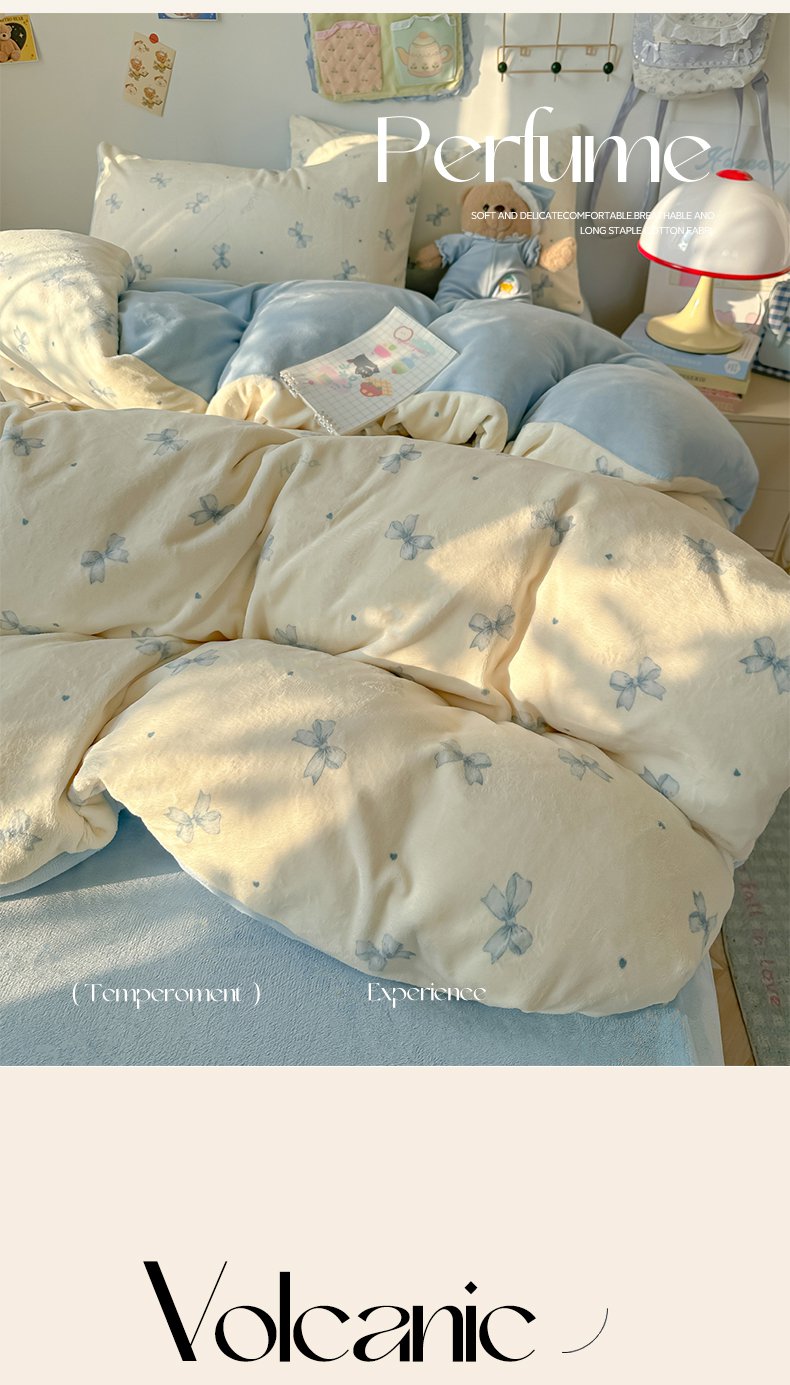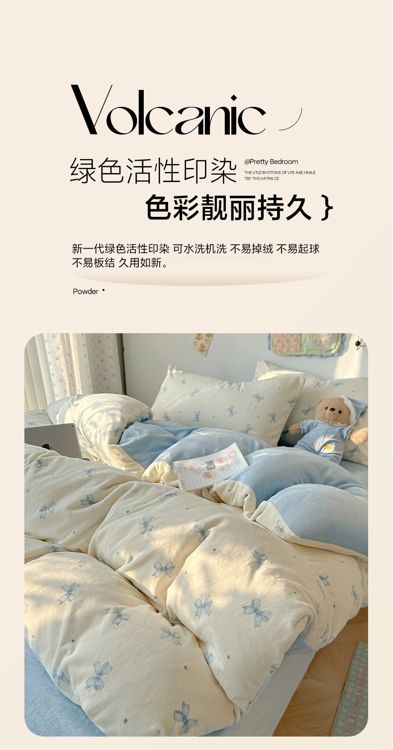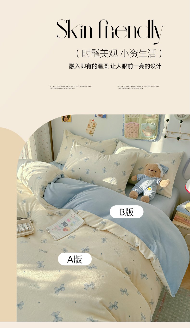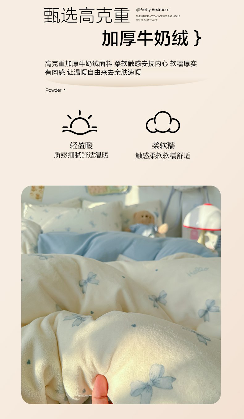 韩巢家纺 2025新款高克重印花牛奶绒床品四件套 爱心小樱桃,爱心小樱桃