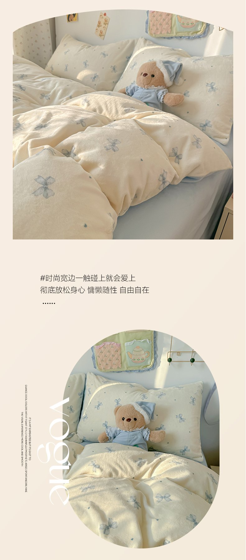 韩巢家纺 2025新款高克重印花牛奶绒床品四件套 田园小花,田园小花