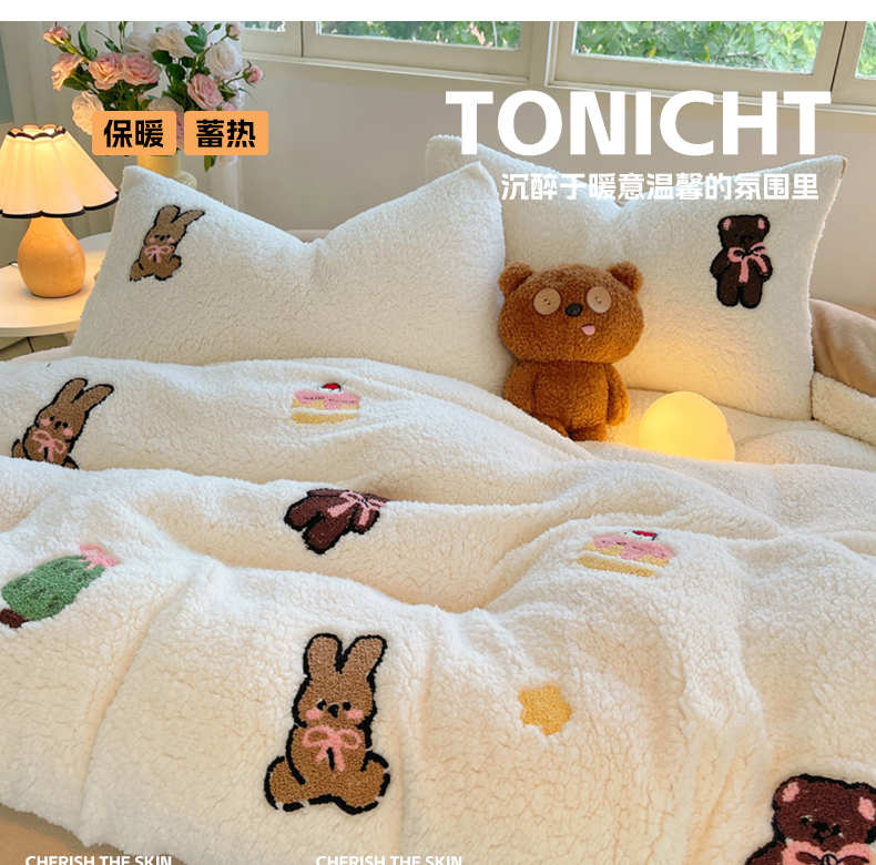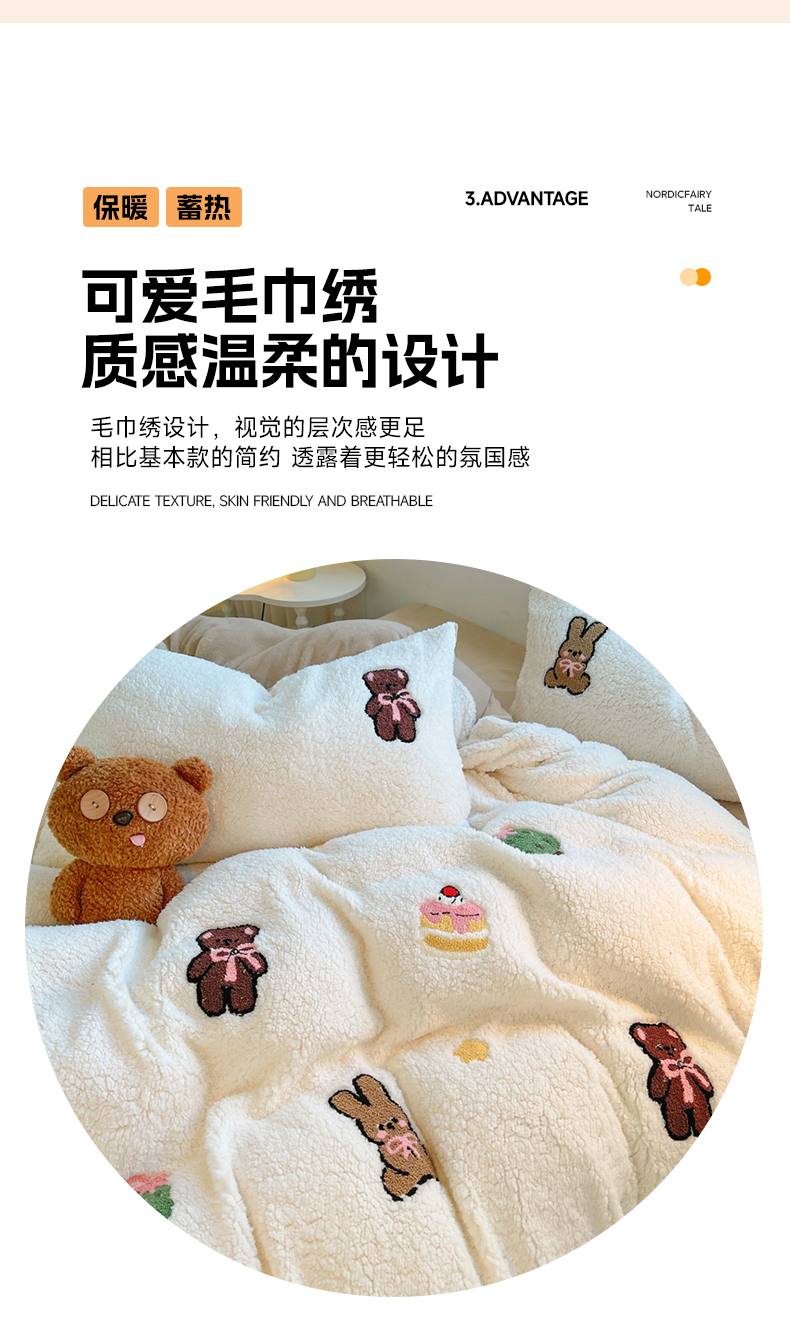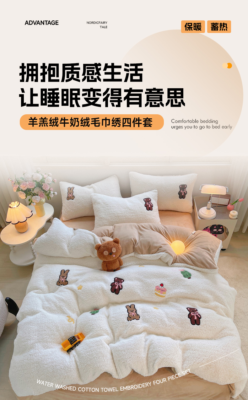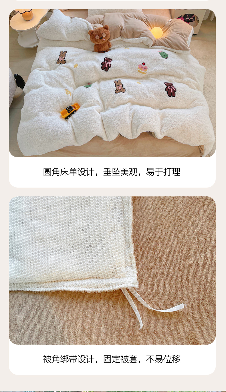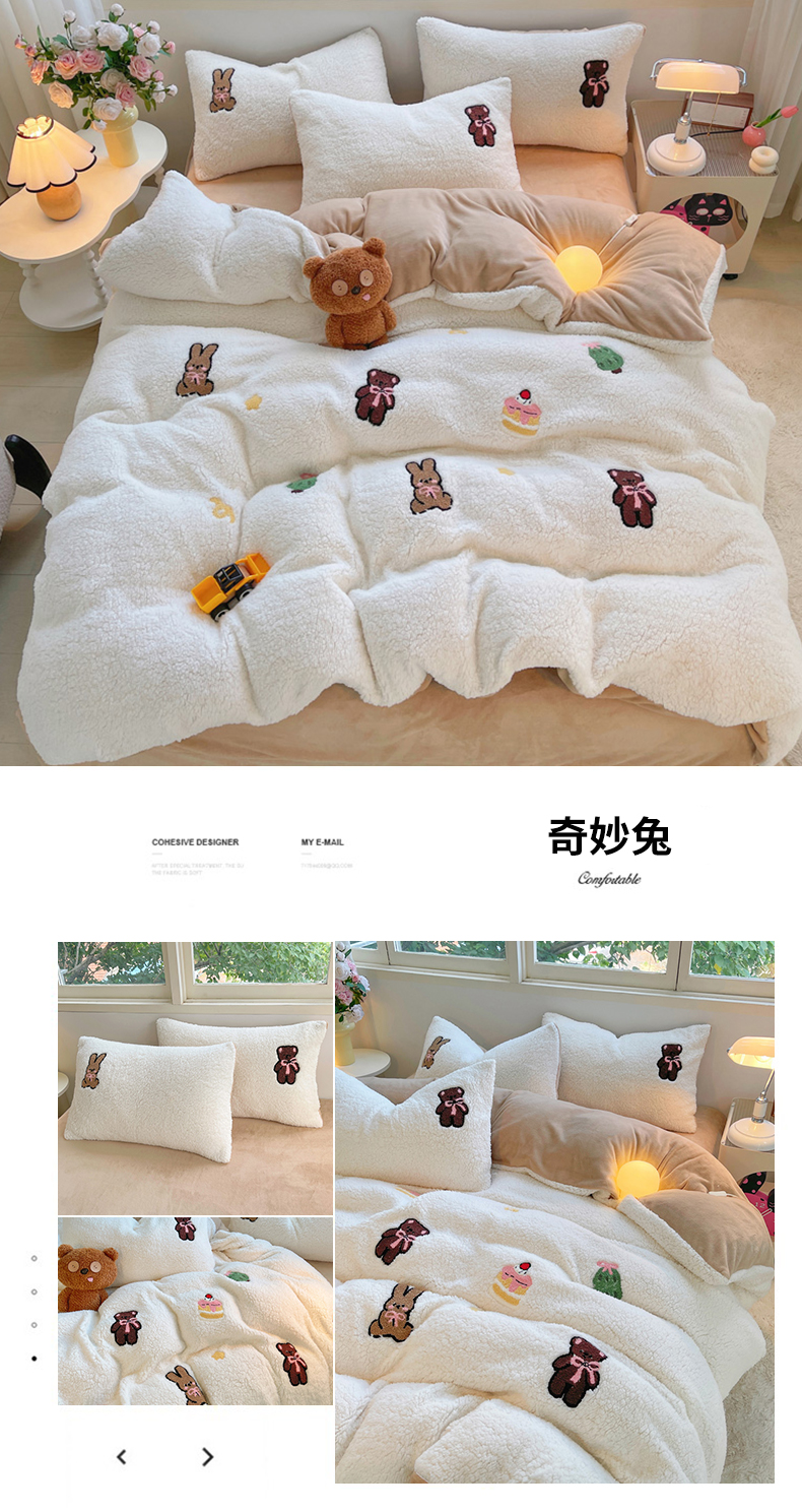 商品名称:牵依 2025新款羊羔绒牛奶绒毛巾绣四件套 奇妙兔