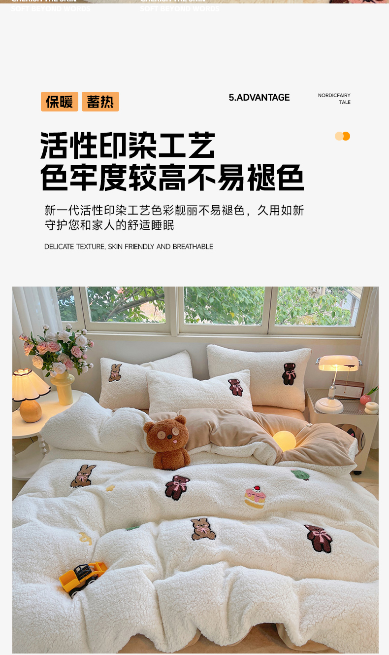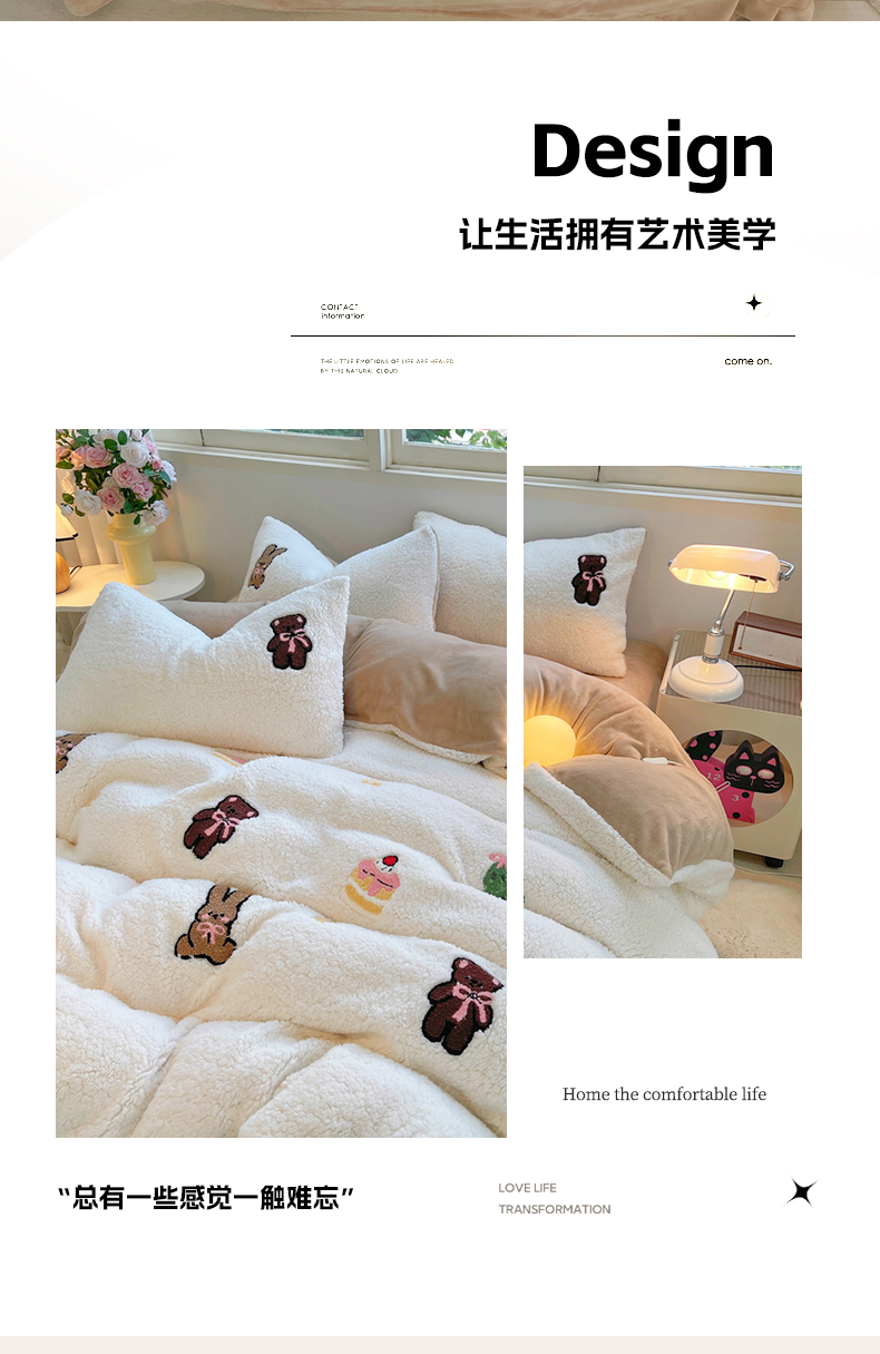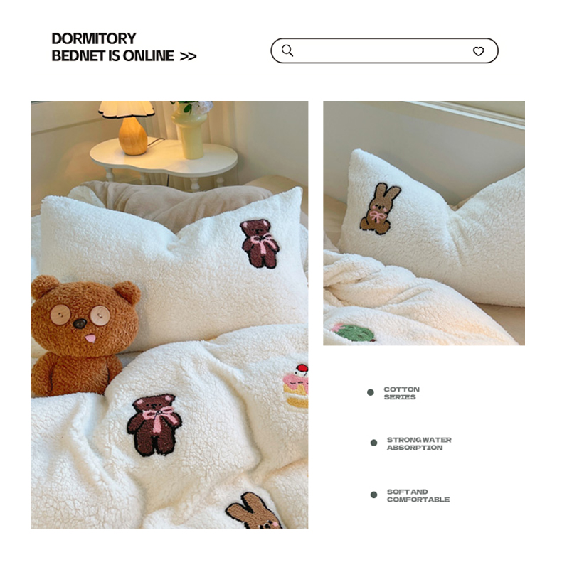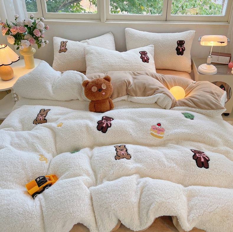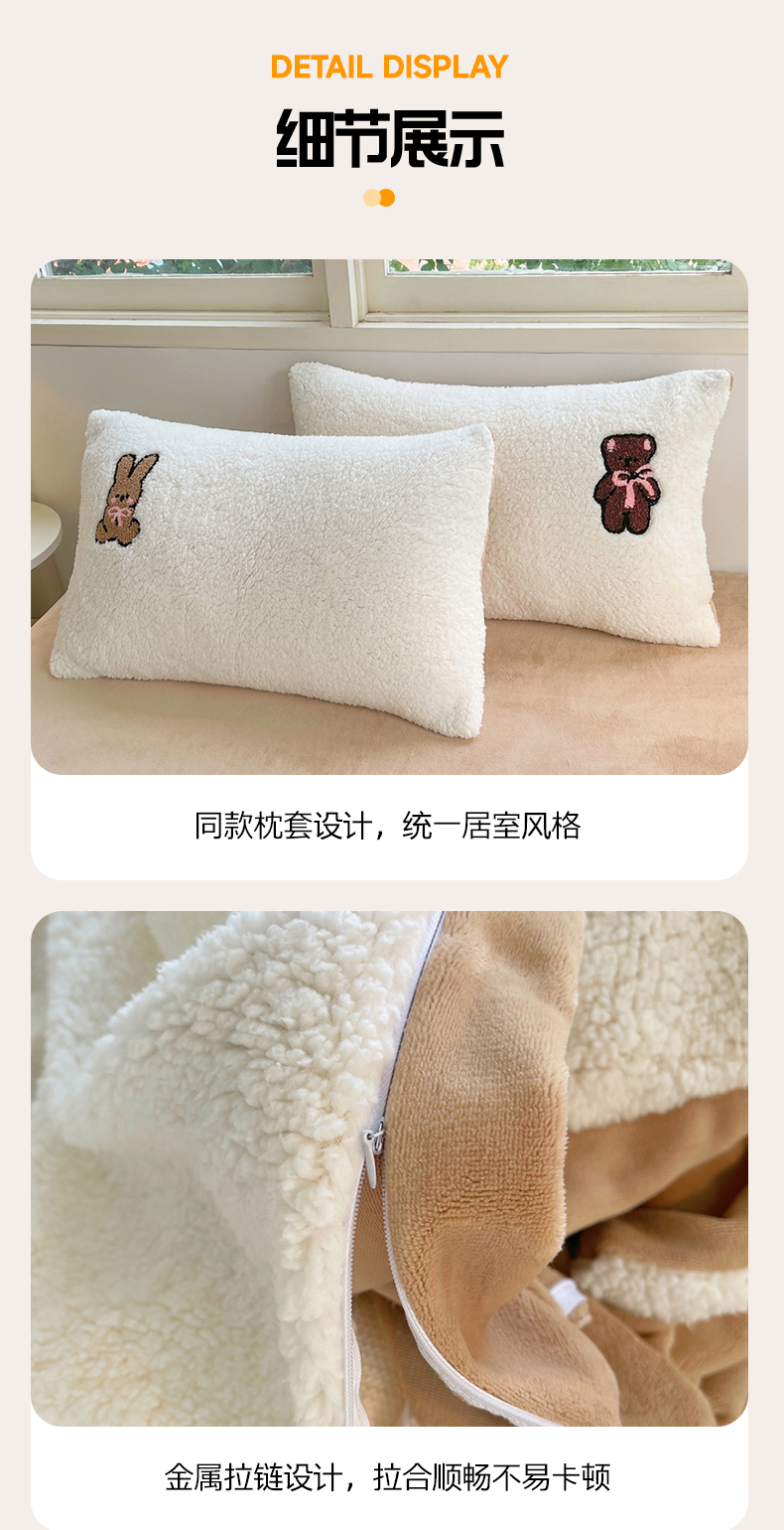 商品名称:牵依 2025新款羊羔绒牛奶绒毛巾绣四件套 奇妙兔