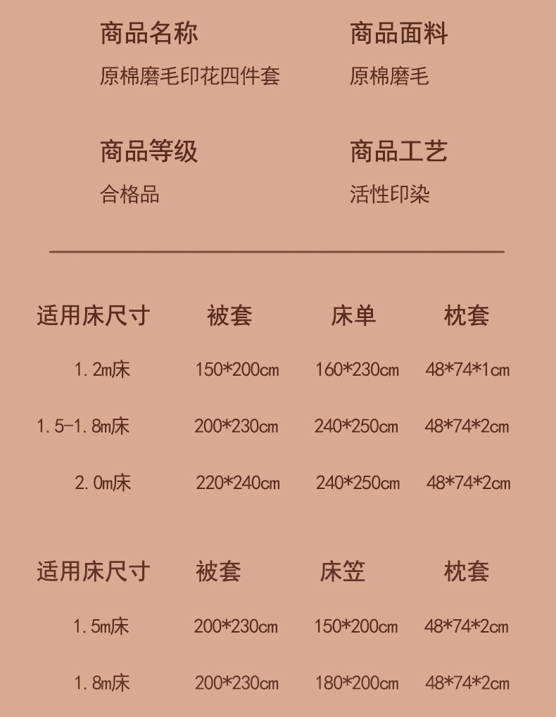 【床笠款】1.8四件套-被套200x230 | ¥95.00 |
