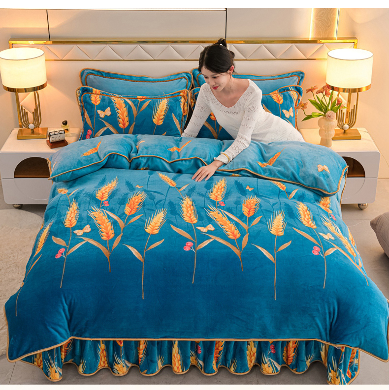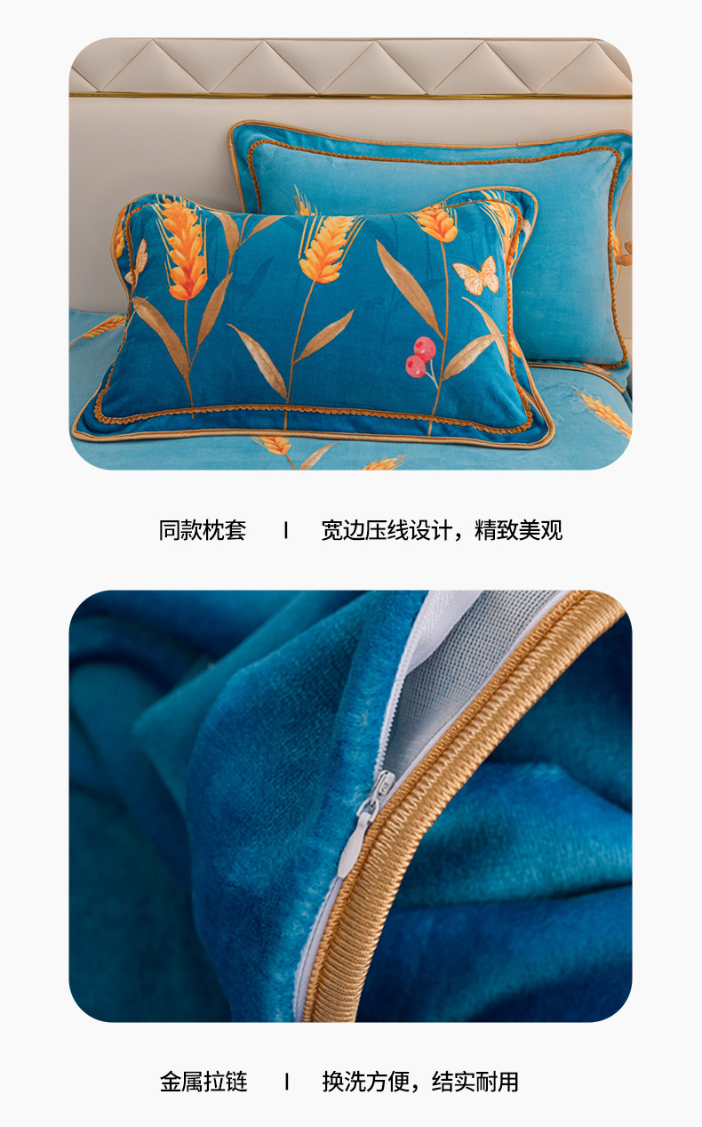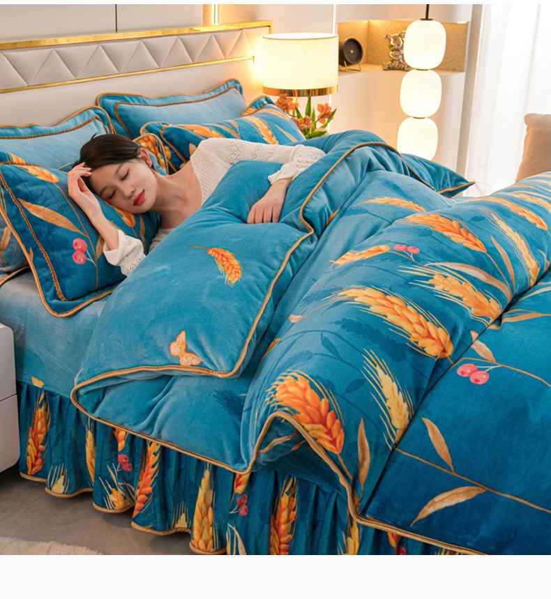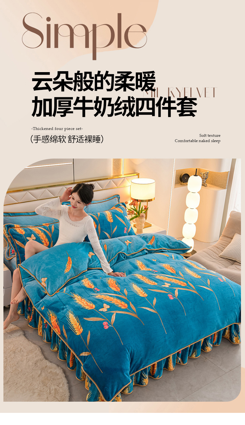 眠多宝 2025新款8-9斤高克重牛奶绒四件套法莱绒水晶绒金貂绒抖音快手直播热款 金麦穗
