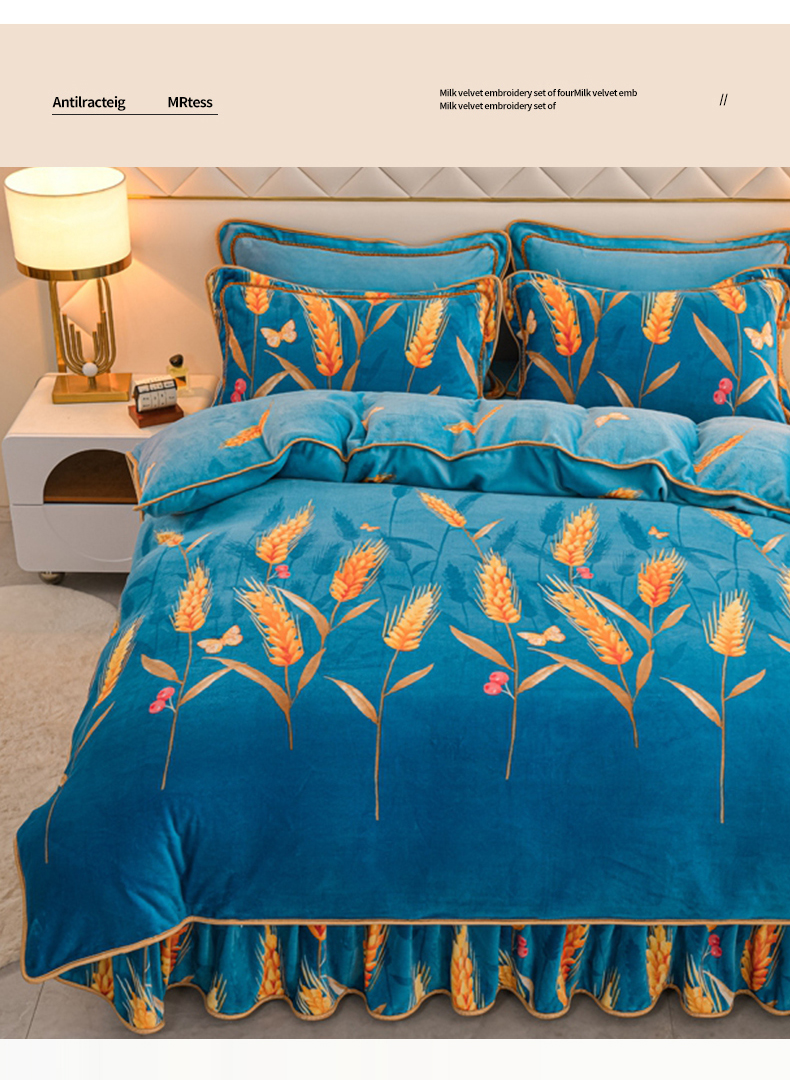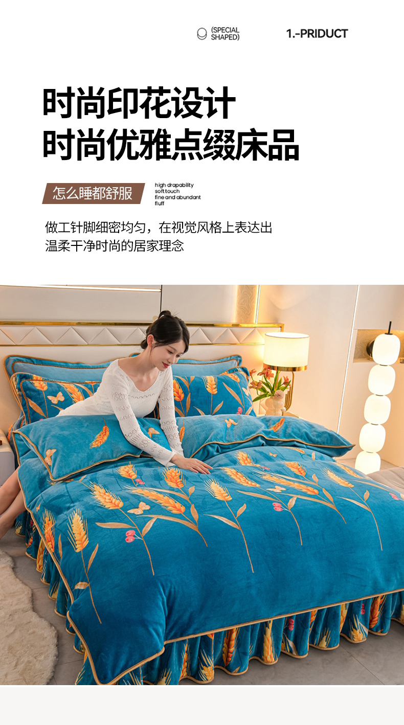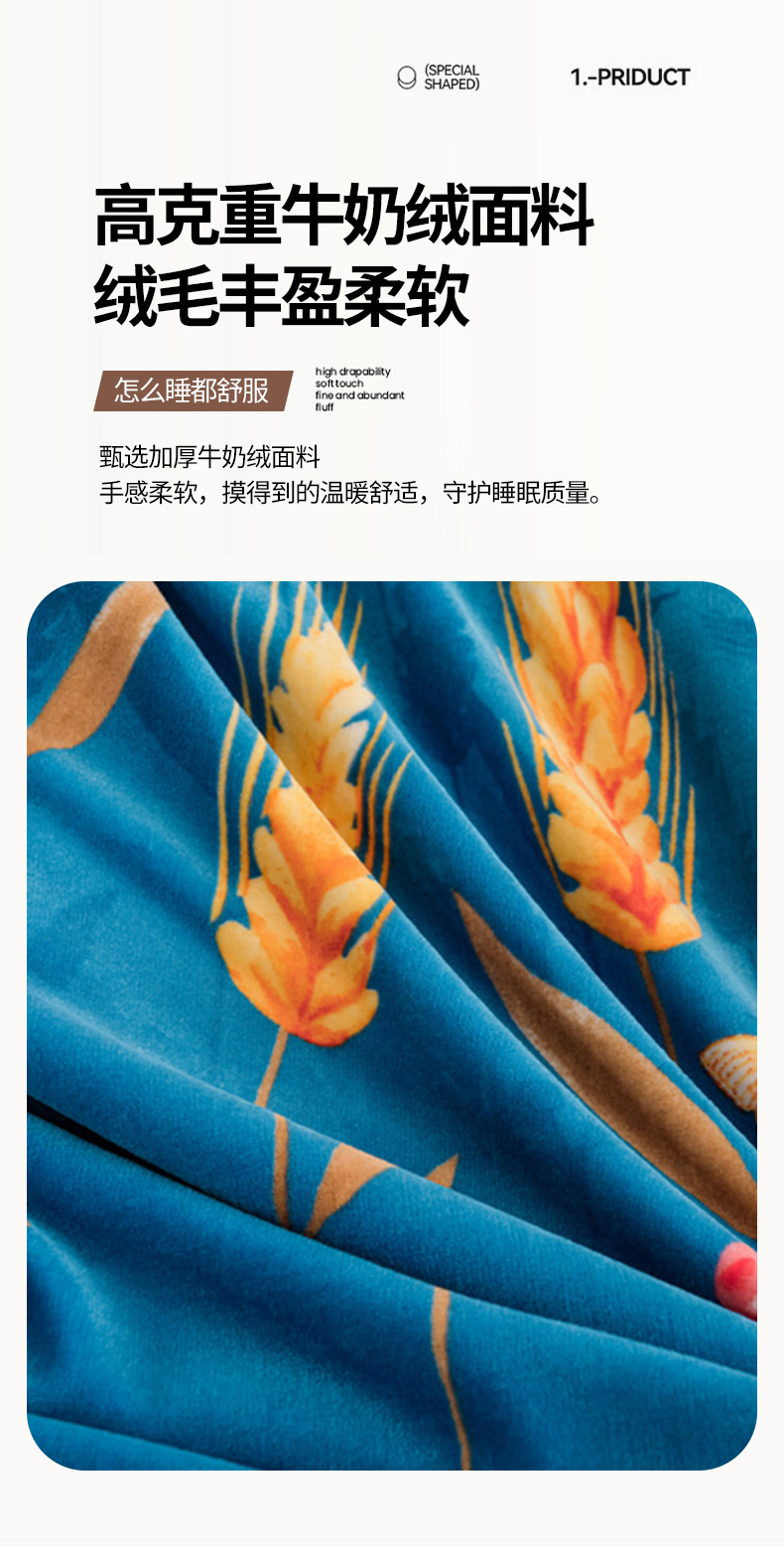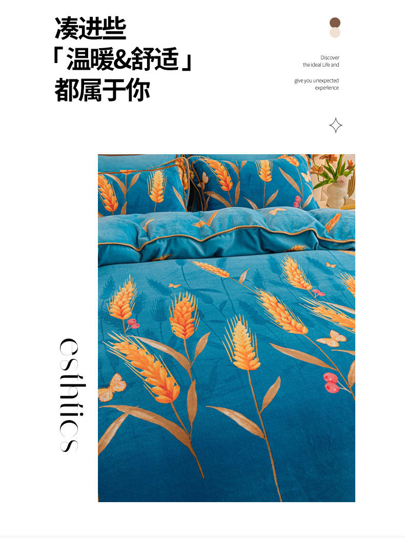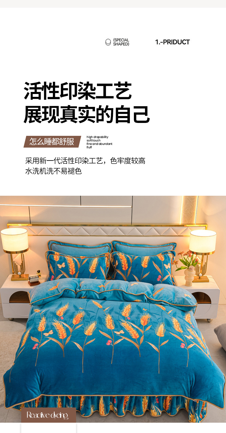 商品名称:眠多宝 2025新款8-9斤高克重牛奶绒四件套法莱绒水晶绒金貂绒抖音快手直播热款 金麦穗