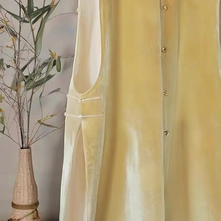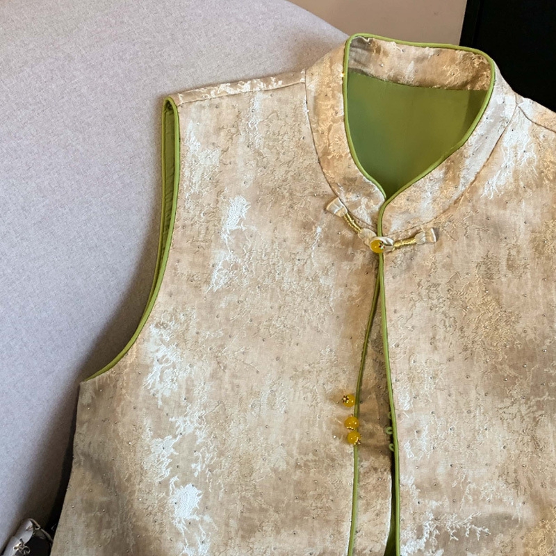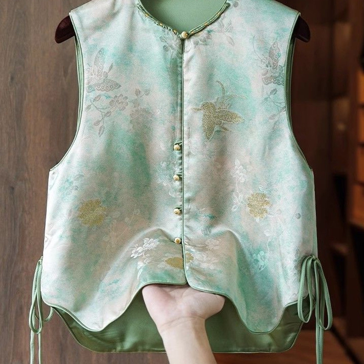 洛兰沙家居馆【只代发】【只代发】 2025新款复古织锦缎细纱棉麻拼接马甲背心刺绣中式盘扣上衣 30