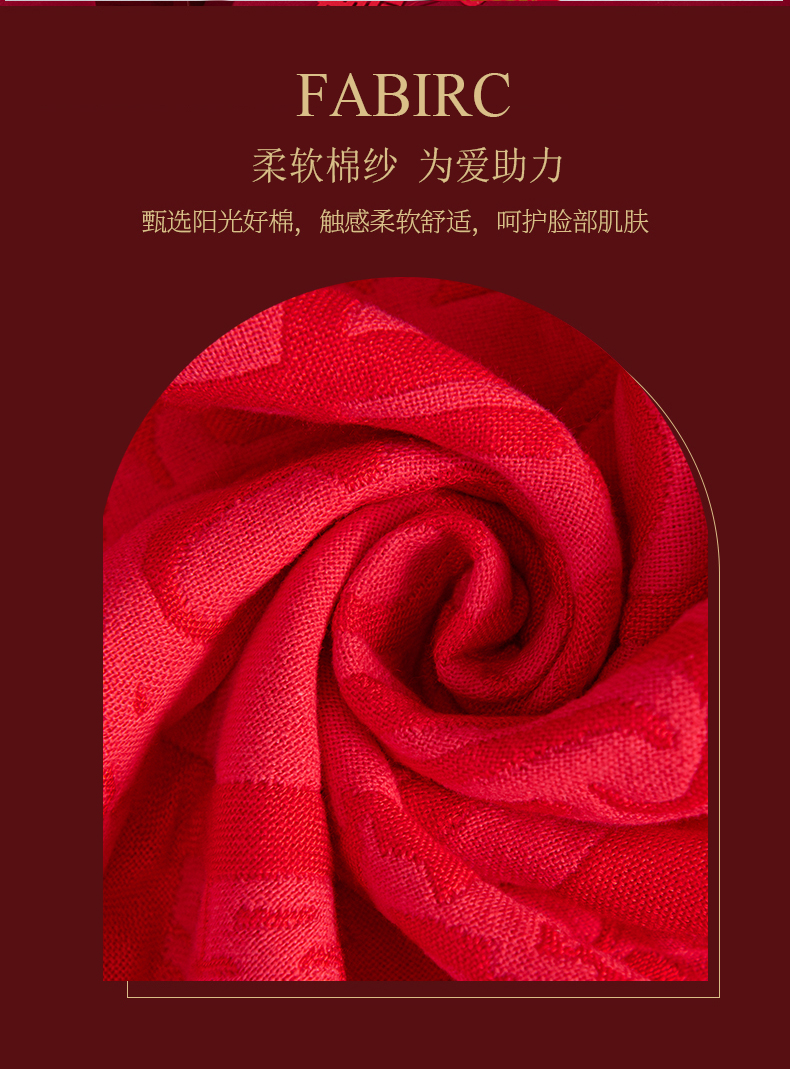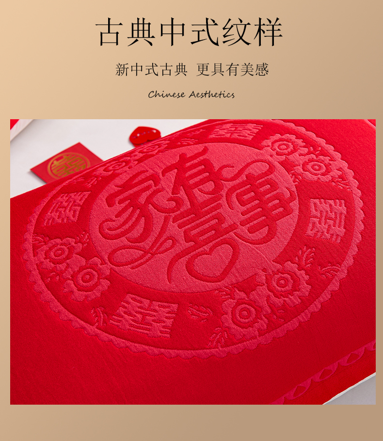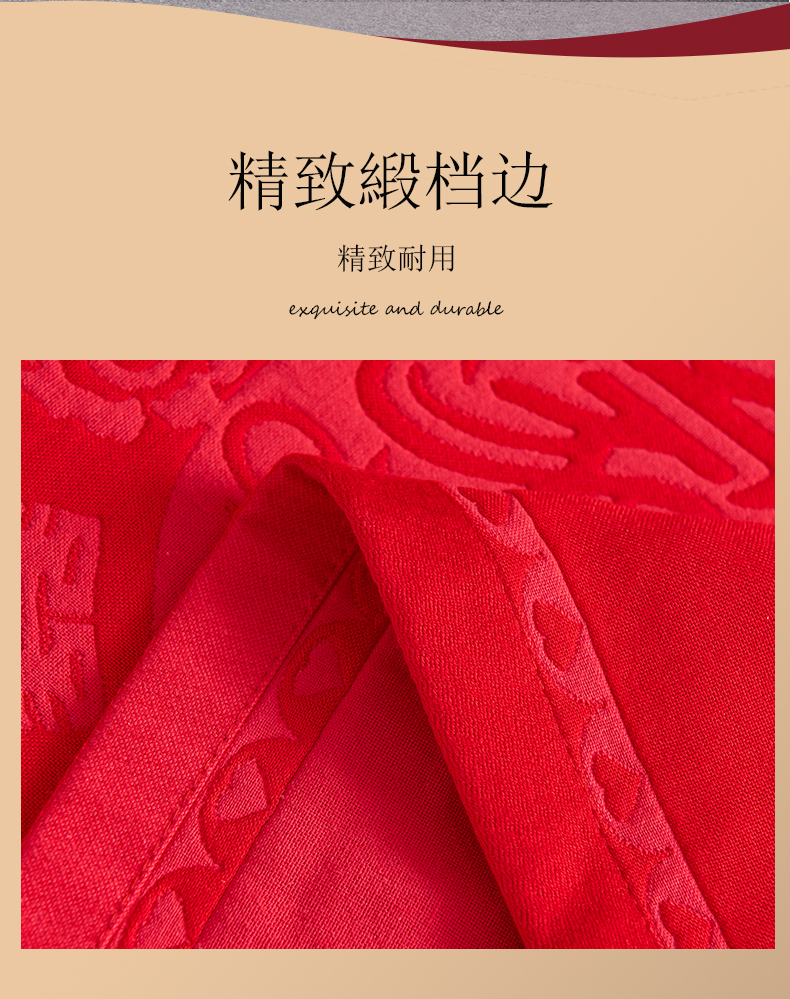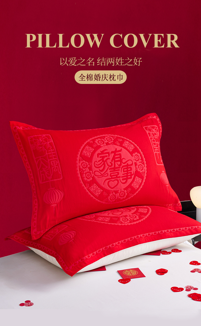 棠薇家纺 2025新款全棉大红婚庆枕巾 家有喜事