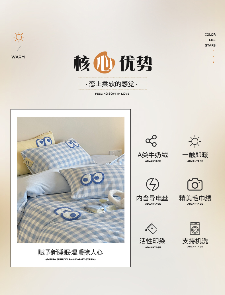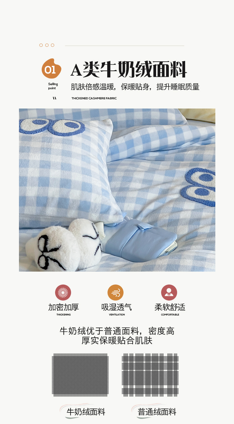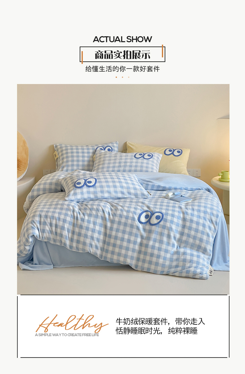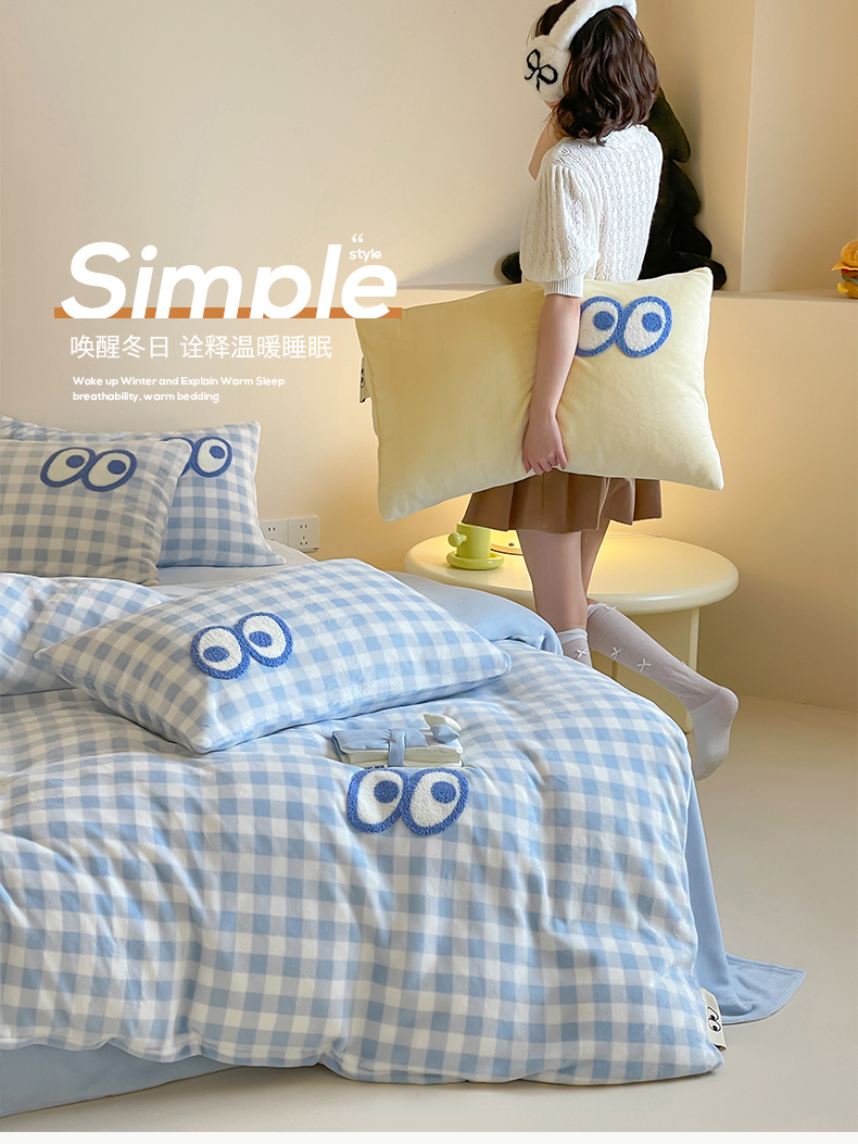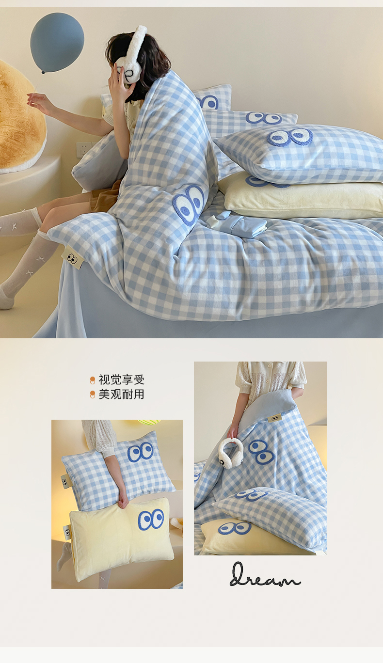当前位置: 91家纺网 > 商品网购 > 床品套件 > 四件套 > 牛奶绒四件套 > 桃子家居 2025新款A类ins毛巾绣显眼包撞色格子玛卡龙加厚牛奶绒织标四件套时尚模特 绒-显眼包蓝格蓝蓝
